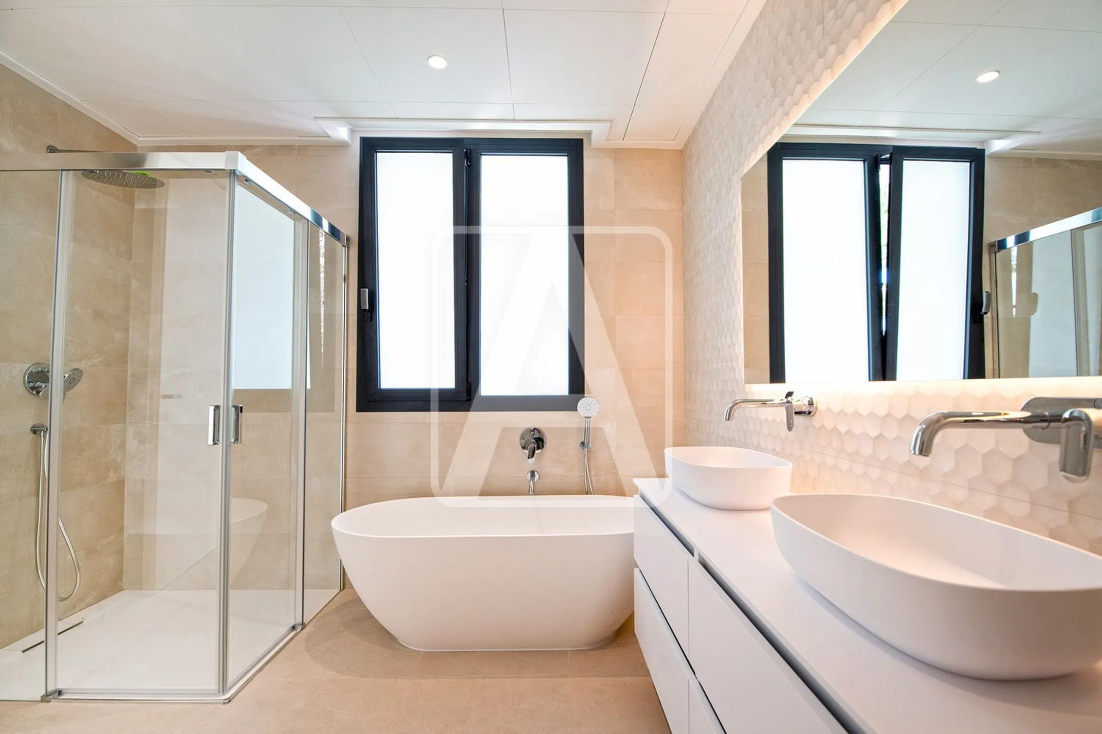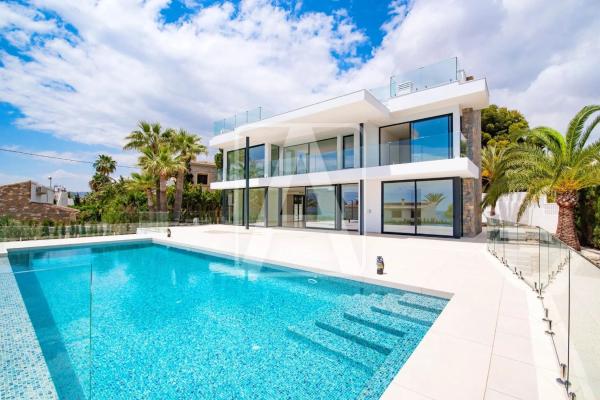 Villa de lujo de nueva construcción en venta en Calpe, en urbanización Calalga. Esta villa de diseño moderno está situada a tan solo 50 metros del mar, a 200 metros de la playa, muy cerca de todo tipo de servicios. Disfruta de impresionantes vistas al mar, de excelente orientación, (Sur, sol todo el día), y de mucha tranquilidad, (calle prácticamente sin tráfico). Está ubicada en una parcela de 1.200 m2 y tiene una superficie total construida de 650 m2 distribuida en 2 plantas + sótano, (comunicadas con escalera interior + ascensor), de la siguiente manera: en la planta principal tenemos el amplio hall de entrada de 12 m2, (doble altura), el dormitorio de 15 m2 con vestidor y baño en suite, 1 aseo de invitados, lavadero de 8 m2 + tendedero de 8 m2, despensa de 6 m2, amplia cocina de 20 m2, (con isla), comunicada con el fabuloso salón comedor, (doble altura + chimenea), de 65 m2 y estupendo porche de 30 m2 que conecta con una terraza exterior donde tenemos una piscina climatizada con efecto sin fin. Además, junto a la cocina, tenemos una zona cubierta de barbacoa cocina de verano totalmente equipada de 20 m2. En la planta alta tenemos 4 dormitorios, (18 m2 + 15 m2 + 13 m2 + 12 m2), 4 baños en suite, un amplio vestidor de 9 m2 y una amplia terraza parcialmente cubierta de 30 m2. En la planta sótano tenemos un amplio garaje doble de 43 m2, un lavadero, trastero, sala de máquinas, vestidor, gimnasio de 13 m2, zona spa de 15 m2 que consta de 1 baño, sauna y jacuzzi y una sala de TV billar de 30 m2. Se garantiza un exclusivo diseño moderno, unos acabados y materiales de máxima calidad y una impecable ejecución de obra. Está equipada con suelo radiante con termostatos independientes en cada estancia, climatización centralizada, (sistema airzone), carpintería exterior Technal con cristales inteligentes, suelos porcelánicos + mármol, ascensor, domótica, alarma… Además, cuenta con amplias zonas de aparcamiento exterior para varios vehículos y con una pérgola para un vehículo. Para recibir más información sobre esta propiedad, póngase en contacto con AREA Costa Blanca. AREA Costa Blanca - su agente para propiedades en venta en Calpe - Costa Blanca - España. AREA Costa Blanca está orgullosa de ser una de las mejores agencias inmobiliarias en la Costa Blanca. En AREA Costa Blanca trabajamos para ofrecer el mejor servicio asesorando a nuestros clientes en la compraventa de propiedades inmobiliarias. Contamos con un equipo profesional de larga experiencia en el sector inmobiliario. Nuestro principio fundamental es la calidad del servicio prestado y la satisfacción del cliente. Nuestra experiencia y actitud, su garantía de éxito.