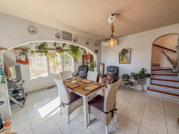 Soleada villa de tres dormitorios y tres baños situada en Calpe. Esta villa bellamente diseñada se encuentra en una ubicación envidiable, ofreciendo abundante sol durante todo el día. Con tres amplios dormitorios y tres modernos baños, esta propiedad es una excelente opción para aquellos que buscan comodidad y exclusividad en el corazón de la Costa Blanca. Esta impresionante villa de dos plantas ofrece un entorno incomparable con impresionantes vistas panorámicas del mar y el emblemático Peñón de Ifach. La planta baja cuenta con dos amplias y luminosas salas de estar, una cocina moderna totalmente equipada, dos dormitorios y dos elegantes baños. Arriba, un gran dormitorio principal con baño en suite garantiza total privacidad y confort. Una escalera exterior conduce a una gran terraza con una cocina de verano totalmente equipada y una encantadora sala de estar, perfecta para disfrutar del clima mediterráneo. El espacio exterior es igualmente impresionante, con un jardín ajardinado de bajo mantenimiento, una piscina privada, un garaje seguro y un trastero. Ya sea como residencia permanente o como casa de vacaciones, esta villa ofrece una experiencia de vida excepcional. Calpe es una encantadora ciudad costera conocida por sus impresionantes playas, aguas cristalinas y un ambiente animado. La zona es perfecta para el relax y la aventura, ofreciendo una gran variedad de actividades como vela, senderismo y buceo. El casco histórico, con su encanto tradicional español, vibrantes mercados y exquisita cocina local, es una visita obligada. Además, la excelente infraestructura de la ciudad y las cómodas comodidades la convierten en un lugar ideal tanto para turistas como para residentes permanentes. Por qué nos encanta esta propiedad: Esta villa se destaca como una excelente oportunidad de inversión gracias a su ubicación privilegiada, características lujosas y vistas excepcionales. La combinación de confort moderno, privacidad y encanto mediterráneo lo convierte en una casa de ensueño para cualquier comprador.