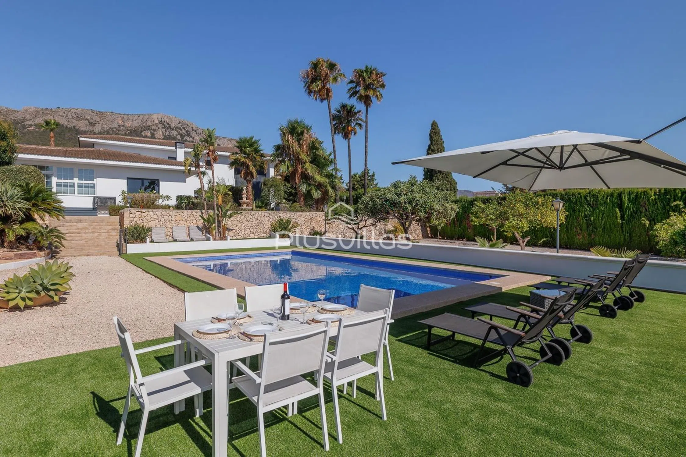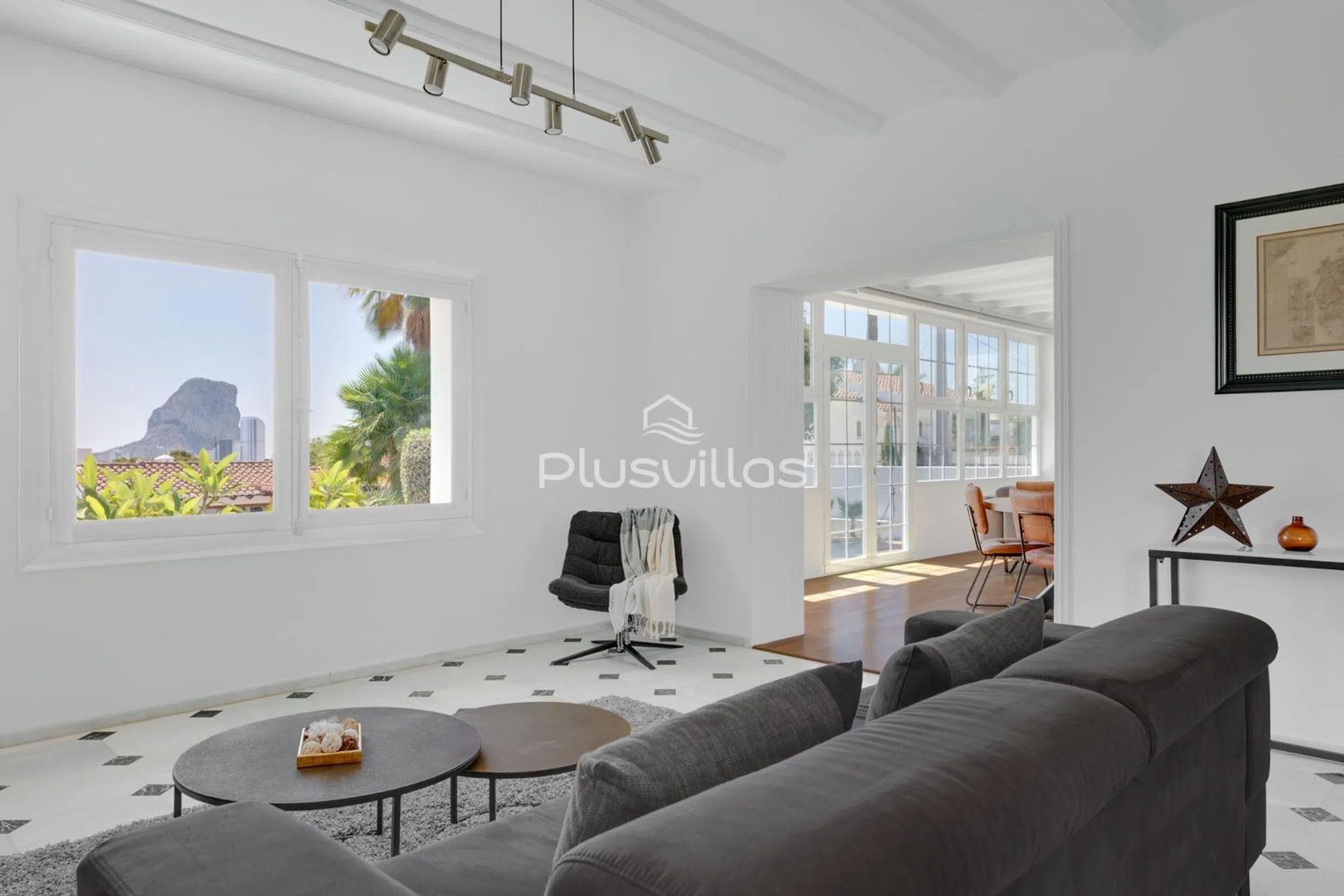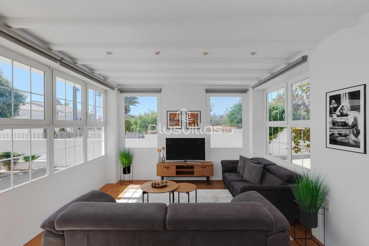 Descubra esta excepcional villa moderna situada en una de las zonas residenciales más cotizadas de Calpe, donde la tranquilidad, el espacio y la proximidad al centro de la ciudad se combinan a la perfección. Una oportunidad única para disfrutar de privacidad y comodidad a poca distancia de todos los servicios esenciales. Situada en una impresionante parcela privada de 2.100 m², esta excepcional propiedad ofrece una superficie construida total de 421 m², que comprende una casa principal de 342 m² y una casa de invitados totalmente independiente de 79 m². La villa es ideal para familias numerosas o para alojar invitados, y está completamente lista para entrar a vivir. La propiedad ha sido completamente renovada en 2025, nunca ha sido habitada desde la renovación y cuenta con muebles nuevos y acabados de alta calidad en todas partes. Los grandes ventanales ofrecen unas impresionantes vistas panorámicas del Peñón de Ifach desde casi todas las habitaciones. Características principales: Vistas panorámicas al Peñón de Ifach y al monte Oltà. A solo 5 minutos a pie del centro de la ciudad, la estación de autobuses, las tiendas, el colegio, las instalaciones deportivas y los servicios médicos. Parcela única de 2100 m², la más grande de la zona. Gran piscina privada, zona de barbacoa y terraza solárium. Casa de invitados independiente con ventanas panorámicas. Gimnasio privado. Totalmente renovada y lista para entrar a vivir. Mobiliario moderno y nuevo incluido. Aire acondicionado en todas las habitaciones, calefacción eléctrica y agua caliente. Sistema de videovigilancia y alarma de seguridad. Amplio garaje y aparcamiento cubierto para dos vehículos. Distribución: La casa principal cuenta con dos salones, cinco dormitorios, tres baños, una cocina totalmente equipada, lavadero y garaje. La casa de invitados incluye una cocina independiente, salón, gimnasio y baño. Esta villa representa una oportunidad única para adquirir una vivienda de alta calidad, espaciosa y moderna en una ubicación privilegiada en Calpe, que combina comodidad, privacidad y vistas espectaculares. Perfecta como residencia permanente o como exclusiva segunda vivienda. Póngase en contacto con nosotros para obtener más información o concertar una visita privada.