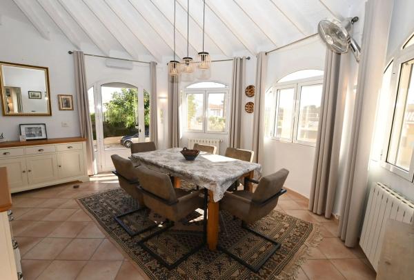 ¡Descubre tu nuevo hogar en la codiciada zona de Ortenbach, Calpe! Esta encantadora casa independiente, situada en una amplia parcela de más de 800 m², ofrece un espacio ideal para disfrutar de la vida en familia o en pareja. Con 172 m² construidos y 150 m² útiles, la vivienda cuenta con tres acogedores dormitorios y dos baños completos, perfectos para el confort diario. El luminoso salón se convierte en el corazón del hogar, donde podrás relajarte junto a la chimenea en los días más frescos. La cocina independiente está diseñada para inspirar al chef que llevas dentro, mientras que los armarios empotrados y el trastero brindan un amplio espacio de almacenamiento. Además, la calefacción central de gas y el aire acondicionado frío/calor garantizan un ambiente agradable durante todo el año. No te pierdas las impresionantes vistas al Peñón de Ifach desde tu propia terraza, donde podrás disfrutar de momentos inolvidables al aire libre. La ducha exterior es perfecta para refrescarse después de un día de sol en la playa, que se encuentra a solo unos minutos en coche. Con una orientación sur que llena de luz natural cada rincón, esta casa es una oportunidad única en el mercado. Construida en 1978 y en perfecto estado, ya que se reformó enteramente hace unos años, esta propiedad es ideal para quienes buscan un hogar con carácter y encanto. ¡No esperes más y ven a conocerla! El carport ofrece sombra al coche durante los meses de verano, y hay parking para varios coches más. Este es el lugar donde tus sueños se hacen realidad.