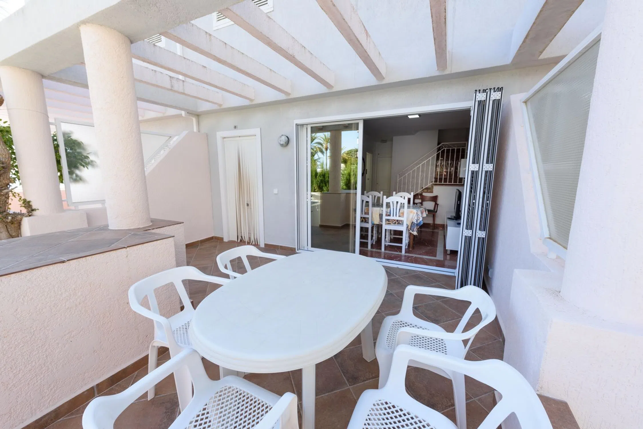 Bungalow a dos pasos de la playa Se ofrece uno de los pocos bungalow que están en primera línea de playa de la Fossa. Cuenta con acceso directo al paseo marítimo y muy cerca del icónico Peñón de Ifach. Ideal tanto para residencia habitual como para vacaciones o inversión turística. Garaje subterráneo incluido en el precio. La vivienda se encuentra en un complejo residencial privado que ofrece piscina comunitaria, amplias zonas ajardinadas, área infantil y vigilancia mediante cámaras. También incluye plaza de aparcamiento subterráneo dentro del recinto. El bungalow, distribuido en dos planta, más un solárium, dispone de un acogedor salón con suelo de mármol, cocina semiabierta con barra americana, dos dormitorios y dos baños completo. El salón se abre a la terraza, haciendo la estancia mucho más espaciosa y cómoda. Cuenta con dos terrazas: la principal, con porche y una en la parte de arriba de la vivienda a modo de solárium con vistas al paseo marítimo y la playa. El dormitorio principal está equipado con dos camas y armario empotrado, al igual que el segundo dormitorio. La zona ofrece todos los servicios necesarios a pie: supermercados, restaurantes, farmacias, transporte público, puerto deportivo y espacios naturales. El aeropuerto de Alicante se encuentra a aproximadamente 1 hora en coche (79 km).