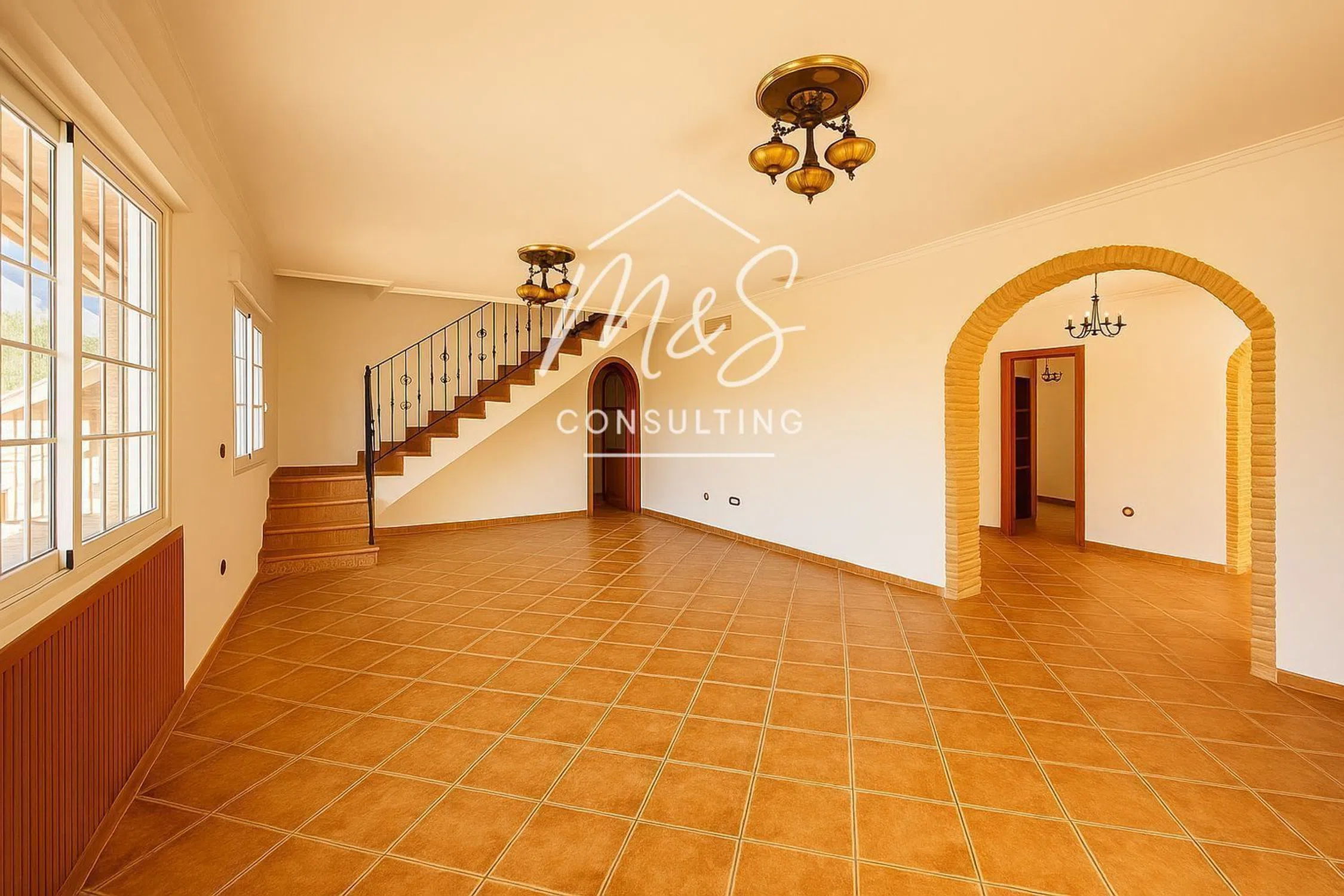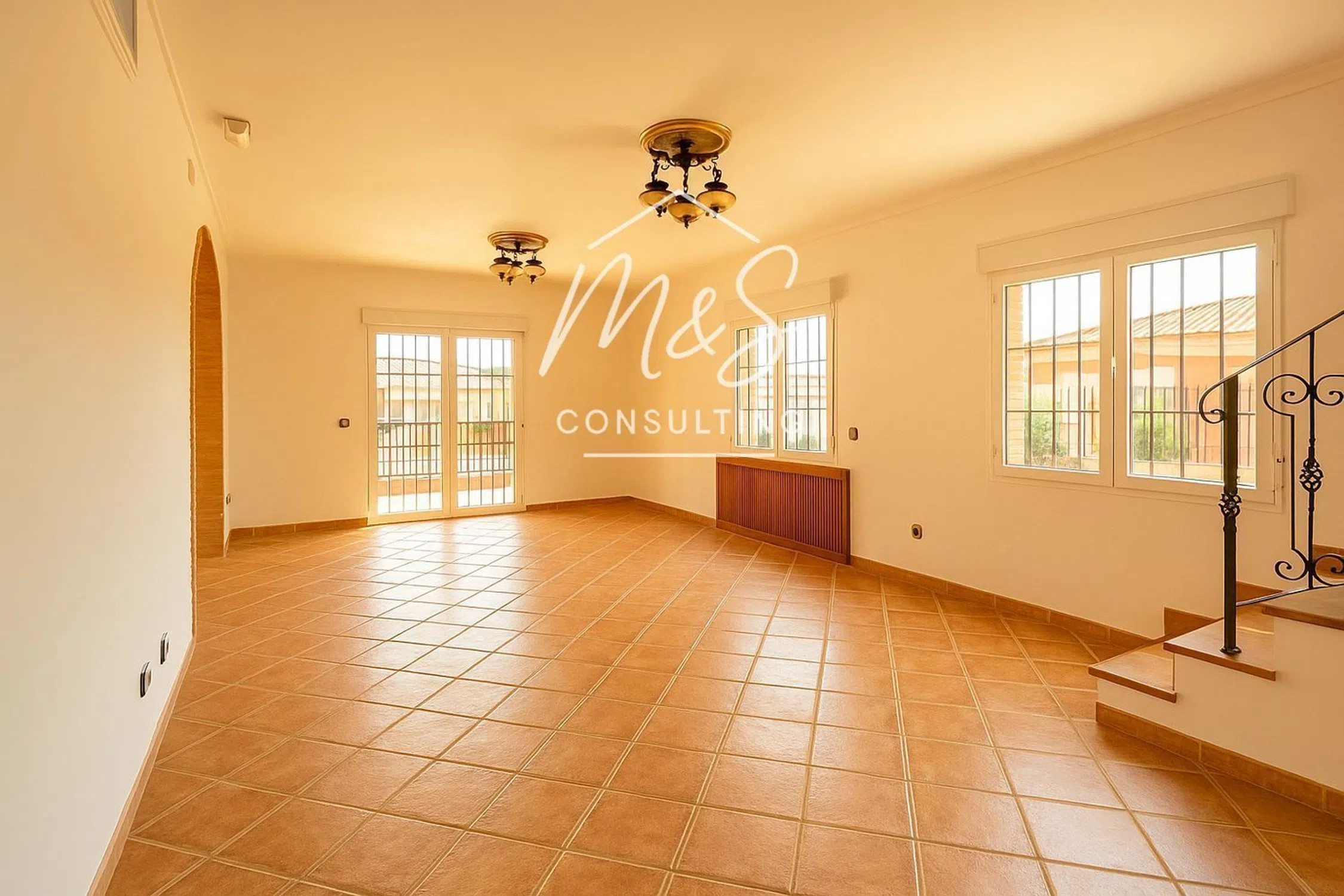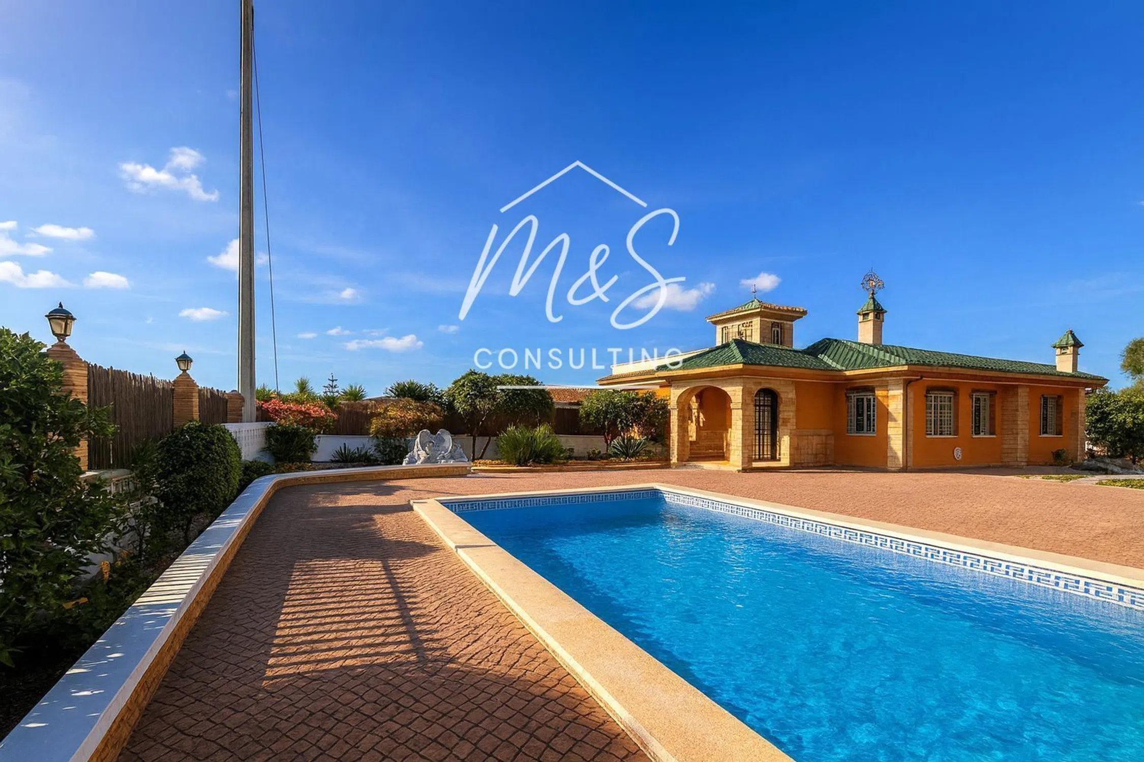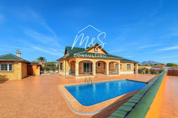 En una zona tranquila de Catral, rodeada de jardines verdes y espacios abiertos, se encuentra esta villa cuidada que combina a la perfección el confort rural con una funcionalidad inteligente. El refugio ideal para quienes valoran la privacidad, el espacio y disfrutan tanto del interior como del exterior. La vivienda principal da la bienvenida con un amplio y luminoso salón integrado con una gran cocina abierta y una espaciosa galería con armarios empotrados. Una terraza cubierta ofrece el espacio perfecto para desayunos tranquilos y tardes relajadas. Climatización garantizada todo el año con aire acondicionado y calefacción por gasóleo con radiadores empotrados. En la planta baja hay dos dormitorios espaciosos: uno principal con baño en suite y vestidor, y otro que puede usarse como habitación de invitados, despacho o dormitorio adicional. En la planta superior, bajo techos de madera, se encuentra otro dormitorio con baño grande y armarios empotrados, además de una lujosa suite principal con vestidor, baño en suite y acceso a una terraza con vistas a la piscina — un rincón privado para el descanso. La casa de invitados independiente está totalmente equipada: dormitorio, baño, cocina y zona de estar, perfecta para recibir familiares o amigos, o incluso alquilar. Cuenta con aire acondicionado para garantizar el confort en cualquier época del año. En la parcela destaca una gran piscina de 10×5 metros con baño exterior. El propietario instalará un motor nuevo y la entregará en perfecto funcionamiento. Cerca hay una amplia zona de barbacoa con cocina de verano, estufa de hierro fundido y horno de leña tradicional — ideal para noches al aire libre y reuniones con amigos. Dos portones automáticos dan acceso a la parcela ajardinada, donde también hay una cochera cubierta con puerta eléctrica para dos vehículos. La vivienda cuenta con persianas eléctricas y suministro eléctrico trifásico. Esta casa está diseñada al detalle, no solo para vivir, sino para disfrutar de la vida cada día. Disponemos de servicios financieros para gestionar tu hipoteca y negociar por ti las mejores condiciones en más de 20 entidades bancarias. Pregunta por nuestro sistema de financiación hasta el 100%. Te esperamos en M&S Consulting.
