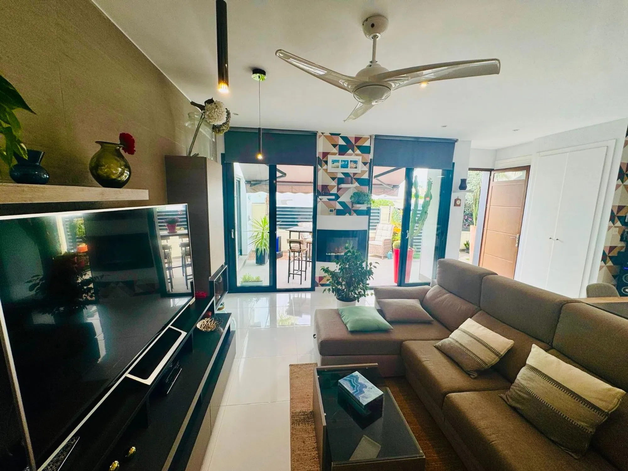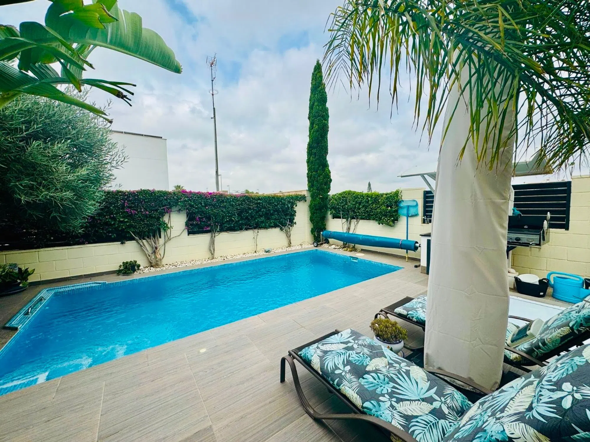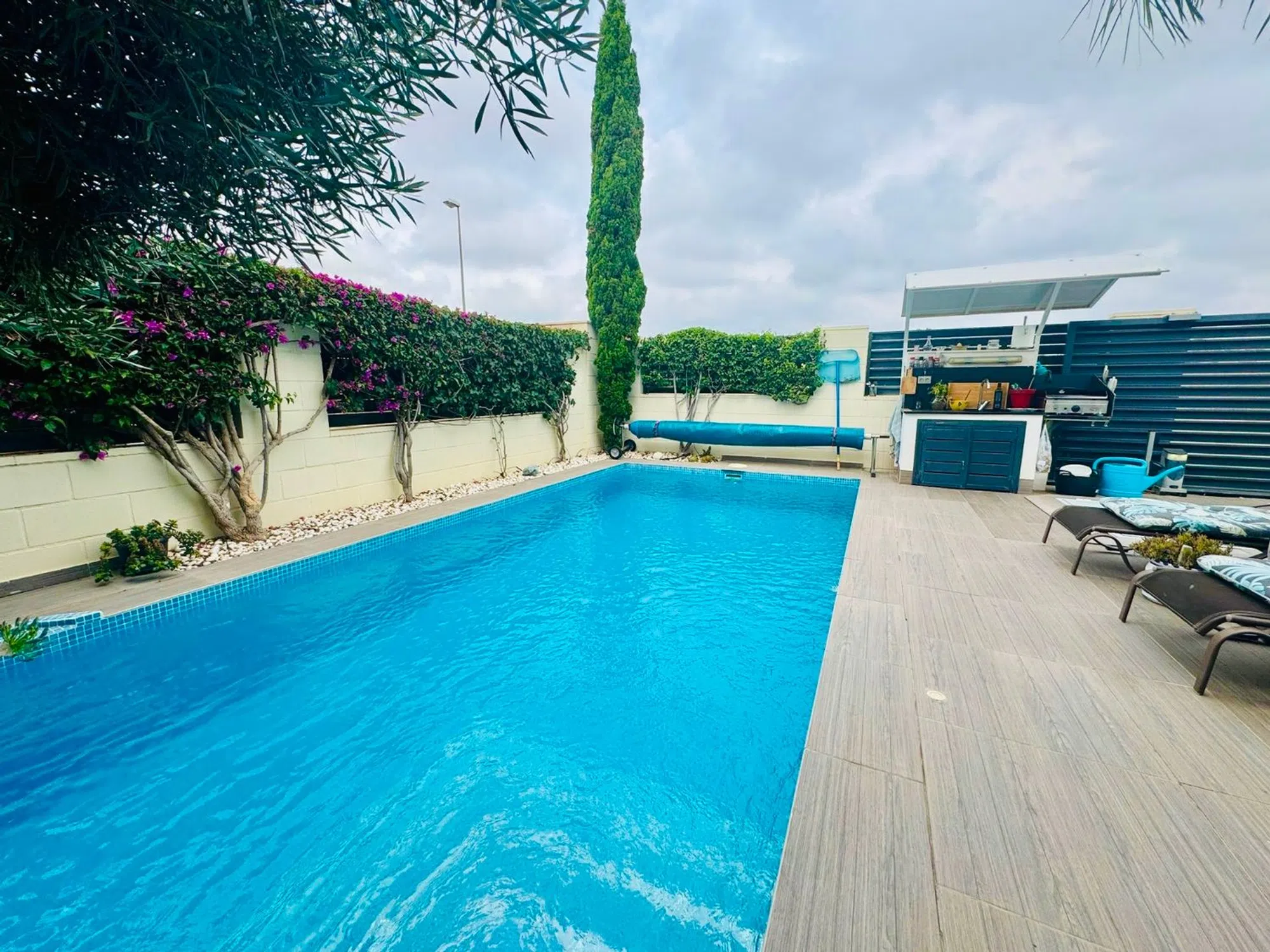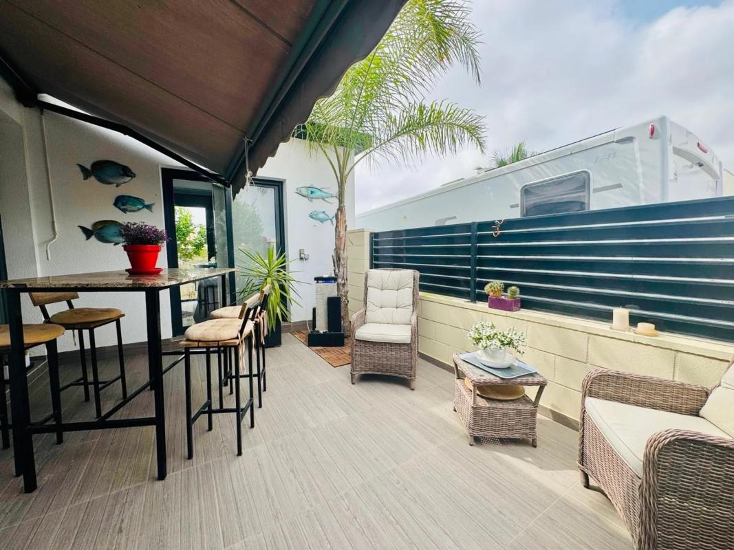 Esta luminosa y acogedora casa de una sola planta se encuentra en una zona residencial tranquila y bien comunicada. Es ideal como vivienda habitual, casa de vacaciones o inversión para alquiler. La vivienda destaca por su diseño funcional, sus espacios amplios y su excelente estado de conservación. Ofrece un equilibrio perfecto entre comodidad interior y disfrute exterior. Distribución interior Espacioso salón-comedor con salida directa al exterior Cocina independiente de estilo moderno Tres dormitorios dobles con armarios empotrados Dos baños completos, uno de ellos en suite Acabados de calidad y distribución práctica Espacios exteriores Terraza y balcón orientados para aprovechar la luz natural Jardín privado de fácil mantenimiento Piscina privada, ideal para el relax y el ocio al aire libre Espacio perfecto para comidas al aire libre o reuniones familiares Equipamiento y extras Aire acondicionado en varias estancias Calefacción central a gas Carpintería de calidad y buen aislamiento Vivienda lista para entrar a vivir sin necesidad de reformas Una excelente oportunidad para adquirir una propiedad moderna, bien cuidada y con todas las comodidades. Contáctenos para más información o concertar una visita.