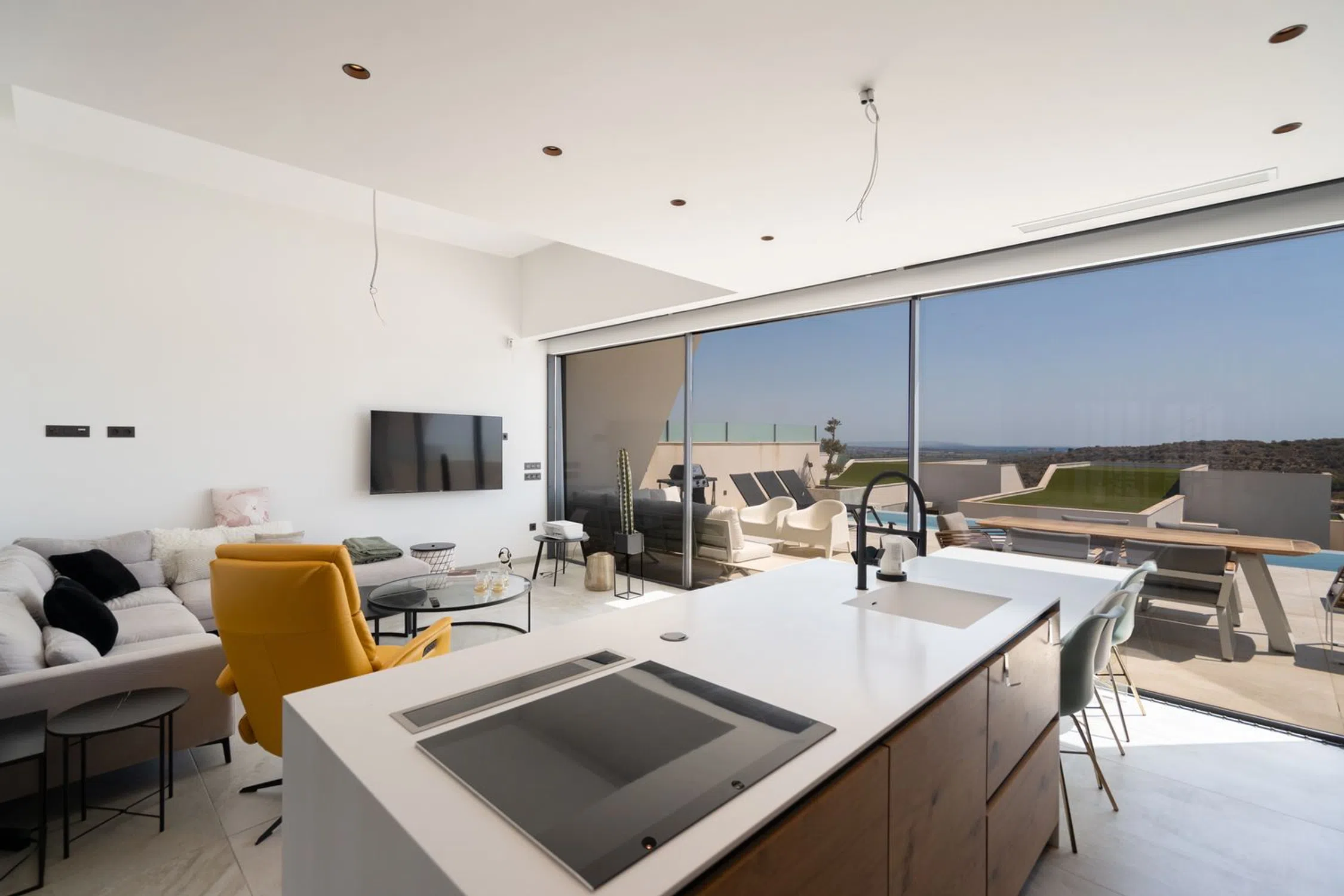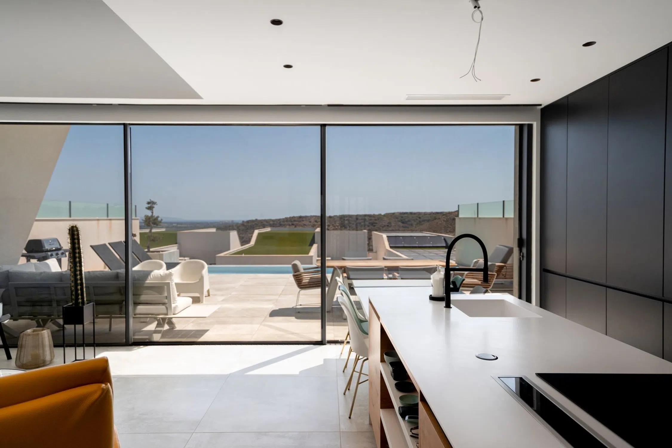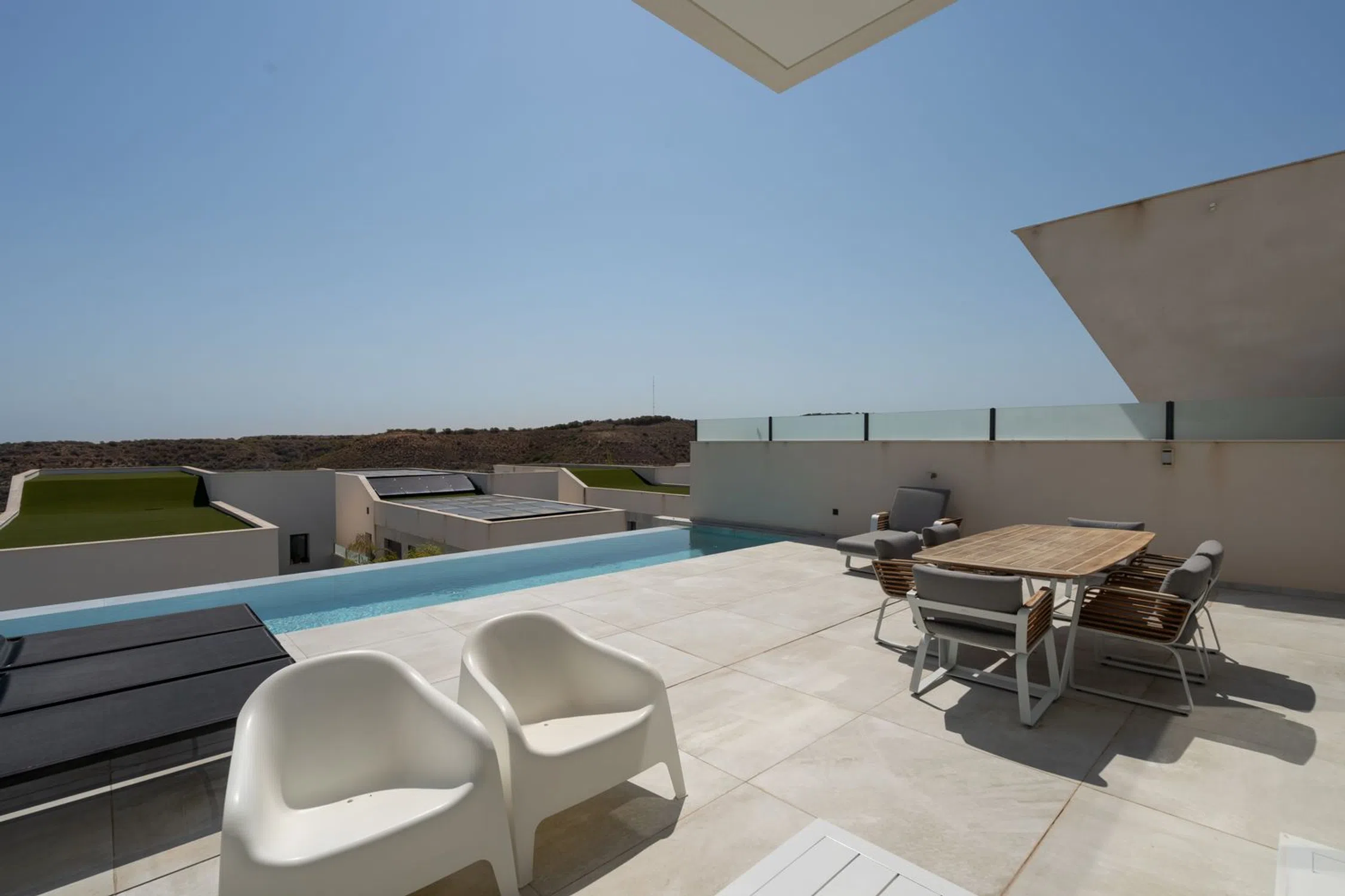 En SkandiaMäklarna, Torrevieja, nos complace dar la bienvenida a esta amplia y maravillosa villa en la codiciada urbanización Residencial Oceanic, justo encima del campo de golf La Marquesa en Ciudad Quesada. La villa consta de tres plantas. En la planta de entrada se encuentra un amplio salón con cocina abierta, un dormitorio con baño en suite, un recibidor y un aseo de invitados. Desde el salón se puede disfrutar de una vista panorámica a la preciosa parcela, donde encontrará amplias zonas de socialización y una piscina infinita. En la parte delantera hay espacio para aparcar el coche y un frondoso patio. Subiendo por una escalera, se encuentran dos dormitorios, cada uno con su propio baño en suite. Desde uno de los dormitorios también hay un balcón. Bajando por una escalera se accede al amplio sótano. Aquí se encuentran un lavadero, un garaje, un dormitorio con baño en suite, un amplio salón con sauna, otro baño y un patio. La casa se terminó de construir en 2020, por lo que se encuentra prácticamente nueva, con un estilo moderno, lujoso y agradable. Ciudad Quesada es una zona con mucha gente y actividad durante todo el año. Dispone de una amplia gama de restaurantes, bares, tiendas y todos los servicios que necesita durante su estancia. Hay opciones de entretenimiento como minigolf, golf, bolos, rutas de senderismo, parque acuático, etc. ¡Quesada es una zona con opciones para todas las edades! También hay un colegio noruego. En 10 minutos en coche se puede llegar a varias playas y a las ciudades de Torrevieja y Guardamar. Desde la casa se puede ir andando a uno de los mejores parques de la zona y también al campo de golf de La Marquesas. Si busca un alojamiento lujoso y espacioso, ha encontrado el lugar ideal. Bienvenido a casa.