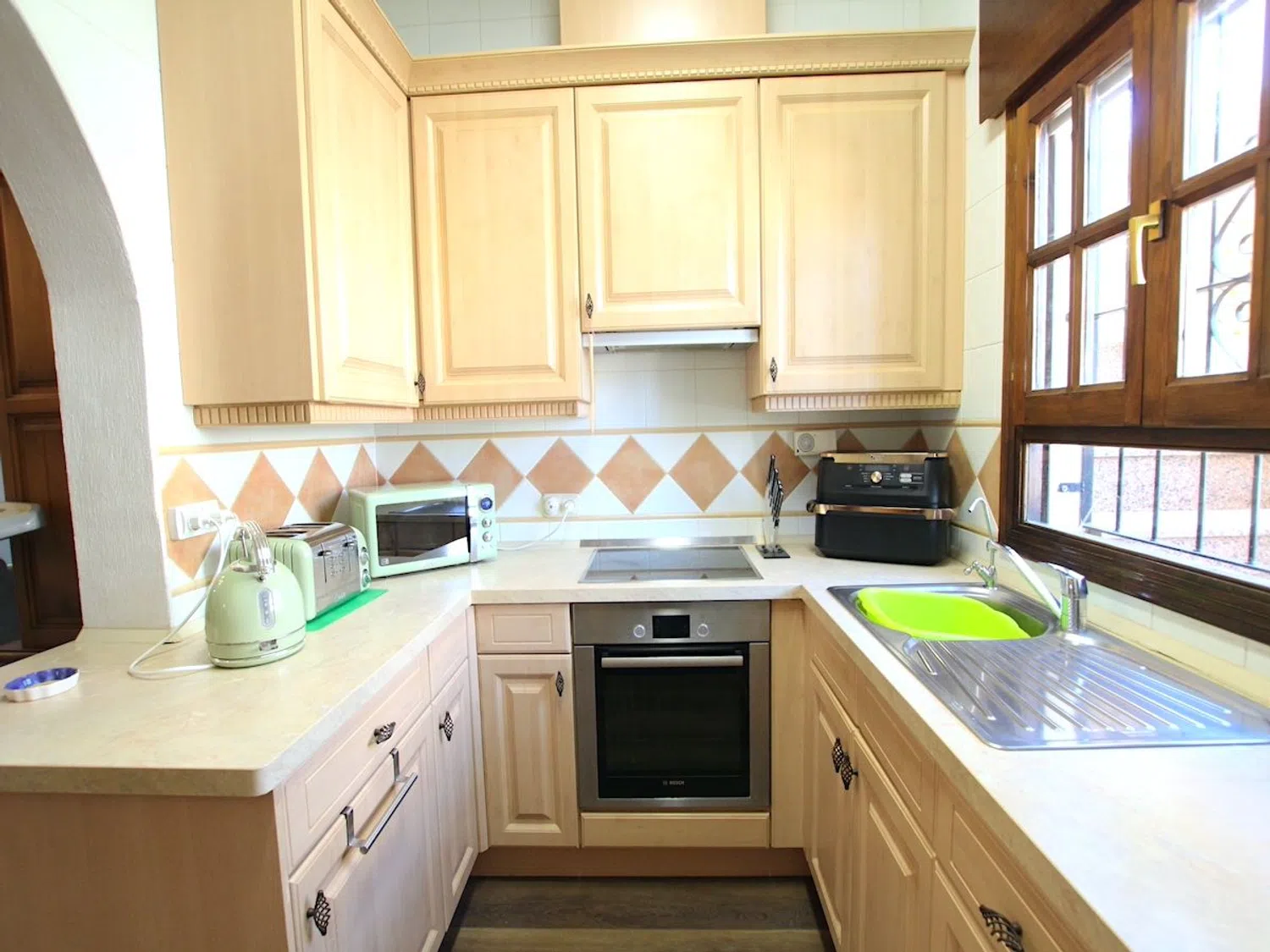 Mit einer überdurchschnittlich großen Wohnfläche ist die Villa optimal auf einer Ebene verteilt und bietet 3 geräumige Schlafzimmer. Ein malerischer andalusischer Innenhof führt zum Haupteingang, wo Sie einen formellen Essbereich und eine gut ausgestattete, große Küche mit viel Arbeitsfläche und Stauraum finden. Angrenzend erwartet Sie ein heller und großzügiger Wohnraum mit einem gemütlichen Kamin. Alle 3 Schlafzimmer sind mit Einbauschränken ausgestattet. Darüber hinaus stehen zwei Badezimmer zur Verfügung, die jeweils mit einer ebenerdigen Dusche ausgestattet sind.