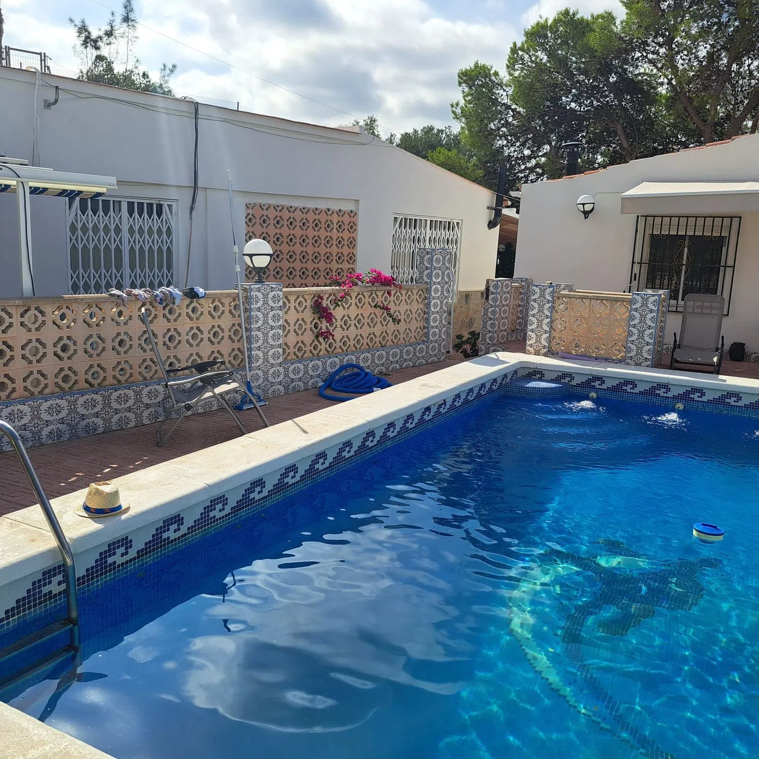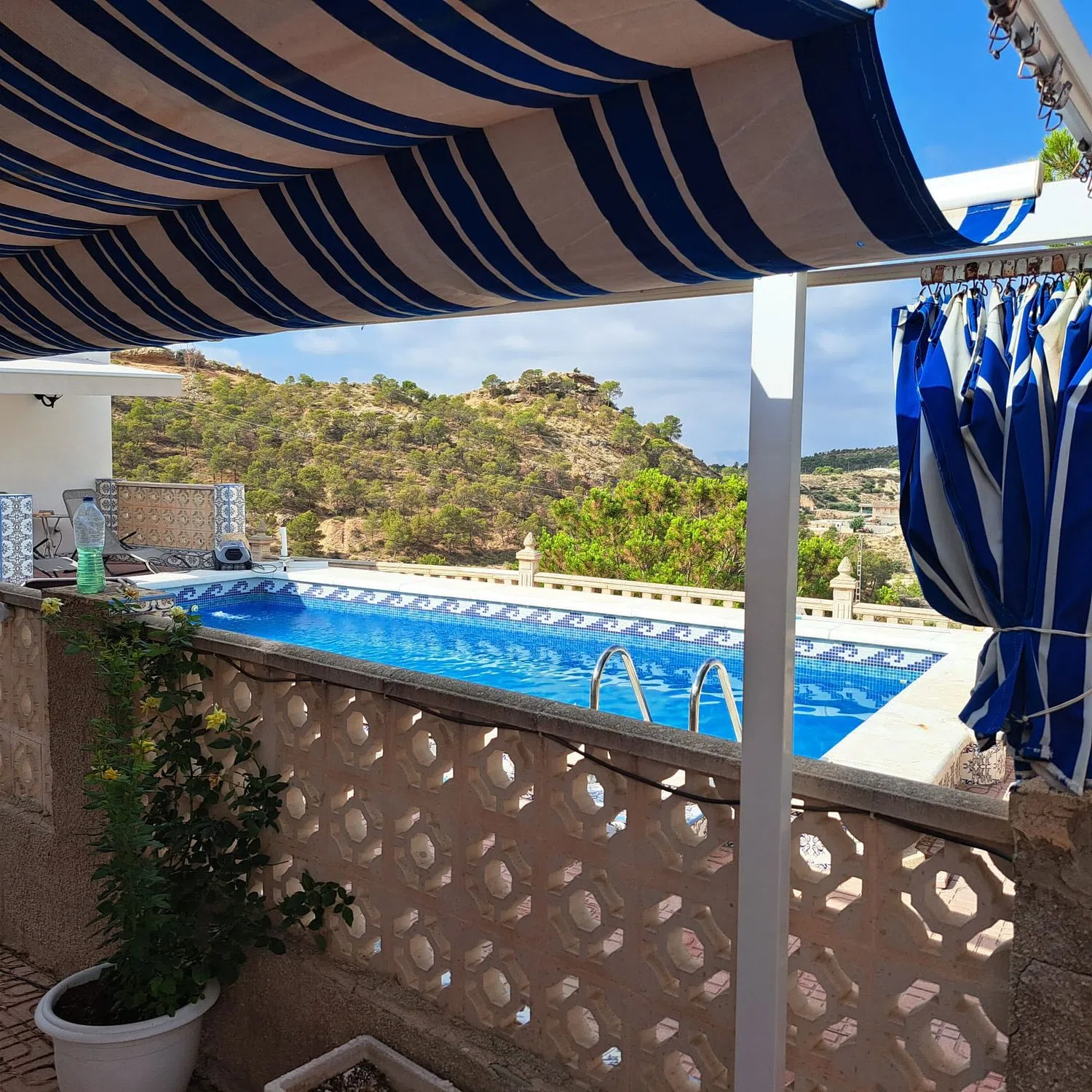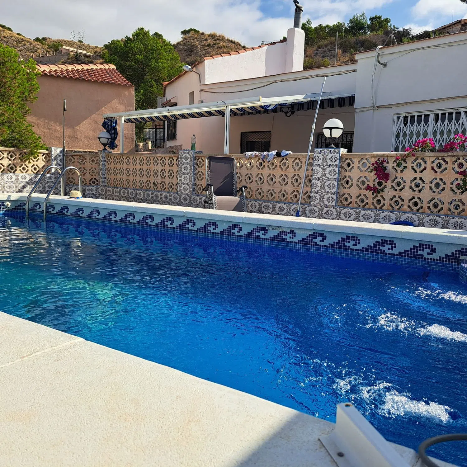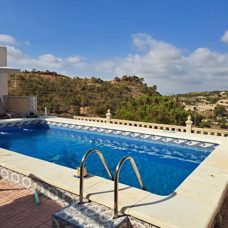 CREVILLENTE (ALICANTE) Casa de Campo Rústica en Planta Baja Referencia 5229 Detalles: 4 dormitorios, 2 baños, 140 m² de superficie habitable, parcela vallada de 9871 m², jardín, piscina privada, terraza, cocina de verano, barbacoa, chimenea, aire acondicionado, cochera Descripción: Casa de campo rústica de una sola planta a las afueras de Crevillente (Alicante), a solo 25 minutos de la playa, con impresionantes vistas a las montañas, que se pueden admirar especialmente desde el banco que domina la propiedad. La casa ha sido ampliamente renovada y cuenta con cuatro dormitorios, incluyendo una habitación cueva, un baño nuevo, un amplio salón con chimenea, un comedor-sala de estar con chimenea, una cocina completamente nueva, una terraza cubierta y una azotea renovada. Ofrece 140 m² de superficie habitable y una parcela de 9.871 m², con solo la casa y el jardín completamente vallados. La casa cuenta con varios equipos de aire acondicionado. El jardín ofrece una piscina privada, una amplia terraza, una cocina de verano con horno de pizza que podría convertirse en un apartamento de invitados, un baño exterior, una zona de barbacoa cubierta y un enorme trastero integrado en la montaña. También hay una cochera en la entrada. La parcela es mayoritariamente montañosa, con algunos olivos y granados en mesetas escalonadas. La casa dispone de electricidad, agua corriente, agua de riego y una fosa séptica recién instalada con una bomba que bombea el agua cuesta arriba para regar el terreno. La casa se encuentra en una zona muy tranquila, a solo 3 minutos del pueblo y a 25 minutos del aeropuerto de Alicante. La zona es ideal para practicar senderismo, senderismo y ciclismo.