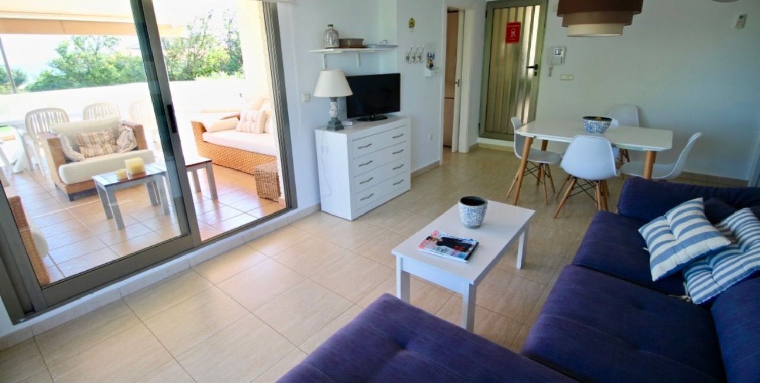 Se alquila apartamento vacacional (desde 500€ semana en temporada baja, resto consultar). Con una privilegiada ubicación en primera línea de playa, la vivienda, totalmente equipado, dispone de salón comedor, tres dormitorios, dos baños, cocina y amplias terrazas con espectaculares vistas al mar.Situado en urbanización Tierra de Mar (carretera les marines), con acceso directo a la playa, jardín, piscina y zona infantil.