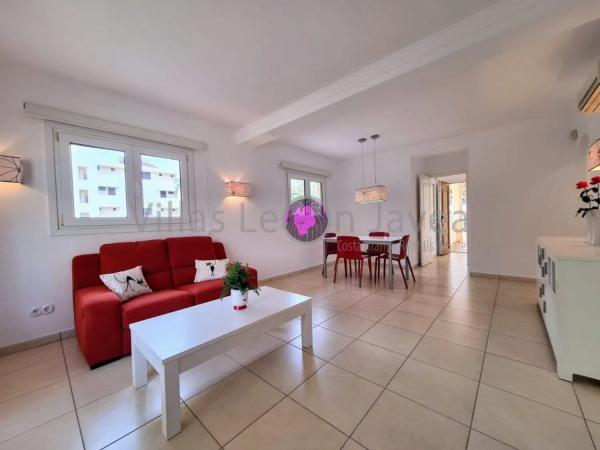 WUNDERSCHÖNES APARTMENT IN DENIA (LAS MARINAS) Dieses Apartment verfügt über zwei großzügige Schlafzimmer mit Einbauschränken und zwei Badezimmer, eines davon en suite. Ein einladender Flur führt zu einem hellen Wohn- und Essbereich, der direkten Zugang zu einer großen Terrasse bietet. Etwa die Hälfte der Terrasse ist überdacht und von dort aus gelangt man über eine Wendeltreppe zu einer privaten Dachterrasse. Die Küche ist vollständig ausgestattet mit Oberschränken, Unterschränken und allen erforderlichen Haushaltsgeräten.