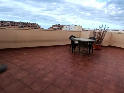 Atico en venta en Denia en zona Miguel Hernández con amplia terraza de 60 m2. ¿Buscas un ático en Denia, luminoso y con amplia terraza? Esta es tu oportunidad La vivienda se distribuye en tipo dúplex. La planta primea se distribuye en amplio salón comedor con cocina abierta con barra americana, dormitorio y cuarto de baño con ducha. Por medio de amplia y confortable escalera se asciende a la 2ª planta que cuenta con 2 dormitorios dobles y un cuarto de baño con bañera de hidromasaje. A su amplia terraza con distintas orientaciones se accede desde 3 estancias: desde el salón comedor, cocina y dormitorio. En la terraza se encuentra un trastero con lavadera y termo eléctrico. Desde su amplia terraza de 61 m2 aproximadamente podrás disfrutar del estupendo clima mediterráneo que tenemos en Denia. La finca dispone de ascensor. En el mismo edificio puede opcionalmente comprar un garaje cerrado por 27.000 € Entorno y situación: Junto a la Avenida Miguel Hernández se encuentra rodeado de todos los servicios necesarios que le facilitan la vida diaria: supermercado Mercadona (150 metros), entidades bancarias, oficinas de seguros, farmacia, gimnasio, parque infantil, instituto de secundaria. En un paseo accede a varios restaurantes, al castillo y a la calle Loreto donde podrá degustar toda la gastronomía de Denia. A 700 metros del Club de Tenis y de la Playa del Raset y entrada a Marina el Portet desde donde divisará estupendas puestas de sol mientras disfruta de la brisa del mar y las vistas a Denia. Contacte con Inmobiliaria Lex y concierte para visitarlo en el.
