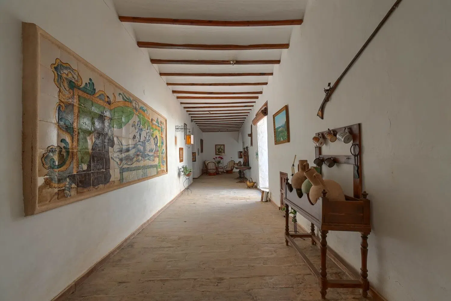 Das Kloster ist geräumig und bietet vielfältige Nutzungsmöglichkeiten. Es verfügt über einen großen Innenhof, der von langen Fluren umgeben ist, ein beeindruckendes Wohnzimmer mit hoher Decke, zwei große Esszimmer sowie fünf Schlafzimmer mit en-suite Badezimmern. Eine Bibliothek, die auch als Büro genutzt werden kann, eine weitläufige Küche und mehrere Terrassen im Freien runden das Angebot ab.