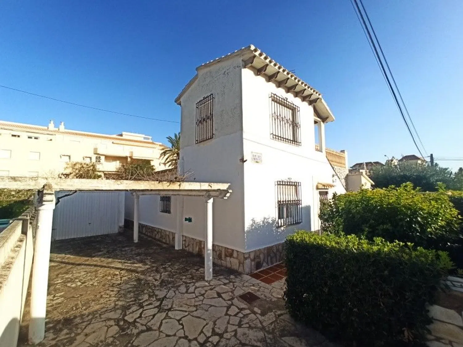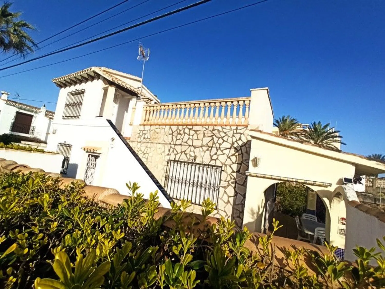 Diese charmante Villa steht zum Verkauf an der Playa de Las Marinas in Denia, Alicante, Spanien. Ideal gelegen, nur 3 Kilometer von der Stadt entfernt und nur wenige Schritte vom Meer, bietet diese Immobilie direkten Zugang zum Strand, ohne eine Straße überqueren zu müssen.