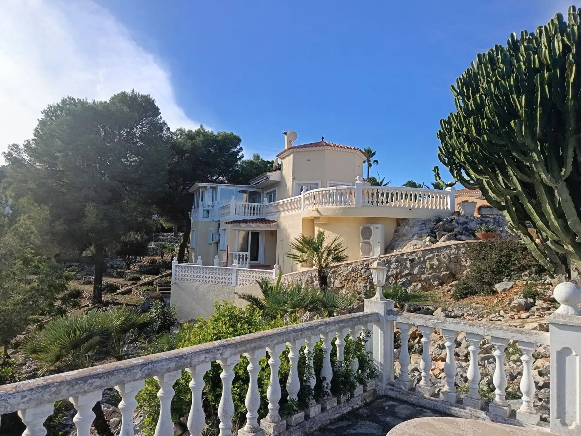 SE VENDE BONITO CHALET EN DENIA con vistas panorámicas al mar y montaña. Situada en la zona de Marquesa VI donde podrá disfrutar de un entorno natural y tranquilo y a unos 10 minutos de Denia En la parcela de aproximadamente 2.000 m², se encuentra la casa principal que se distribuye en una amplia entrada, salón comedor con chimenea, cocina independiente, 3 dormitorios, 3 baños, 1 aseo, calefacción por suelo radiante con bomba de calor y aire acondicionado en toda la casa. También dispone de una caseta de barbacoa y zonas de estar al aire libre. Un garaje cerrado y plazas de aparcamiento en la parcela La amplia zona de piscina consta de una piscina de 5 x 10 m con cubierta interior, ducha exterior, caseta de piscina con sauna, ducha y aseo. Trasteros en el sótano. Al lado de esta parcela, existe otra de unos 900 m² aproximadamente para libre edificación, esta es opcional y con precio aparte.