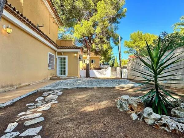 Chalet independiente con un jardín precioso al lado del mar en Las Rotas, Denia, a solo 100 metros de las calas y con una perfecta orientación Sureste. Esta propiedad se ha mantenido en excelente estado gracias a que ha tenido un único propietario. Su distribución, funcional y acogedora, se organiza en dos plantas y un sótano. En la planta principal, al entrar, nos recibe un amplio y luminoso hall que da paso a un elegante salón-comedor con chimenea, ideal para relajarse, con acceso directo a una terraza cubierta desde la cual se pueden disfrutar vistas despejadas al jardín. La cocina americana, cuenta con un lava es muy amplia y cuenta con un lavadero independiente. Además, esta planta alberga dos amplios dormitorios y un baño completo. La primera planta es un refugio privado que acoge el dormitorio principal, con un baño en suite y acceso a dos terrazas que ofrecen vistas al mar y montaña. El sótano dispone de un gran trastero y un garaje con capacidad para 3-4 vehículos, con acceso directo a la vivienda, ofreciendo comodidad y seguridad. Entre las características adicionales de esta propiedad destacan el aire acondicionado en todas las estancias, armarios empotrados en todas las habitaciones. Su privilegiada ubicación, a tan solo 100 metros de las playas y rodeada de una variada oferta de restaurantes y bares en primera línea de mar, hace de este chalet la elección perfecta para quienes buscan tranquilidad sin renunciar a todas las comodidades.