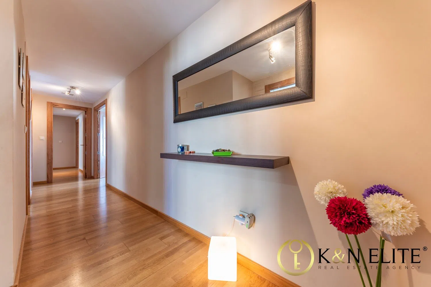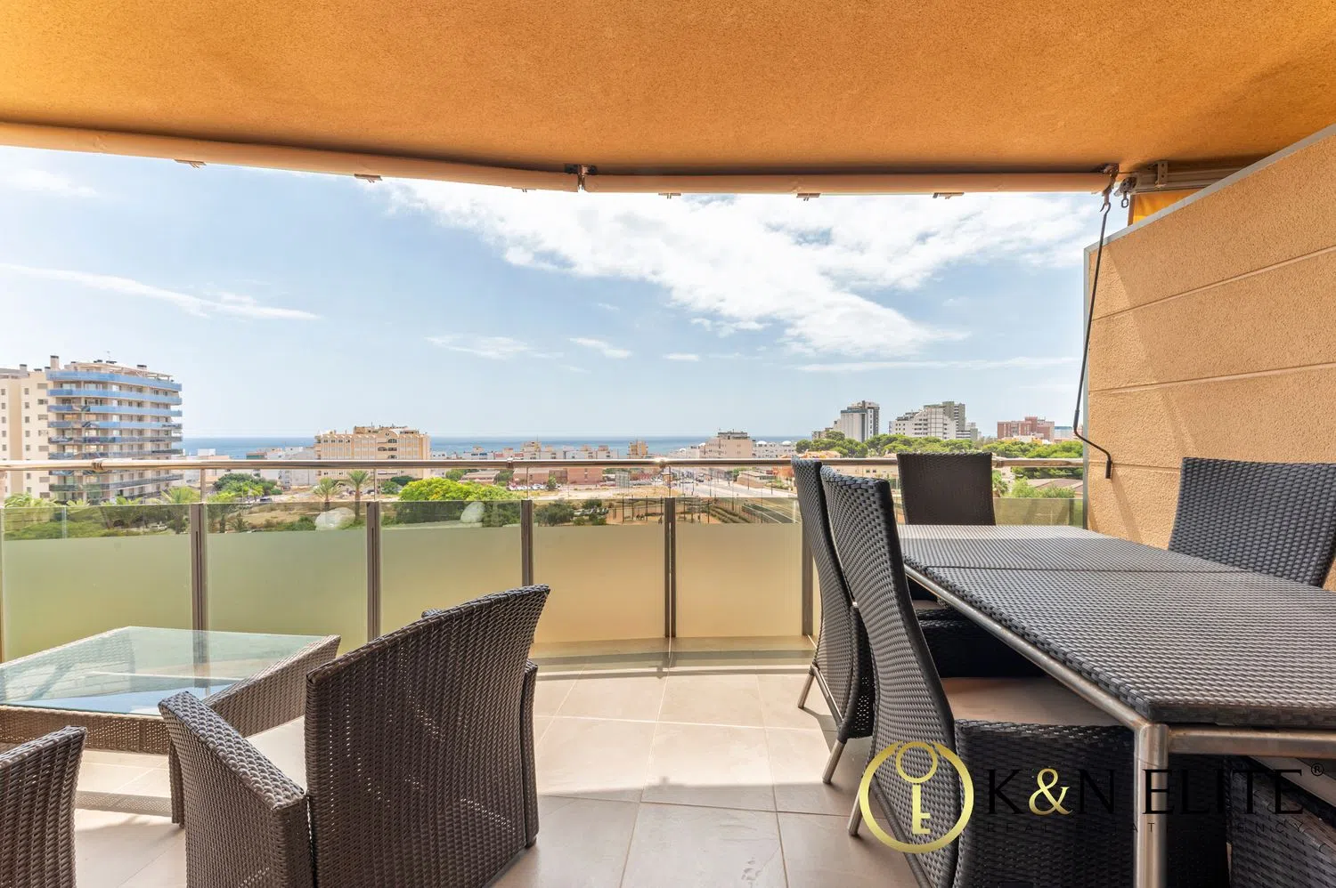 Die Wohnfläche beträgt etwa 105 m² und ist geschickt aufgeteilt in ein geräumiges Wohn-Esszimmer mit Zugang zur Terrasse, eine voll ausgestattete Küche mit Galerie, vier Schlafzimmer mit Einbauschränken sowie zwei voll ausgestattete Badezimmer, wovon eines ein angrenzendes Bad hat. Besonders hervorzuheben ist, dass diese hervorragende Immobilie über eine zentrale Klimaanlage für Kühlung und Heizung verfügt.