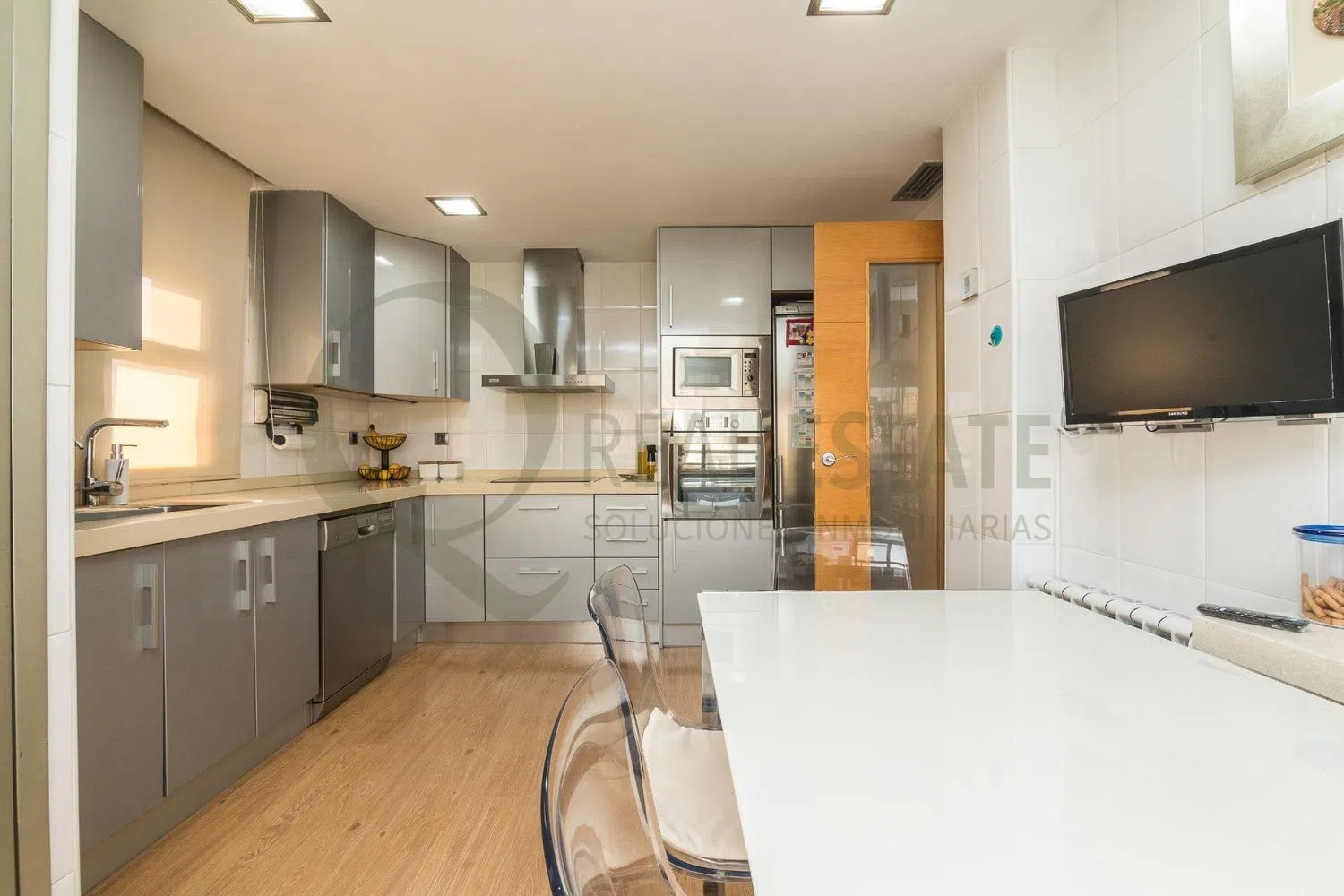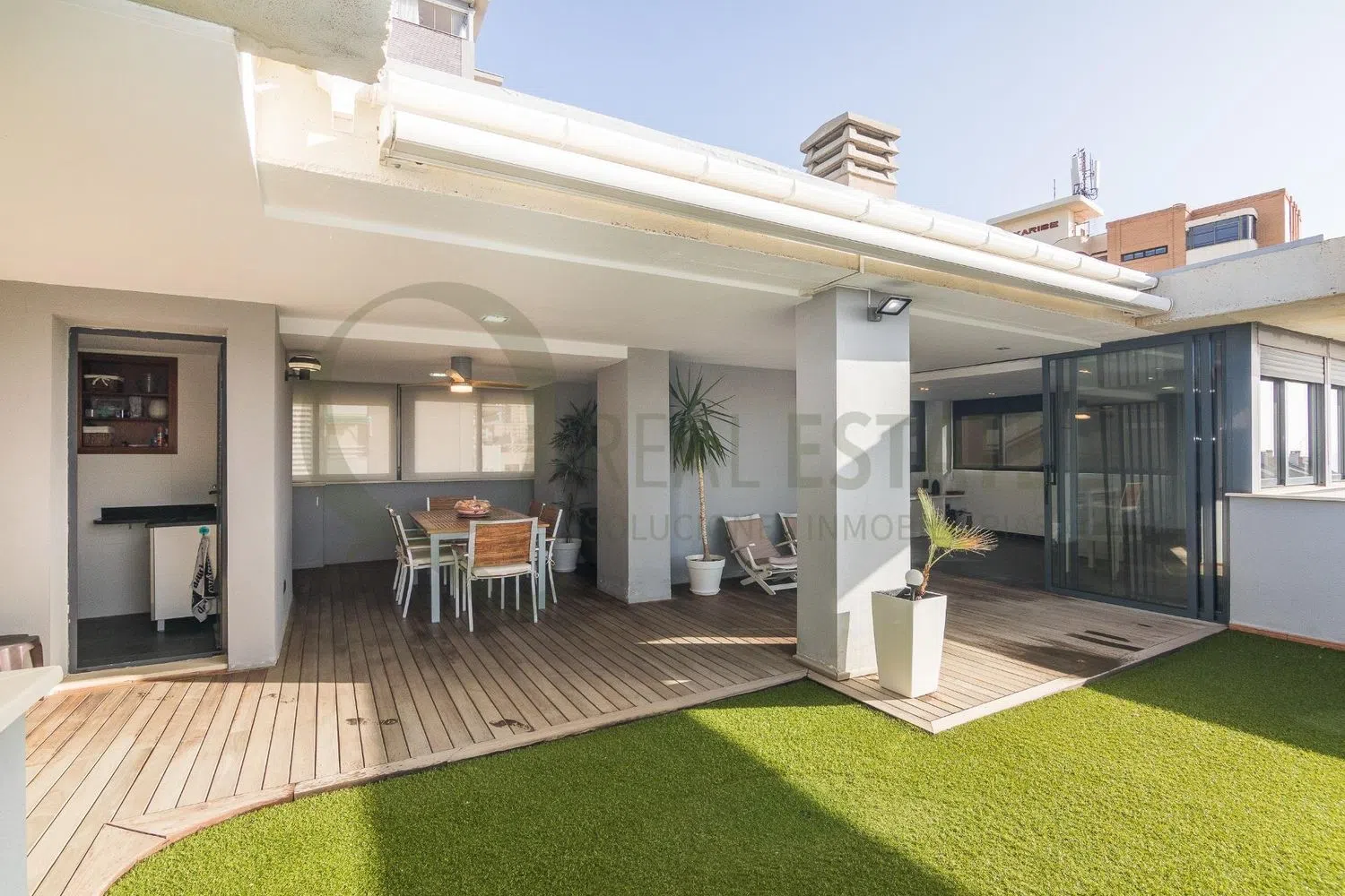 Im Inneren erwarten Sie drei geräumige Schlafzimmer und drei voll ausgestattete Badezimmer, die maximalen Komfort bieten. Die großzügige und komplett eingerichtete Küche lädt dazu ein, köstliche Mahlzeiten zuzubereiten, während das weitläufige und einladende Wohnzimmer perfekt ist, um in einer hellen und eleganten Umgebung zu entspannen.
