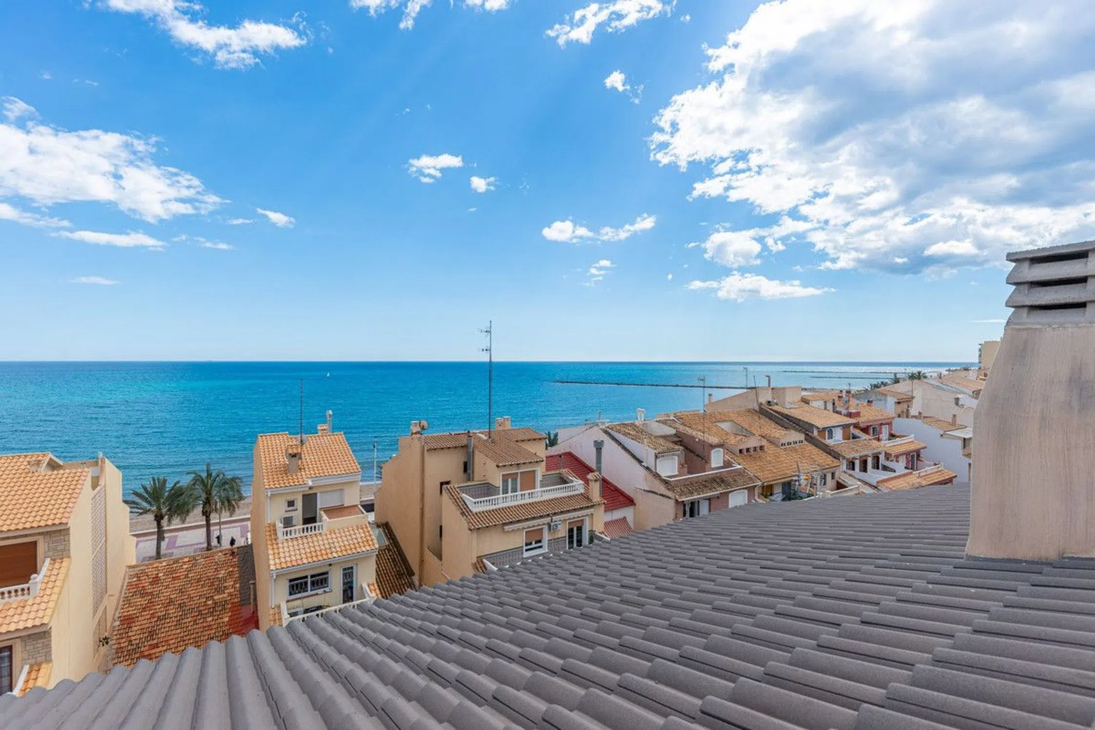 En el centro de El Campello y a solo unos pasos de su playa, se encuentra este versatil atico duplex de 3 dormitorios. El Campello esta a solo 20 minutos en coche del pintoresco pueblo costero de Villajoyosa, a 20 minutos de Alicante y a 25 minutos del Aeropuerto internacional de El Altet. El campo de golf mas cercano se encuentra a 25 minutos, y el puerto deportivo esta a poca distancia a pie. Este atico duplex esta situado en una calle paralela al paseo maritimo. El acceso al edificio se realiza a traves de la carretera que conduce al garaje comunitario. Una vez estacionado, se puede acceder al apartamento mediante un ascensor que va directamente desde el garaje hasta la planta en la que se encuentra la vivienda. El ascensor puede detenerse tanto en la planta baja del duplex como directamente en la primera planta del atico, ofreciendo asi dos posibles entradas. DiSTRiBUCiON: Planta baja: Espacio diafano que integra salon-comedor y una amplia cocina totalmente equipada. El salon da acceso directo a una terraza con vistas al mar. En este nivel tambien hay un bano con ducha. Planta superior: Entrada exterior independiente que conduce al rellano de esta planta. Aqui se encuentran dos dormitorios dobles con armarios empotrados, uno de ellos con acceso directo a una terraza con excelentes vistas al mar. En esta planta tambien hay un bano completo. Ultima planta: Pequeno tercer dormitorio y trastero. Desde aqui se accede a una terraza privada en la azotea de 28 m2, con espacio suficiente para una mesa y sillas, y unas impresionantes vistas al mar. incluye garaje y trastero. EQUiPAMiENTO: - Aire acondicionado central (frio y calor) en toda la vivienda. ViSTAS Y ORiENTACiON: - Vistas al mar desde todas las plantas. - Orientacion sureste. Una oferta muy completa, ideal para una familia o para quienes buscan una casa de vacaciones con encanto.