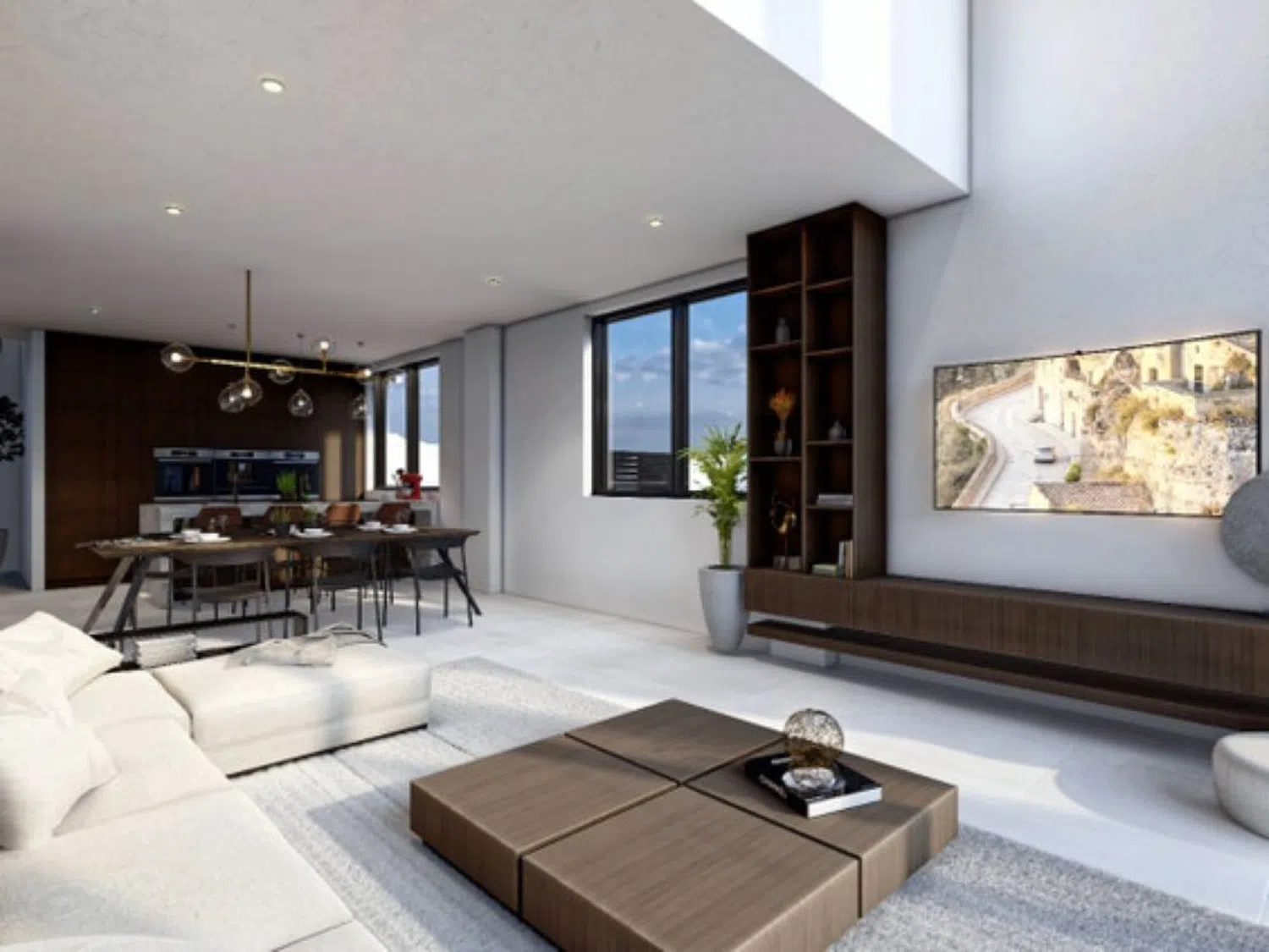 Die Villa erstreckt sich über drei Etagen und beeindruckt im Erdgeschoss mit einem offenen Wohn- und Essbereich, der durch eine voll ausgestattete Küche ergänzt wird. Zudem gibt es ein Schlafzimmer, ein Badezimmer und einen praktischen Hauswirtschaftsraum. Im Obergeschoss befinden sich drei weitere Schlafzimmer, zwei Badezimmer sowie eine 12 m² große, offene Terrasse, die einen herrlichen Blick ermöglicht. Der weitläufige Keller mit 105 m² bietet viel Platz für verschiedene Nutzungsmöglichkeiten.