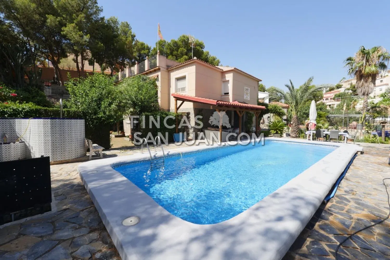Fantastisches Chalet mit einer Grundstücksgröße von 1400 Quadratmetern, nur 200 Meter vom Meer entfernt! Dieses Chalet befindet sich in einer begehrten Wohngegend und bietet mehrere Etagen sowie eine große Sonnenterrasse. Es verfügt über vielfältige Räume, Terrassen, Balkone, einen herrlichen Pool und eine entspannende Chillout-Zone. Der Garagenbereich bietet Platz für mehrere Fahrzeuge.