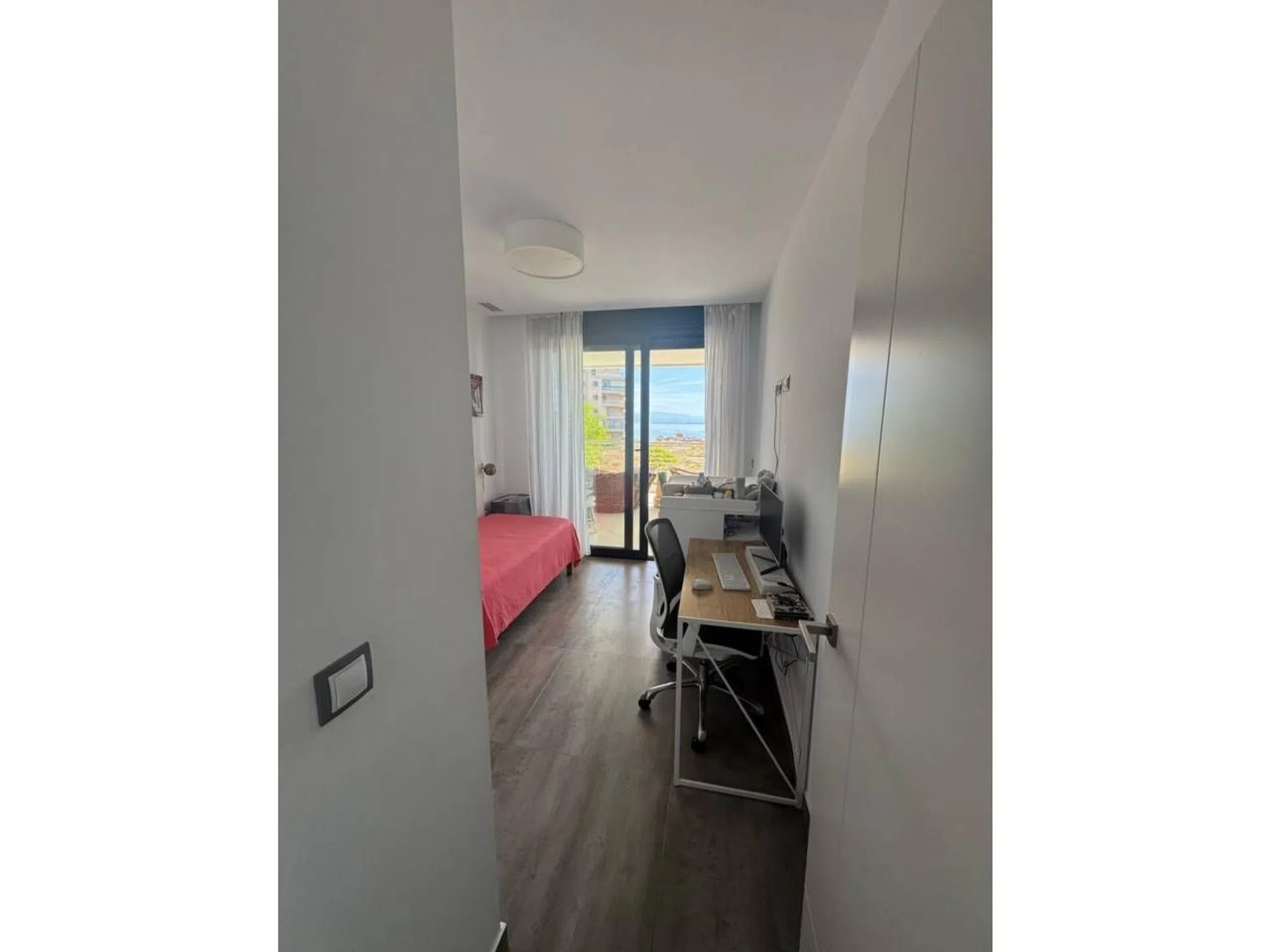 �Arenales del Sol, urbanización “Infinity View” ¡Vistas infinitas al mar! Exclusivo complejo residencial con amplias zonas comunes: piscinas climatizadas, restaurante, instalaciones deportivas y áreas de descanso. Ideal tanto para vivir como para invertir: el alquiler turístico alcanza los 300 €/día. Características de la vivienda: 2 dormitorios 2 baños Garaje con cargador para coche eléctrico Trastero Aire acondicionado central (frío/calor) Sistema de aerotermia con suelo radiante en los baños Puerta de seguridad blindada Segunda planta Vista directa al mar Licencia turística Armarios empotrados Piscinas: infantil, dos climatizadas y jacuzzi Bar-restaurante en la urbanización Gimnasio, sauna, pista de pádel, jacuzzi Seguridad 24 horas y cámaras de videovigilancia Superficie útil: 85 m² Terraza: 40 m² Precio: 450.000 €.