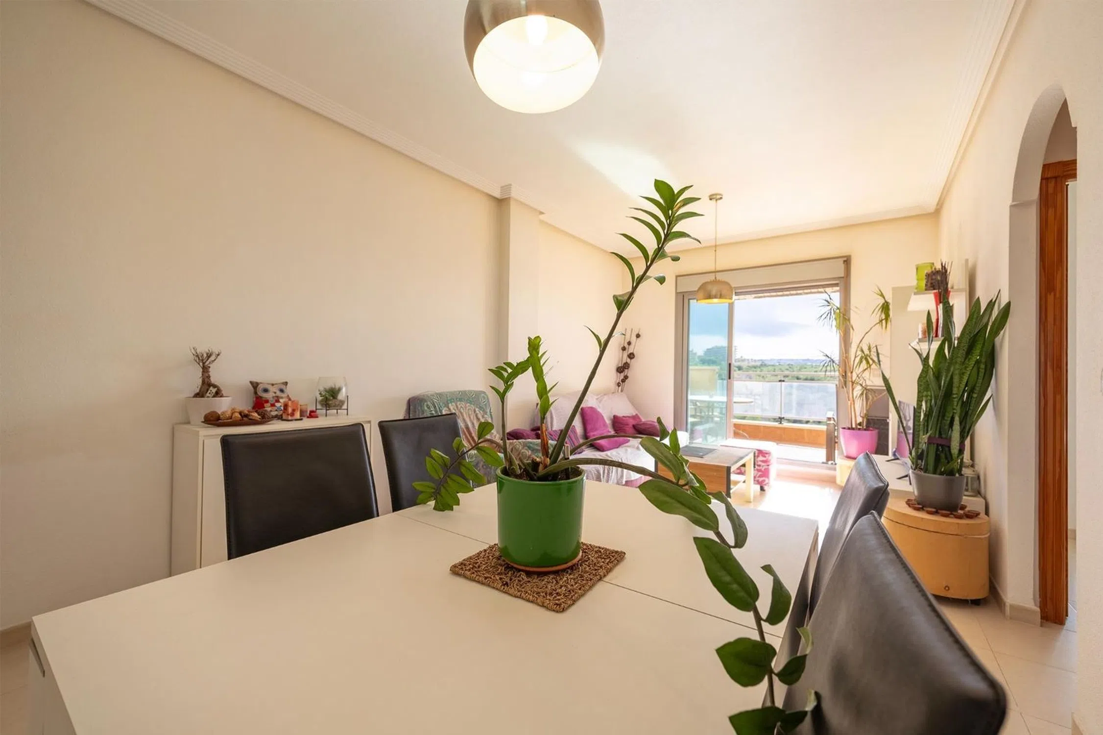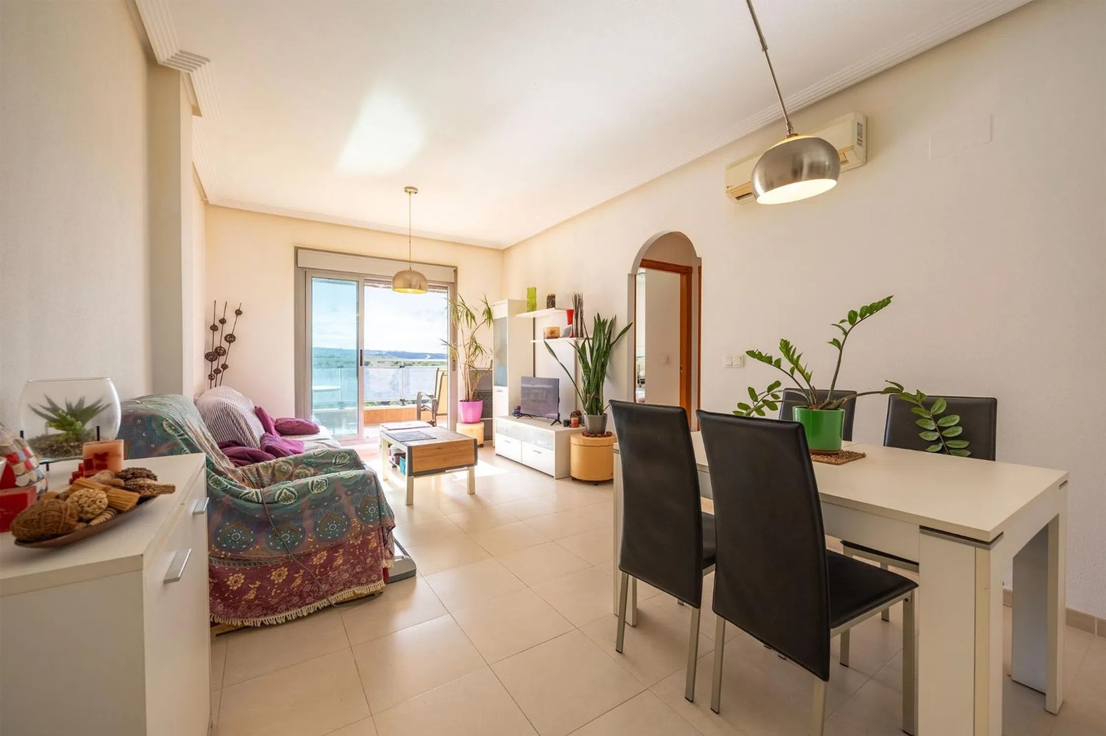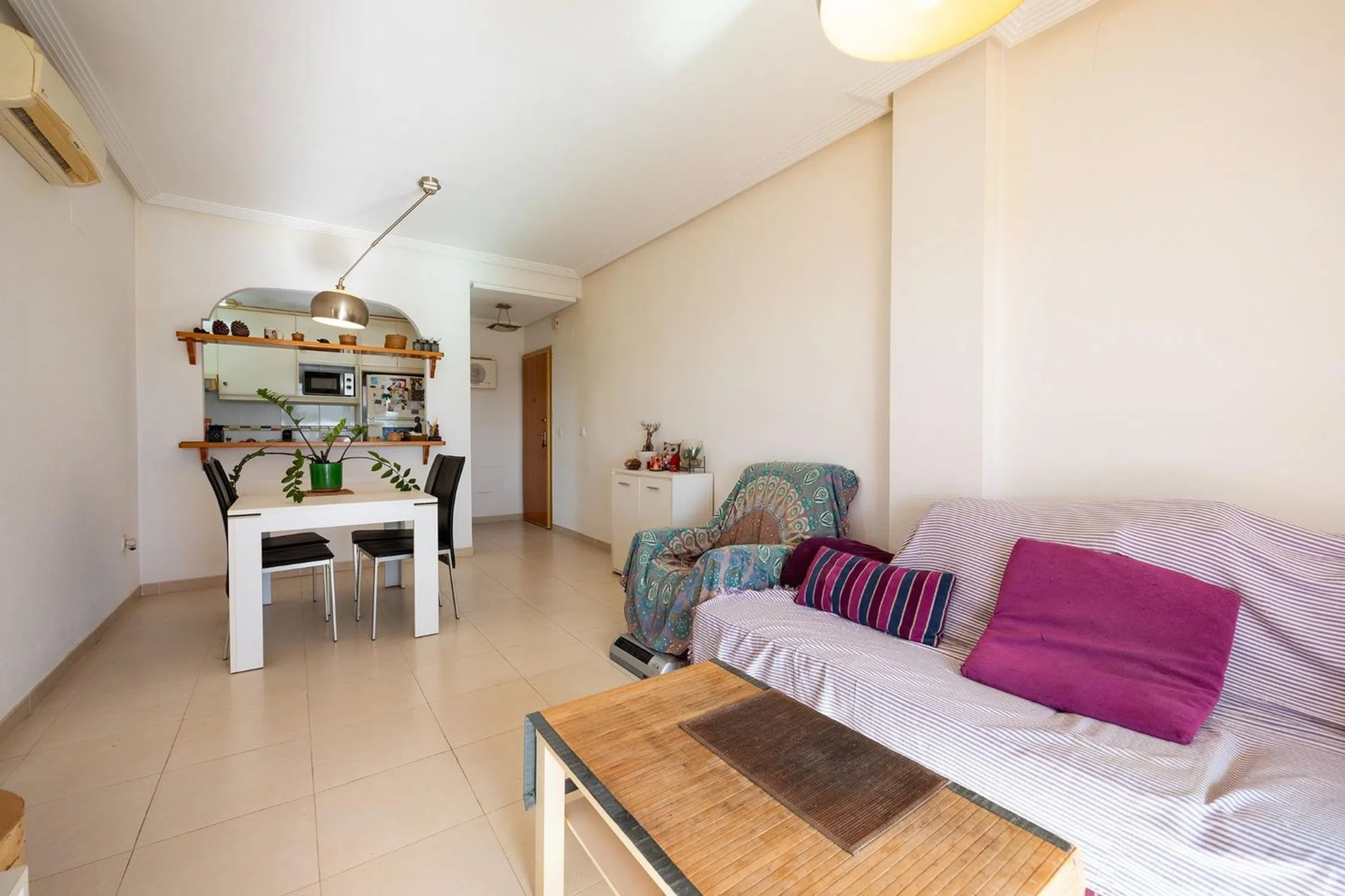 Luz, vistas despejadas y calidad de vida a un paso del mar. Te presentamos esta magnífica vivienda situada en cuarta planta, dentro de una de las urbanizaciones más completas y valoradas de Arenales del Sol, ideal tanto como residencia habitual como segunda vivienda o inversión. � Ubicación privilegiada: playa y naturaleza La localización es uno de sus grandes atractivos: A solo 10 minutos andando de la playa de Arenales del Sol Junto al Paraje Natural del Clot de Galvany y su Ruta Verde, perfecto para pasear, hacer deporte o disfrutar de la naturaleza Buenas conexiones de transporte, con paradas de autobús y todos los servicios cercanos: supermercados, restaurantes, comercios y ocio � Vivienda lista para entrar a vivir La vivienda se encuentra en muy buen estado de conservación, cuidada y funcional, lista para disfrutar desde el primer día, sin necesidad de reformas. Distribución y características principales: Salón-comedor luminoso, con salida directa a una amplia terraza Cocina americana equipada, con galería. 2 dormitorios con armarios empotrados 1 baño completo Terraza, ideal para disfrutarla durante todo el año Cuarta planta exterior, con vistas despejadas y excelente entrada de luz natural � Confort y calidades Orientación sur, muy luminosa Carpintería exterior Climalit. Suelo cerámico Aire acondicionado tipo split en el salón Puerta de seguridad Vivienda totalmente exterior � Extras incluidos Plaza de garaje incluida en el precio (aprox. 15 m2) � Urbanización completa: vive como de vacaciones todo el año Una urbanización pensada para disfrutar: Piscina comunitaria Amplias zonas ajardinadas Pistas deportivas: pádel, tenis y polideportivo Zonas infantiles Edificio con ascensor Accesos adaptados para personas con movilidad reducida � Arenales del Sol: mucho más que playa Además de su extensa playa de arena fina, la zona destaca por su entorno natural, con acceso directo a las dunas del Carabassí, uno de los espacios más valorados de la provincia de Alicante por su tranquilidad y belleza natural. � Una oportunidad que no dura mucho Por su altura, terraza, vistas despejadas, urbanización, garaje y cercanía al mar, esta vivienda es una opción muy completa y con alta demanda en la zona. � Contacta con nosotros para más información o para concertar una visita. ℹ️ Nota legal El precio de venta no incluye impuestos ni gastos derivados de la compraventa (ITP/IVA, notaría, registro, gestoría). La información contenida en este anuncio es meramente informativa y no tiene carácter contractual. � Características básicas 77 m2 construidos | 68 m2 útiles 2 dormitorios 1 baño Terraza Plaza de garaje incluida Segunda mano / buen estado Armarios empotrados Orientación su Año de construcción: 2007 Aire acondicionado Acceso exterior adaptado Planta 4ª exterior con ascensor.