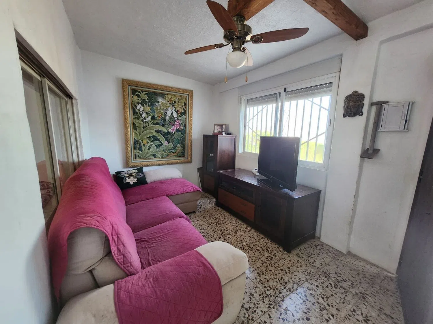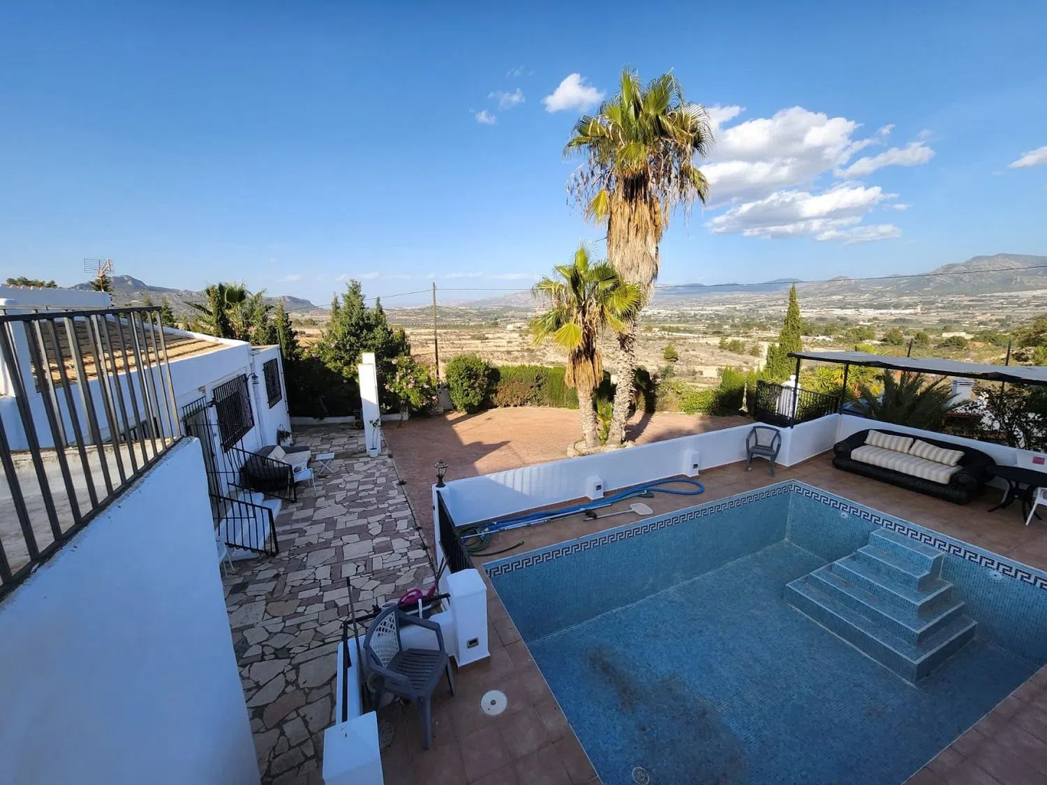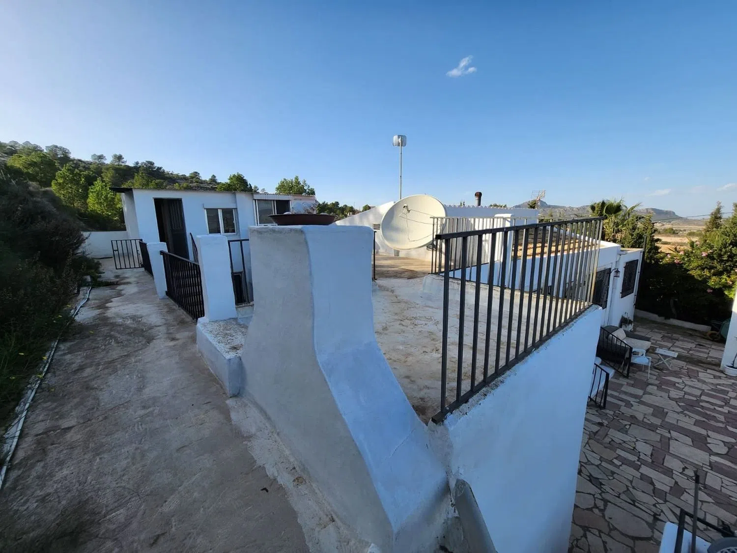 NO SE ALQUILA. Estamos orgullosos de ofrecer esta propiedad en la frontera de Sax/Elda a la venta, con vistas increíbles del valle hacia el castillo de Sax. Esta hermosa casa se encuentra en las montañas con el sol de frente a la casa por las mañanas y por la parte trasera por las tardes, lo que le brinda diferentes áreas para buscar o evitar el sol. Al ingresar al camino de entrada, lo recibe el área de la piscina elevada a la izquierda, con espacio para una mesa y sillas, etc. , y esto a su vez conduce a la puerta de entrada de la casa, con una hermosa sala de estar, con almacenamiento a la izquierda lado (esto podría convertirse en un dormitorio en suite potencialmente). Esto a su vez conduce a la gran sala de estar principal, con tres dormitorios al lado, siendo el principal en suite con vestidor. El pasillo pasa a la cocina con un gran comedor (anteriormente un dormitorio, y podría volver a convertirse en un dormitorio fácilmente). Desde la cocina, hay acceso a las escaleras al nivel superior, que por lo demás es independiente. Este contiene un baño y un dormitorio (actualmente se usa como área de descanso). En la parte trasera de la propiedad hay diferentes zonas valladas, que permiten que los perros deambulen por las zonas valladas (la parte trasera está separada de la delantera, por ejemplo, así que puedes llevar un coche por las puertas sin preocuparte de que los perros se escapen). Si buscas una casa de campo, con privacidad, vistas estupendas y acceso asfaltado, a tan solo unos minutos en coche de las localidades de Sax o Elda, esta podría ser perfecta para ti.