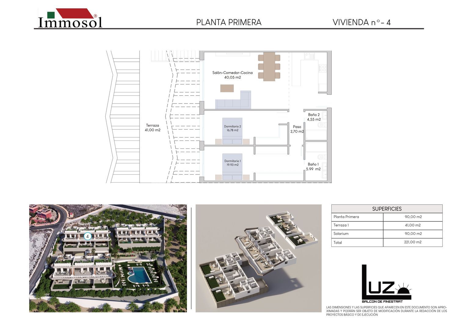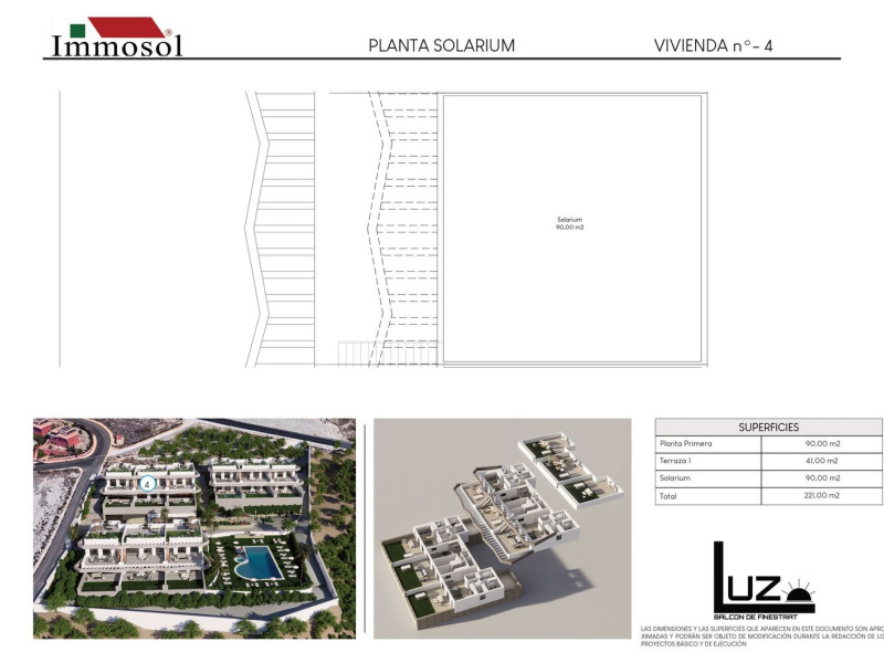 ¡Directo del promotor!Grupo Immosol presenta su nuevo residencial exclusivo en Finestrat- Benidorm.18 magníficas viviendas aterrazadas de lujo con vistas panorámicas 360 al Mar Mediterráneo.Fabricadas con materiales de alta calidad y equipadas con: Aerotermia, Aislamiento térmico y acústico, pre-instalación de domótica y jacuzzi. Así como, calificación energética tipo A y posibilidad de incluir piscina privada.Las viviendas, con una superficie mínima de 190 m2 para las plantas bajas y 202 m2 para las plantas altas. Cuentan con grandes terrazas de entre 35,87 m2 y 100 m2 y, en el caso de las plantas altas, también con un solarium de mínimo 90 m2. Todo esto para poder disfrutar de los más de 330 días de sol al año que ofrece la localidad de Finestrat en la Costa Blanca.Cada una de las viviendas tiene 2- 3 dormitorios amplios, 2 cuartos de baño, salón concepto abierto, cocina con isla e iluminación natural en todas las estancias. Además de parking subterráneo y ascensor.El Resort dispone de amplias zonas verdes, áreas de juego para los más pequeños y de descanso para los residentes, gimnasio interior, ascensor en cada uno de los bloques y una enorme piscina comunitaria. Todo ello pensado para disfrutar al máximo del tiempo de ocio con familia y amigos.Otro de los puntos fuertes del residencial exclusivo es que dispone de una buena comunicación: A escasos metros del transporte público con salida directa tanto a carretera nacional como a autovía y a ¡Tan solo 30 minutos del Aeropuerto Internacional de Alicante y la estación de tren de alta velocidad!También dispone de una buena ubicación cerca de todos los servicios: Centros comerciales, hoteles de lujo, restaurantes, parques temáticos y de ocio, clínicas públicas y privadas, colegios, campos de golf y ¡Las mejores rutas de senderismo a un paseo de distancia!Si estás buscando tranquilidad en un entorno privilegiado. Este es tu hogar ideal.Aprovecha la oferta de lanzamiento hasta el 30 de octubre que incluye:-Pack de luces led en toda la vivienda-Aire acondicionado por conductos-Suelo radiante en baños-Parking interior-Aerotermia-Gran piscina comunitaria-Ascensor en todos los bloques-Trastero-Pre instalación de domótica y Jacuzzi-Posibilidad de piscina privadaInvierte en calidad de vida, invierte en Immosol.