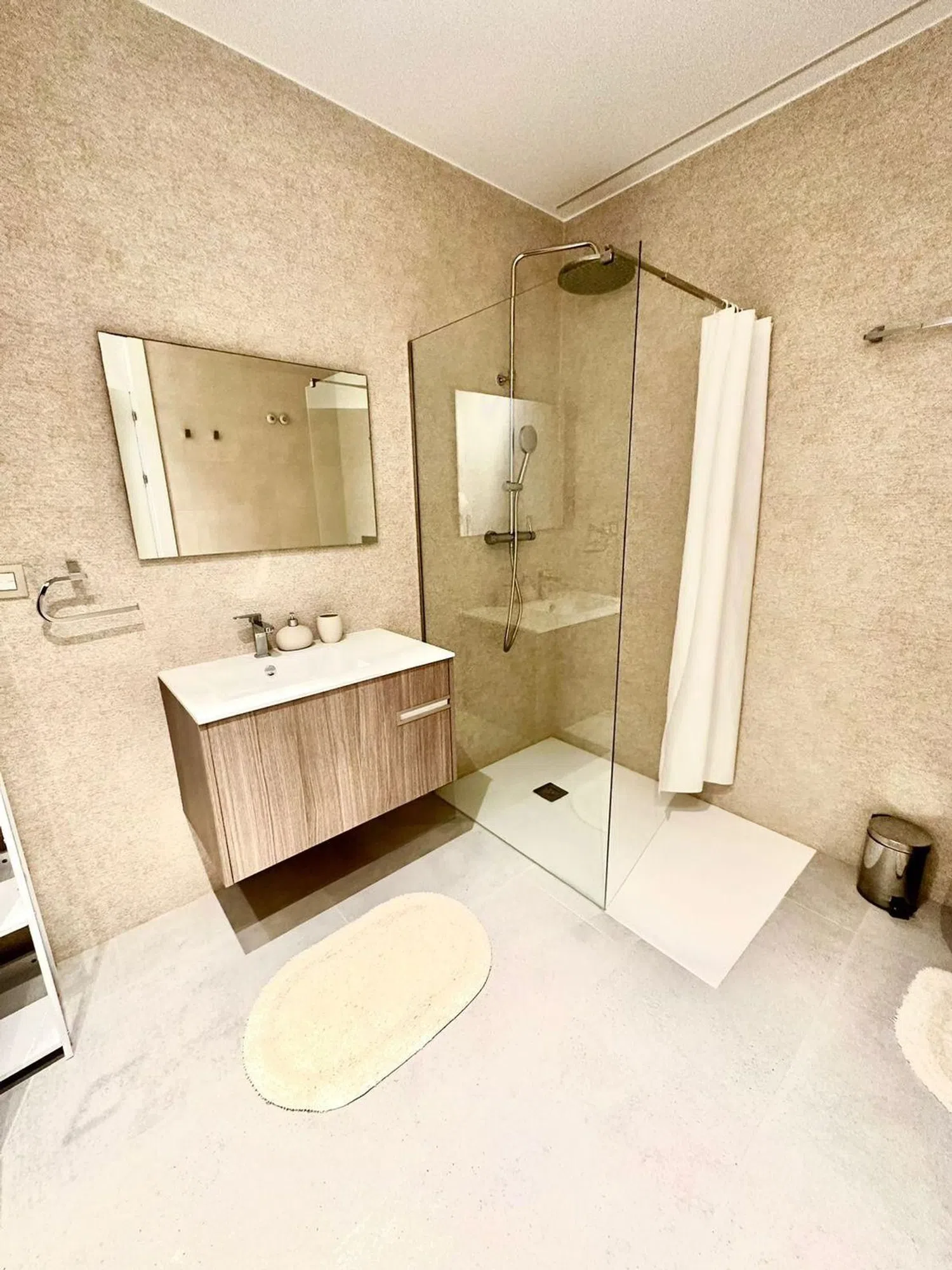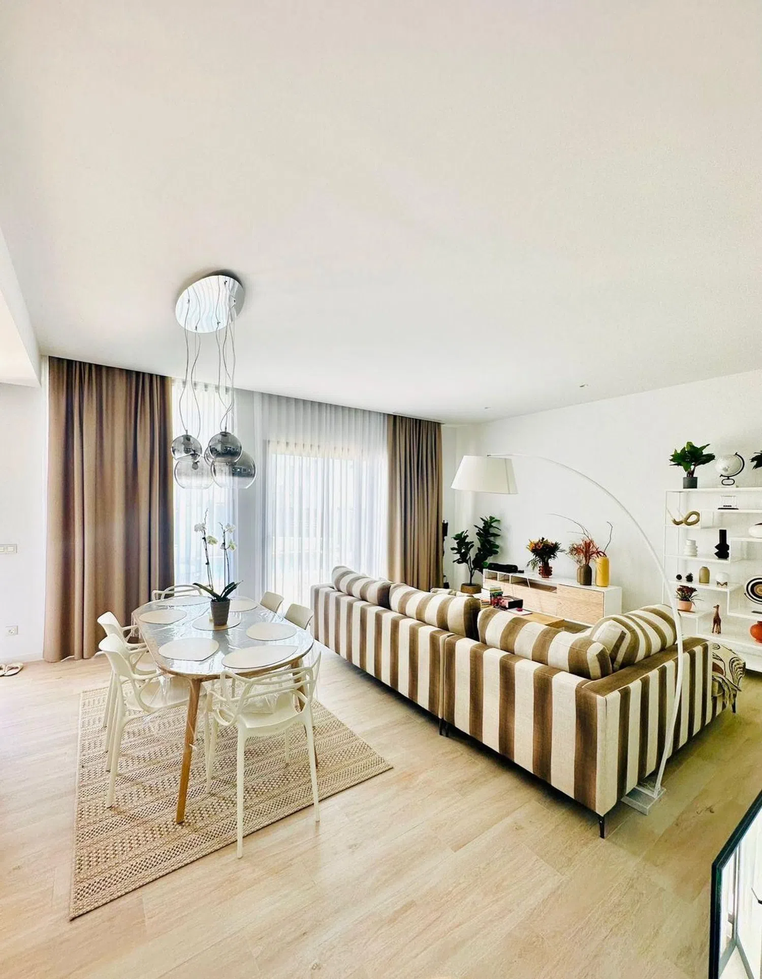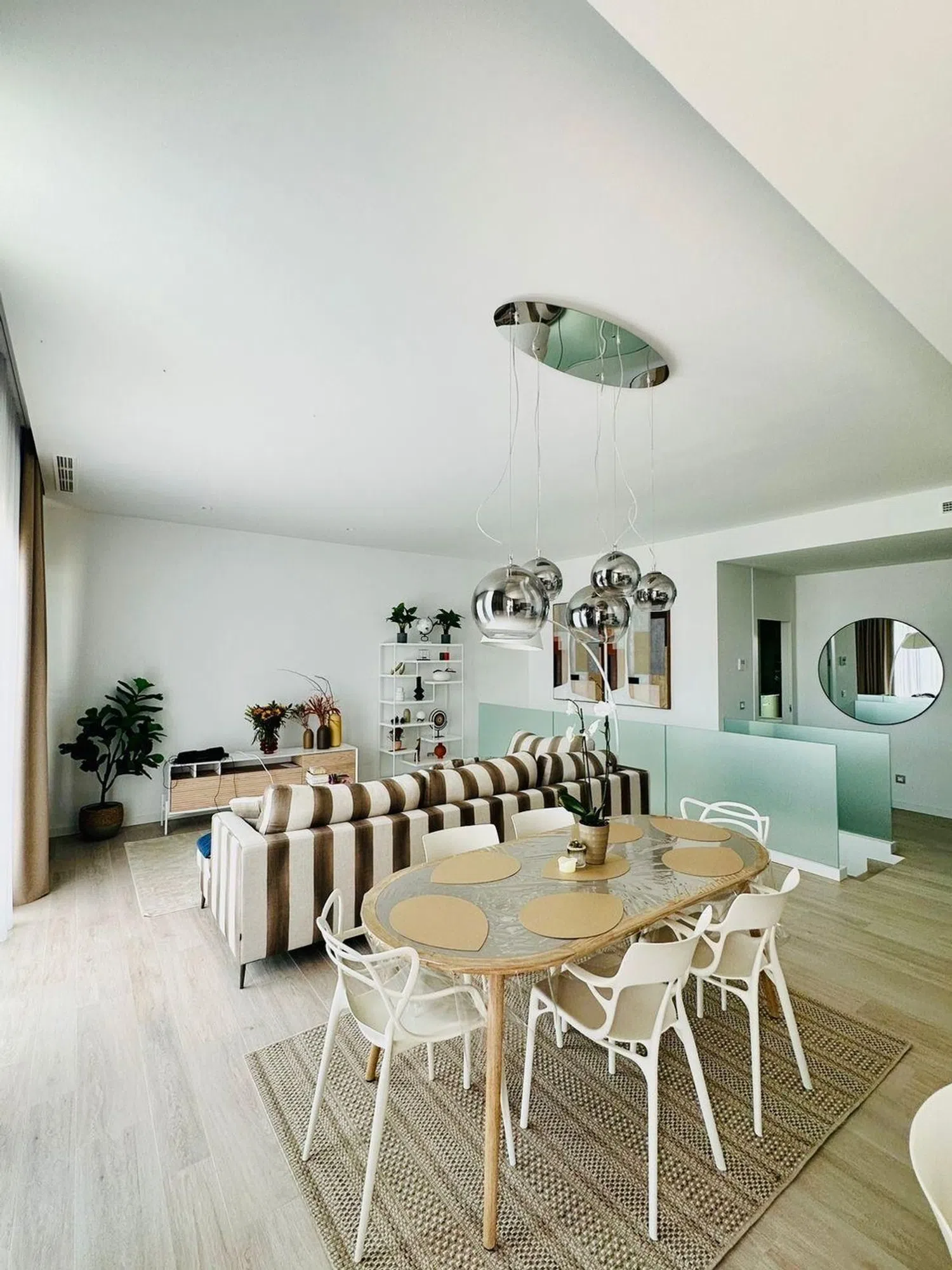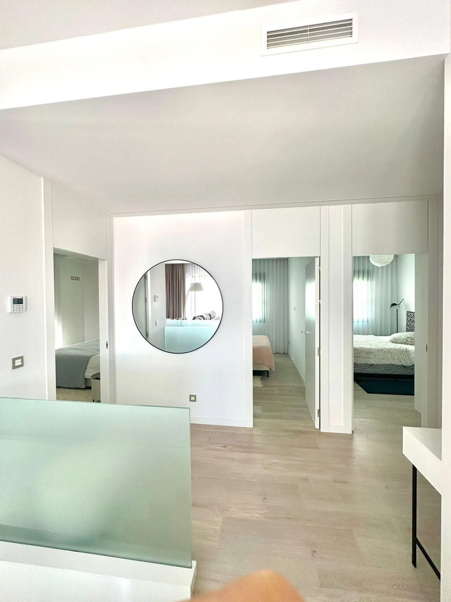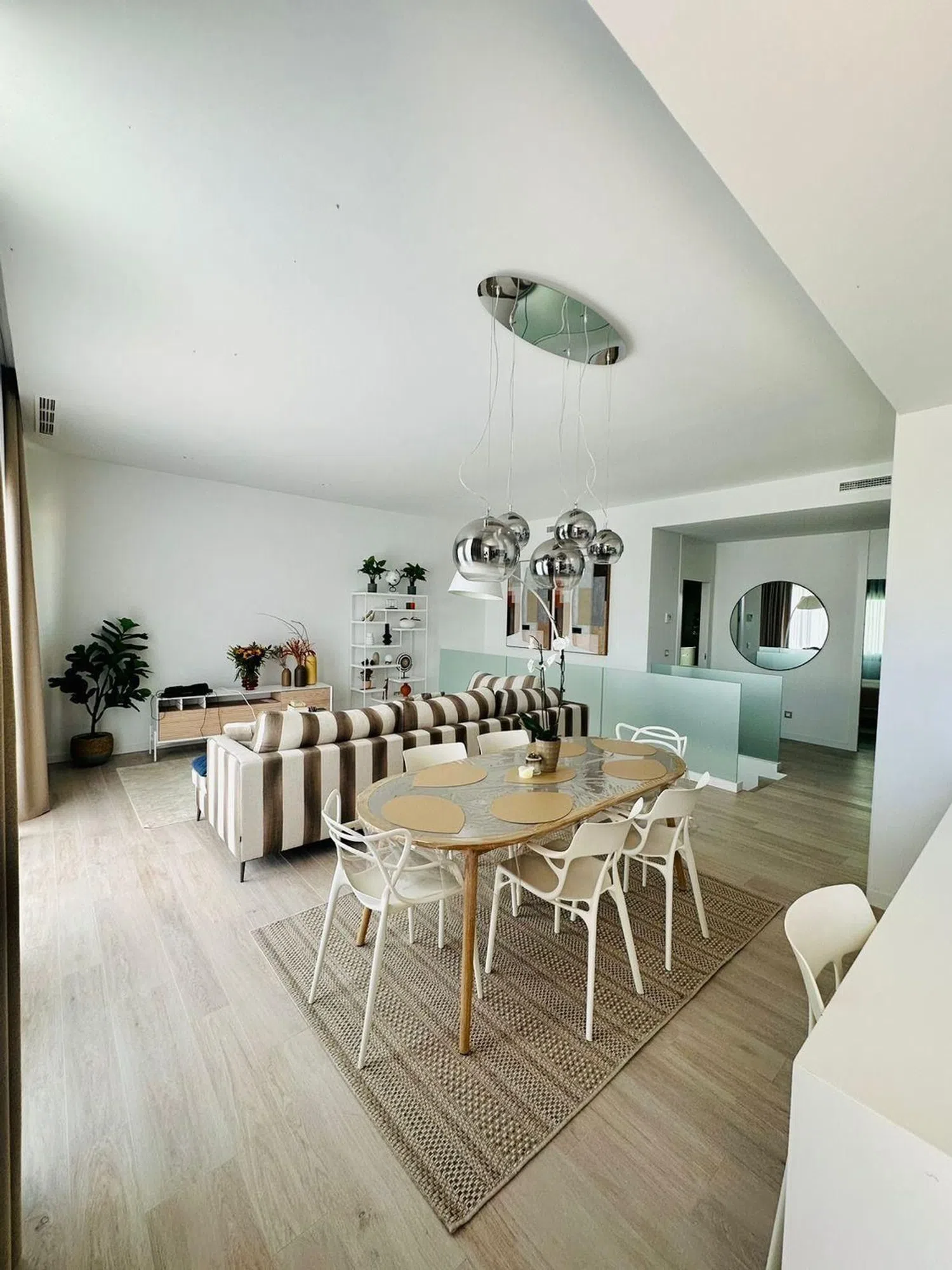 Die insgesamt fünf großzügigen Schlafzimmer und drei voll ausgestatteten Badezimmer ermöglichen komfortables Wohnen für Familien oder Gäste. Darüber hinaus sorgt die optimale Ausrichtung der Villa für lichtdurchflutete Räume und eine angenehme Atmosphäre.