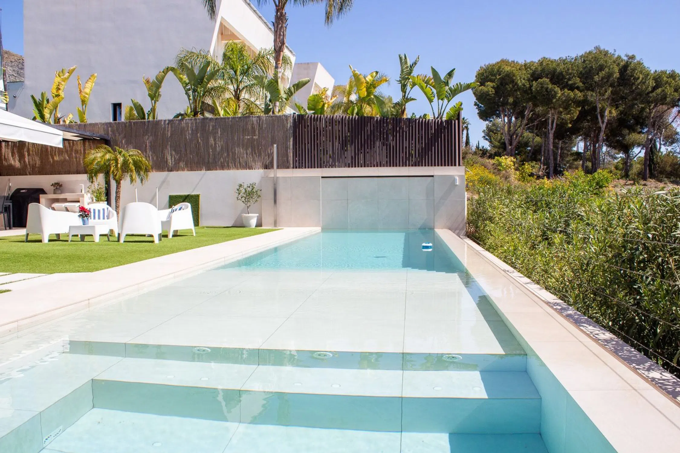 Presentamos esta villa independiente, concebida para quienes valoran el diseño contemporáneo, el confort y una calidad de vida superior. Emplazada sobre una parcela de 470 m², esta propiedad ofrece 425 m² construidos, distribuidos en varios niveles que maximizan la amplitud y la funcionalidad. Su distribución interior está pensada para satisfacer las más altas exigencias. Cuenta con tres espaciosas suites, cada una equipada con baño privado, lo que garantiza un ambiente íntimo y cómodo. La vivienda dispone de cuatro baños completos, todos ellos con calefacción por suelo radiante, una característica que aporta calidez y distinción. La cocina, moderna y completamente equipada, es un espacio ideal tanto para la vida cotidiana como para recibir invitados. A ello se suman una zona de despacho privada y un gimnasio propio, pensados para un estilo de vida activo y equilibrado. Los espacios se llenan de luz natural gracias a sus amplios ventanales, que además ofrecen vistas despejadas y una conexión fluida con las zonas exteriores. La sensación de bienestar se extiende al exterior, donde una piscina de 46 m², con sistema de electrólisis salina y jacuzzi incorporado, se convierte en el lugar perfecto para relajarse. El solárium, listo para instalar un jacuzzi adicional, y la terraza con zona de barbacoa completan un entorno ideal para disfrutar del aire libre con total privacidad. En términos de tecnología y confort, la vivienda está equipada con un avanzado sistema domótico, que facilita la gestión integral del hogar, desde la climatización hasta la seguridad. Dispone también de aire acondicionado con funciones de frío y calor, garantizando una temperatura ideal en cualquier época del año. El garaje cerrado y el espacio extra para estacionamiento exterior completan una propuesta que combina practicidad con exclusividad. Esta propiedad no solo ofrece un hogar, sino un estilo de vida. Un refugio moderno y elegante donde cada detalle ha sido diseñado para proporcionar una experiencia residencial inigualable. Clima: El clima en la Costa Blanca, a menudo considerado como el mejor de Europa, hace posible un estilo de vida muy sociable y saludable, al aire libre, marcado por completas instalaciones deportivas y de ocio, con ciudades turísticas, excitantes y cosmopolitas, que destacan por la prestación de servicios máxima categoría, algunos de ellos exclusivos, considerados de auténtico lujo. Todos ellos destinados a un cliente exigente, que busca calidad y cercanía La Costa Blanca cuenta con más de 300 días de sol al año. Un paraíso con excelentes conexiones a toda Europa. El Aeropuerto de Alicante-Elche cuenta con unas modernas instalaciones y con un fácil y cómodo acceso desde cualquier punto de la provincia. Entorno: La Costa Blanca sigue atrayendo a personas de toda Europa, y de otros lugares del mundo, porque ofrece una calidad de vida única en un hermoso entorno a orillas del mar Mediterráneo, rodeado de montañas y de una exuberante vegetación. Además de los campos de golf y los puertos deportivos que podrás disfrutar por toda la costa, la zona también ofrece la posibilidad de esquiar en la cercana Sierra Nevada, Javalambre o Valdelinares, unos paraísos para amantes de los deportes de invierno, con hermosos paisajes naturales. La Costa Blanca ofrece un estilo de vida singularmente rico, donde las mejores playas y calas del Mediterráneo se combinan con un interior repleto de montañas y pueblos que esconden cultura y monumentos históricos únicos en el mundo. Creemos que tu confianza merece un trato excepcional. Estaremos a tu lado siempre que nos necesites. Tenemos un regalo para ti: Nuestra inmobiliaria le ayudamos a convertir su nueva propiedad en.
