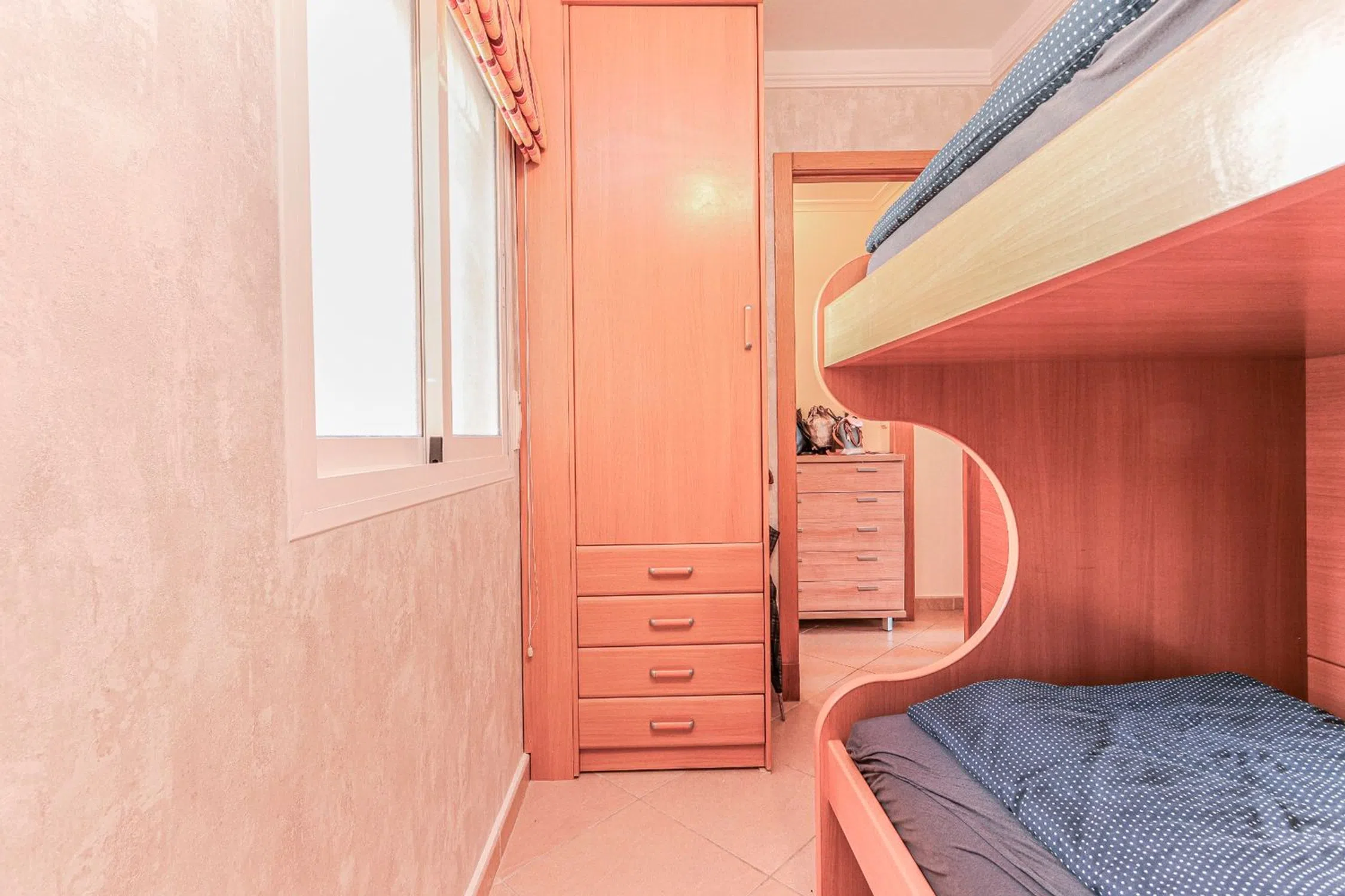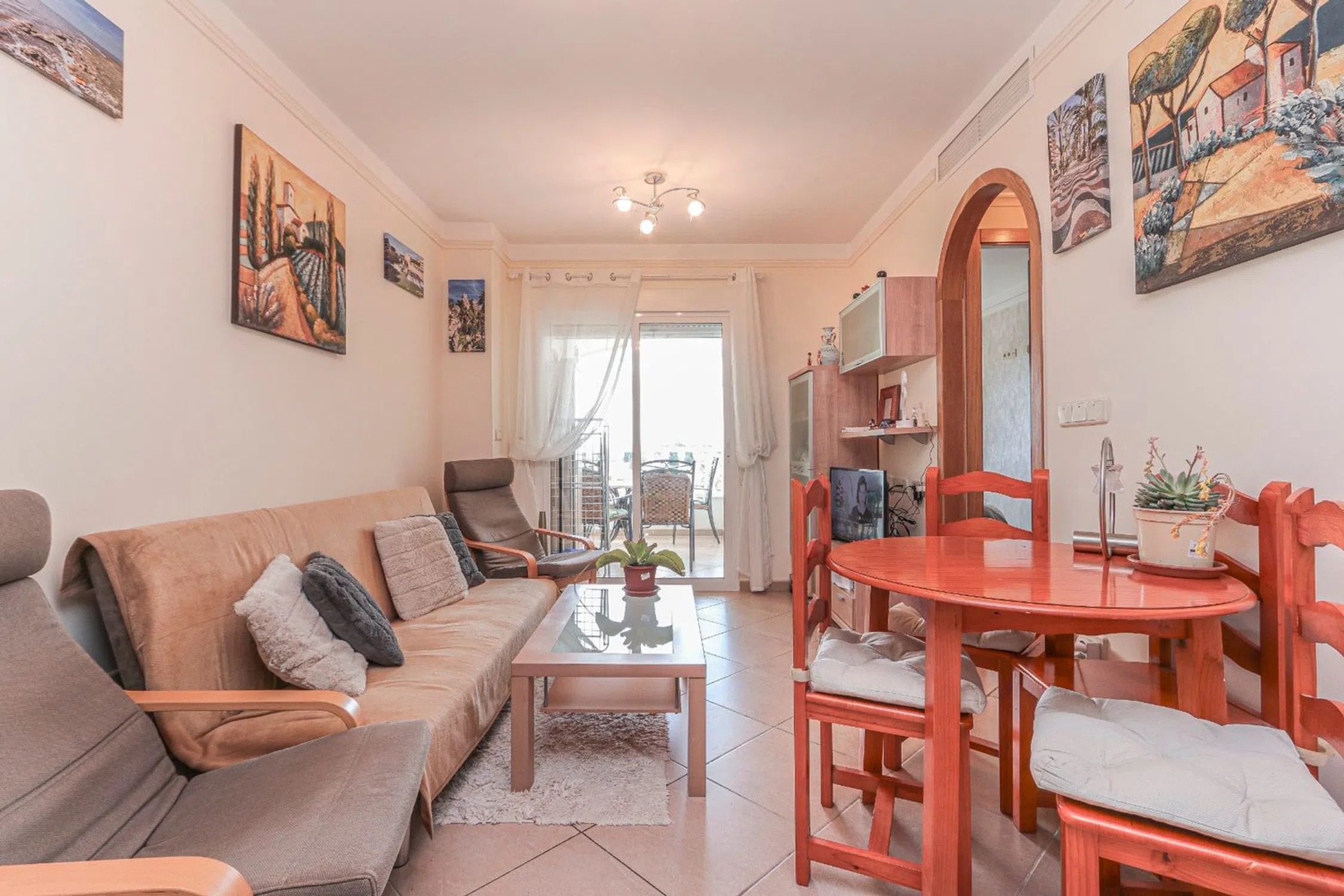 Fantástico apartamento de 2 dormitorios en Formentera del Segura. Este encantador apartamento de 2 dormitorios y 1 baño se encuentra en Formentera del Segura, a solo 12 minutos en coche de las playas de arena de Guardamar. La propiedad ofrece la comodidad perfecta para vivir durante todo el año. Cuenta con aire acondicionado central nuevo que puede regular la temperatura interior tanto en climas cálidos como fríos. Al entrar en el edificio, el ascensor nos lleva al apartamento, que está separado del pasillo. Al entrar en la propiedad, primero encontramos un recibidor con espacio para zapatos, chaquetas y bolsos; a la derecha, está el dormitorio de invitados con un armario grande y literas para dos personas. Pasando el pasillo, llegamos al salón y la cocina americana, que cuenta con todos los muebles de suelo y pared, y electrodomésticos instalados. El salón tiene espacio para un comedor, sofá, sillones y mueble de TV. Una puerta de cristal da acceso a la soleada terraza, que también es cómoda en días más fríos ya que está cubierta. Desde el salón se accede al dormitorio principal con un amplio armario y una cama doble familiar. Enfrente se encuentra el baño con ducha y lavabo individual. El mejor punto del edificio es la soleada piscina comunitaria en la azotea, con una zona comunitaria que incluye varias zonas de sombra para sentarse, comer, jugar, hacer barbacoas; la comunidad también instaló un baño para damas y caballeros por separado en la azotea. La propiedad tiene una hermosa vista verde abierta y también se puede ver el supermercado más cercano desde la terraza. El colegio público, el centro deportivo y la plaza principal están a pocos minutos a pie, al igual que el nuevo carril bici y el gimnasio público al aire libre. Los municipios más cercanos son Ciudad Quesada, Rojales y Benijófar. El apartamento y su edificio son muy seguros, cerrados a personas ajenas a la comunidad. Es la mejor solución para familias que deseen vivir allí todo el año o para inversores que buscan una propiedad para alquilar durante todo el año. Gastos de comunidad: 156 € / 3 meses.