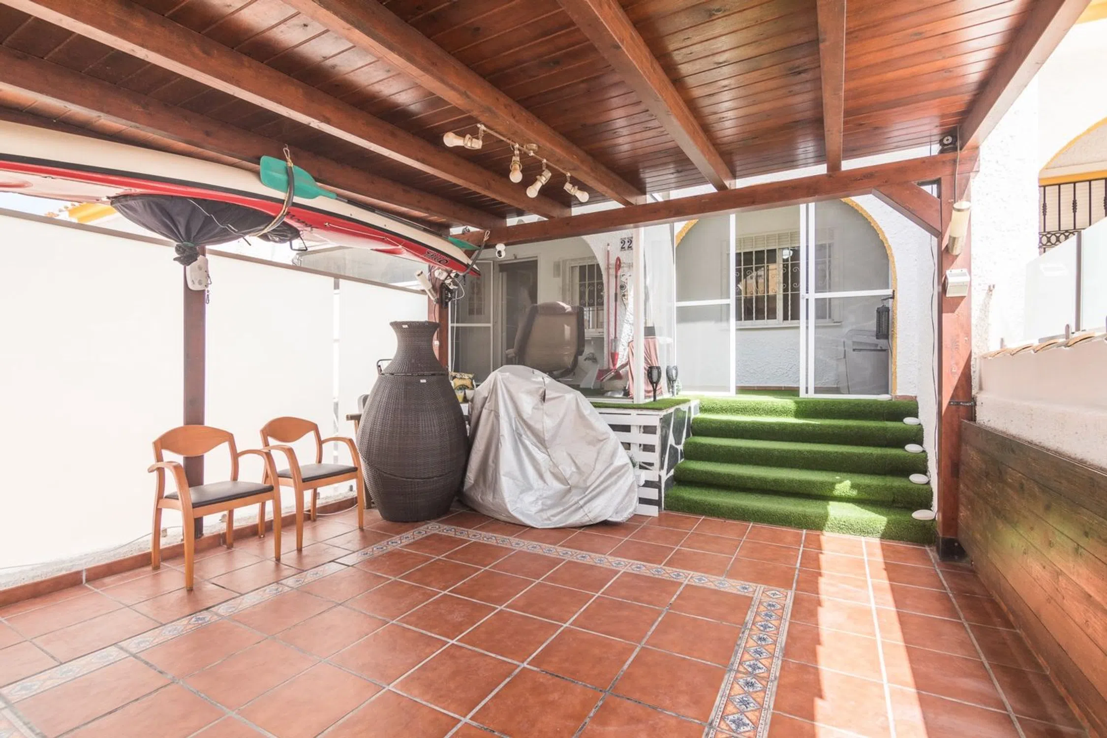 Estupendo bungalow adosado en Gran Alacant, una zona residencial muy valorada por su tranquilidad, servicios y excelente ubicación. A tan solo 10 minutos del Aeropuerto Internacional de Alicante-Elche y a unos 15 minutos del centro de Alicante, esta vivienda representa una magnífica oportunidad tanto como residencia habitual, segunda vivienda o inversión para alquiler turístico. La propiedad cuenta con 110 m² construidos y 100 m² útiles, distribuidos en dos plantas, incluyendo un amplio sótano reformado ideal como sala de estar adicional, despacho, zona de invitados o área de ocio. La vivienda dispone de 3 dormitorios (dos dobles y uno individual), un baño completo y un aseo. En la planta principal se encuentra un luminoso salón-comedor con acceso directo a la terraza, una cocina equipada y moderna, y uno de los baños. La joya de la vivienda es sin duda su terraza de 25 m², con orientación oeste, perfecta para organizar comidas al aire libre o relajarse en un entorno privado. Entre sus calidades destacan el suelo de tarima flotante con calefacción por suelo radiante, pintura lisa, puertas de madera, ventanas de aluminio, armarios empotrados, aire acondicionado y calefacción eléctrica individual. La vivienda se vende semi amueblada y en buen estado de conservación, lista para entrar a vivir. Se encuentra en una urbanización privada que ofrece zonas comunes ajardinadas muy bien cuidadas y una gran piscina comunitaria, ideales para disfrutar del clima mediterráneo durante todo el año. Construida en 2005, esta vivienda combina espacio, calidad, comodidad y ubicación en una de las áreas con mayor proyección de la Costa Blanca. Gran Alacant ofrece centros comerciales, supermercados, colegios, transporte público, rutas de senderismo y acceso directo a las playas de arena fina del Carabassí y las dunas protegidas del Clot de Galvany.