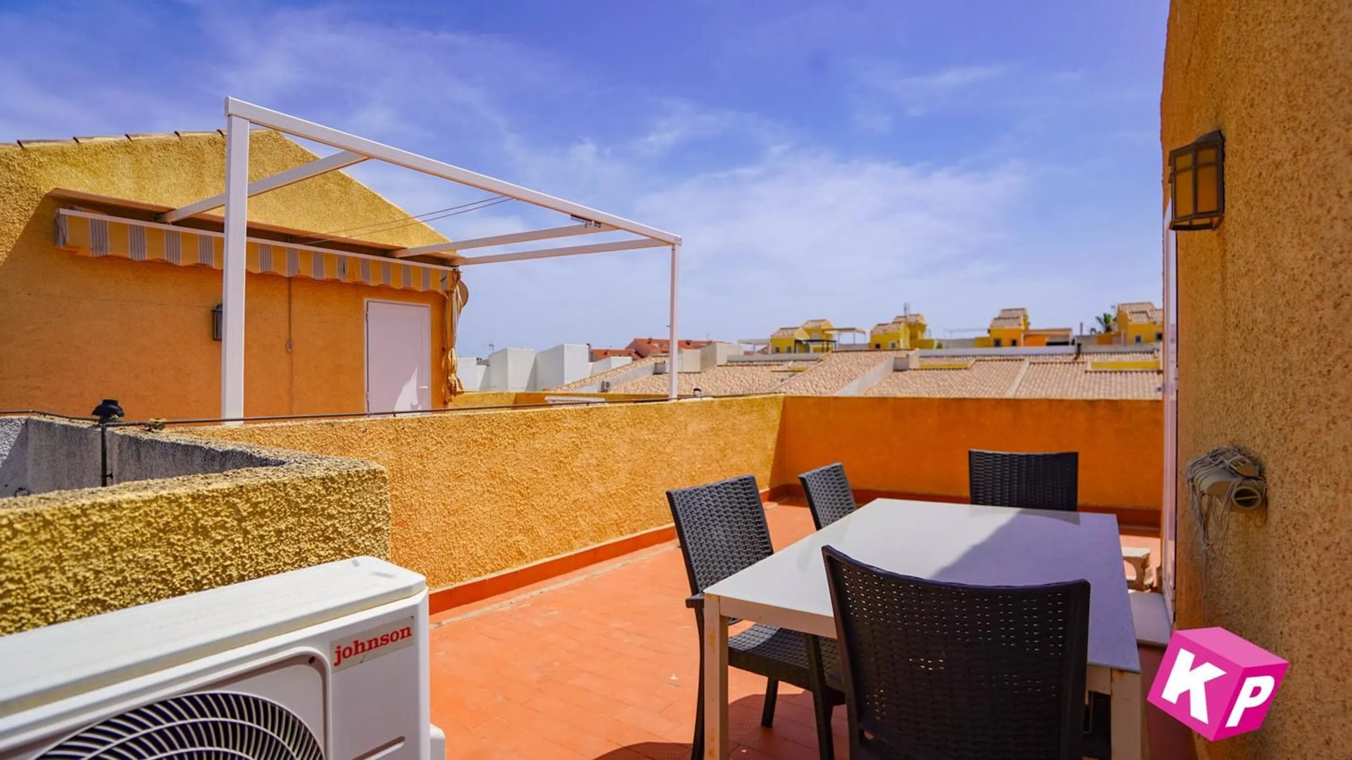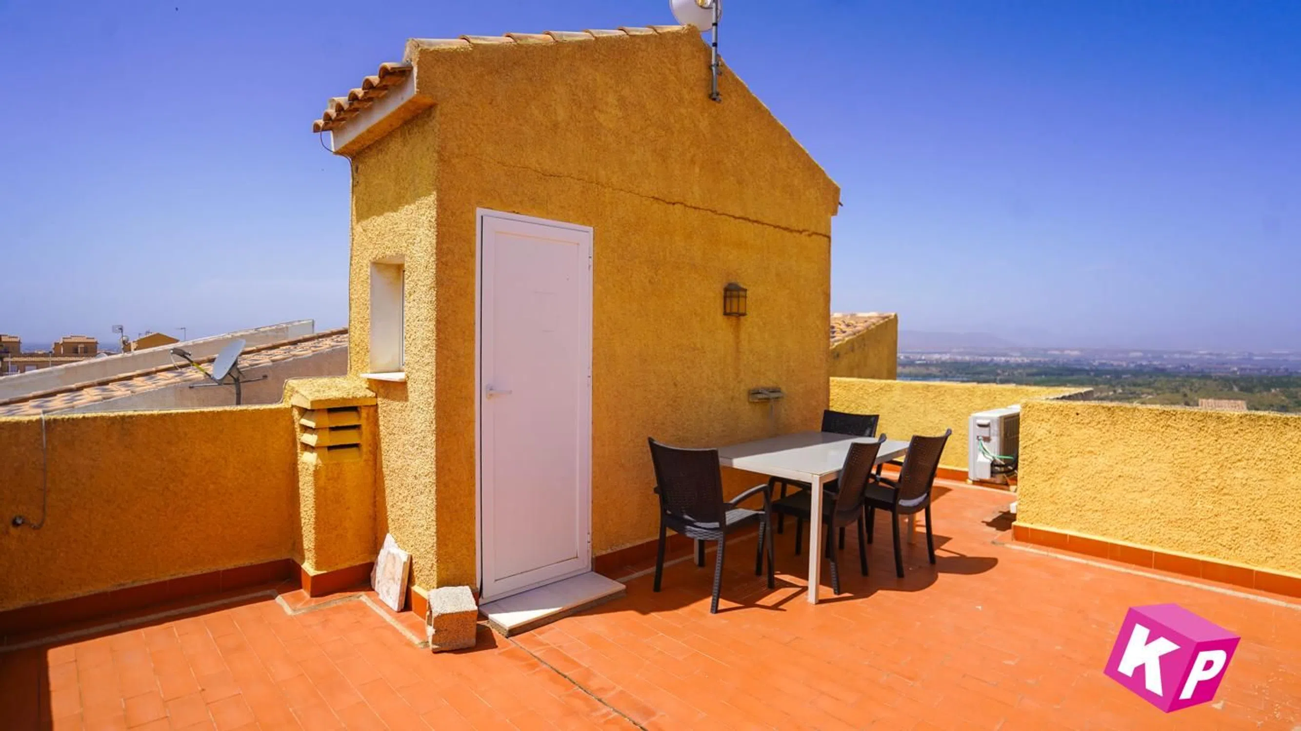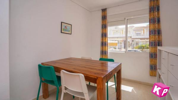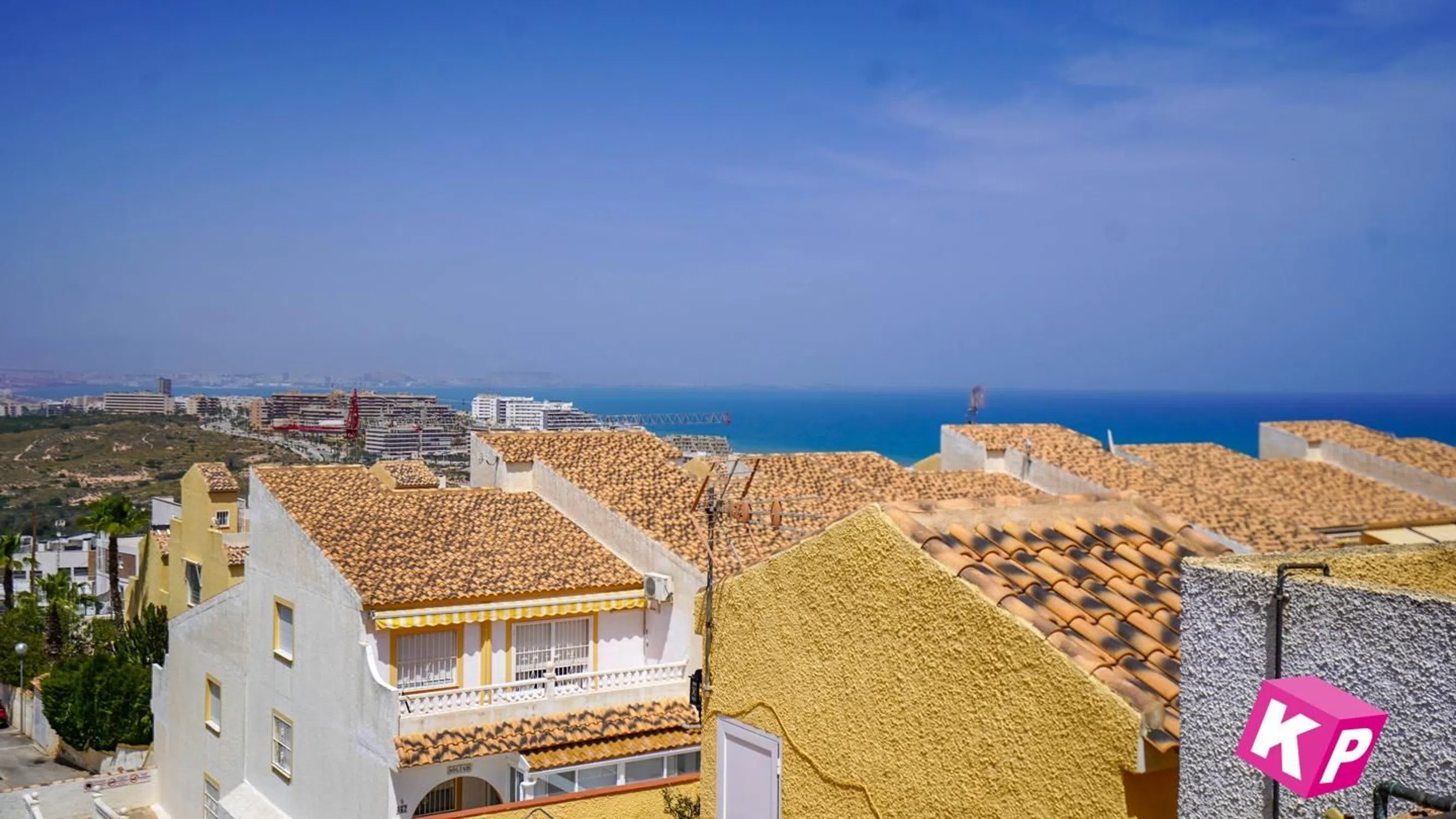 Bienvenidos a la parte alta de Gran Alacant y a la urbanización Monte y mar. Esta casa adosada se distribuye en tres niveles con sótano incluido, además de una azotea privada desde donde se tiene una vista fantástica de la ciudad de Alicante, el mar Mediterráneo y las montañas al fondo. La planta baja consta de una terraza orientada al sur, cocina, baño completo con ducha, salón y comedor. En la planta superior encontramos un baño con bañera y dos dormitorios, uno de ellos con balcón orientado al sur y espacio para una mesa pequeña y dos sillas. Encima de esta planta tenemos un solárium con mucho espacio para tomar el sol, etc. En el sótano hay posibilidad de hacer dos dormitorios más y un salón. A unos 50 metros se encuentra la piscina comunitaria. Gran Alacant es un núcleo de población perteneciente al municipio de Santa Pola. Aquí viven unos 12.000 residentes permanentes, por lo que están abiertos todo el año las tiendas y restaurantes. También hay un autobús local que te lleva a la playa llamada Carabassí, que es una playa con bandera azul, es decir, la calidad más alta posible. Además, hay autobuses que te llevan a Alicante, Elche y Santa Pola. En el centro comercial de Gran Alacant hay varias tiendas, restaurantes, bares y karaoke. Para más información, por favor, ponte en contacto con nosotros en.