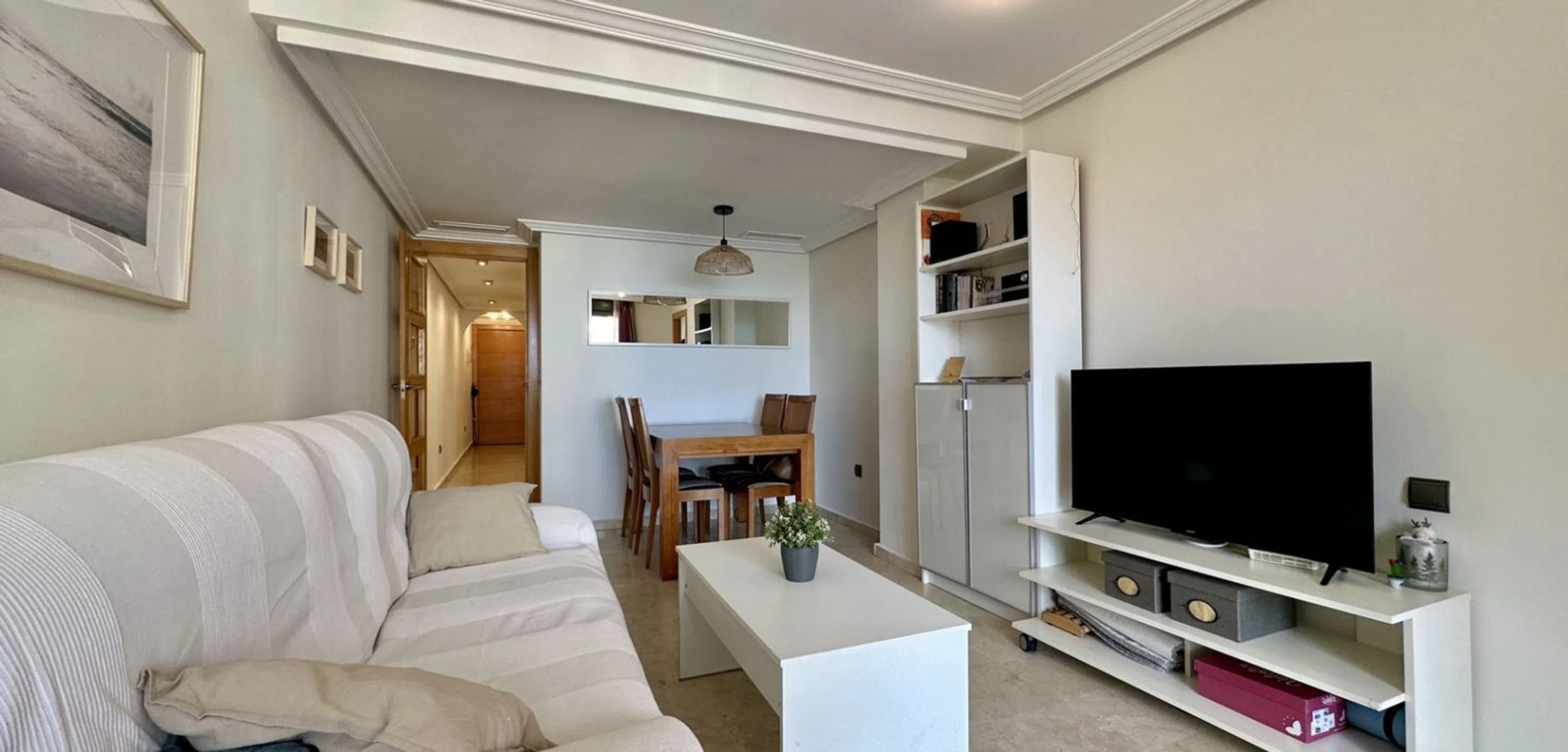 Descubra este elegante apartamento de 2 dormitorios y 2 baños, ubicado a solo 100 metros del mar en una de las zonas más cotizadas de Guardamar del Segura. Situado en una segunda planta con ascensor y con orientación este, el apartamento disfruta de vistas al mar desde el salón y el dormitorio principal, ofreciendo abundante luz natural y una agradable brisa mediterránea durante todo el día. Con una superficie construida de 78 m², el apartamento cuenta con un amplio salón, una moderna cocina totalmente equipada con encimeras de Silestone, placa de inducción, lavavajillas, sistema de ósmosis inversa, campana extractora de frente plano y una gran despensa con iluminación automática. Dispone de dos dormitorios, ambos con armarios empotrados, y dos baños: uno en suite con bañera y el otro con columna de ducha de hidromasaje y grifería termostática, ambos con puertas correderas para una óptima funcionalidad. Entre sus extras se incluyen iluminación LED en toda la propiedad, aire acondicionado central actualizado, colchones nuevos, televisores LED, acceso a internet, caja fuerte, toldo recién renovado, un amplio trastero y plaza de aparcamiento incluida. Rodeada de restaurantes, supermercados y colegios, esta casa es ideal como primera residencia, segunda residencia o inversión, ya que combina comodidad, una ubicación privilegiada y el auténtico estilo de vida mediterráneo de la Costa Blanca. Clima: El clima en la Costa Blanca, a menudo considerado como el mejor de Europa, hace posible un estilo de vida muy sociable y saludable, al aire libre, marcado por completas instalaciones deportivas y de ocio, con ciudades turísticas, excitantes y cosmopolitas, que destacan por la prestación de servicios máxima categoría, algunos de ellos exclusivos, considerados de auténtico lujo. Todos ellos destinados a un cliente exigente, que busca calidad y cercanía. La Costa Blanca cuenta con más de 300 días de sol al año. Un paraíso con excelentes conexiones a toda Europa. El Aeropuerto de Alicante-Elche cuenta con unas modernas instalaciones y con un fácil y cómodo acceso desde cualquier punto de la provincia. Entorno: La Costa Blanca sigue atrayendo a personas de toda Europa, y de otros lugares del mundo, porque ofrece una calidad de vida única en un hermoso entorno a orillas del mar Mediterráneo, rodeado de montañas y de una exuberante vegetación. Además de los campos de golf y los puertos deportivos que podrás disfrutar por toda la costa, la zona también ofrece la posibilidad de esquiar en la cercana Sierra Nevada, Javalambre o Valdelinares, unos paraísos para amantes de los deportes de invierno, con hermosos paisajes naturales. La Costa Blanca ofrece un estilo de vida singularmente rico, donde las mejores playas y calas del Mediterráneo se combinan con un interior repleto de montañas y pueblos que esconden cultura y monumentos históricos únicos en el mundo. Tenemos un regalo para ti: Desde nuestra inmobiliaria le ayudamos a convertir su nueva propiedad en la casa de tus sueños, regalándole una visita técnica del departamento de diseño a la vivienda, donde nuestro equipo técnico le aconsejará sobre las posibilidades de mejora y decoración de su propiedad. Totalmente gratis! IMPORTANTE! Recuerde que nuestros servicios NO incrementan NUNCA el precio final de la vivienda a nuestros clientes. Nuestra experiencia en el sector nos convertirá en su aliado, un asesor de confianza que le ayudará a elegir la casa de sus sueños en la mejor zona, informarle sobre el precio de mercado de los inmuebles en los que.