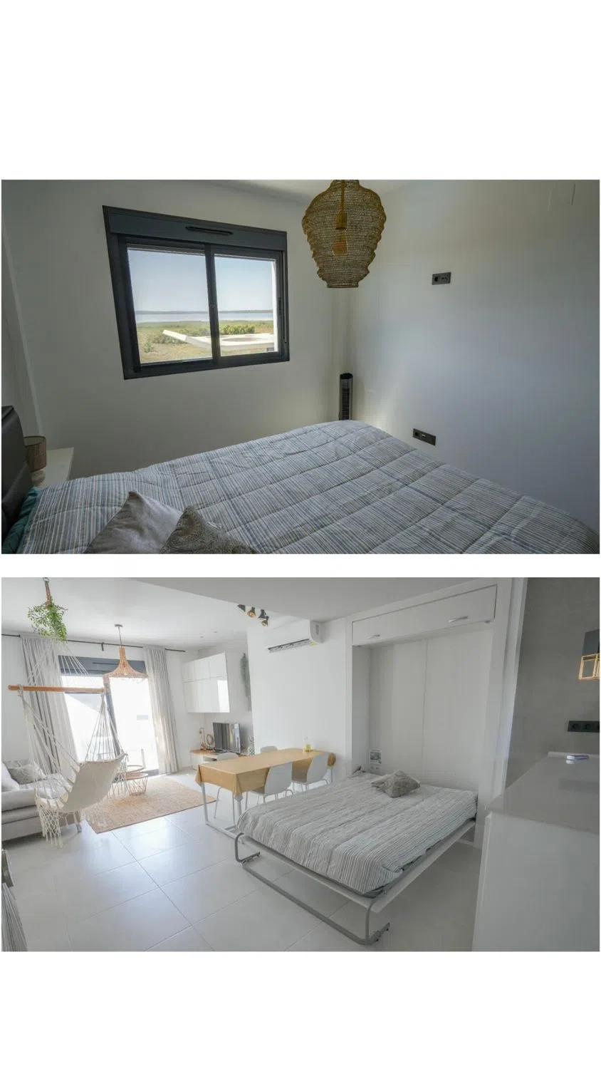 Acogedor apartamento con vistas directas al mar salado. Tiene una gran terraza de 52m2 con toldo. Armarios empotrados en las habitaciones y en las terrazas. Aire acondicionado y calefacción. 1 dormitorio y un armario/cama empotrado en el salón. Parking subterráneo privado. Ascensor. Las magníficas vistas son un punto a favor, aquí no se va a construir más.