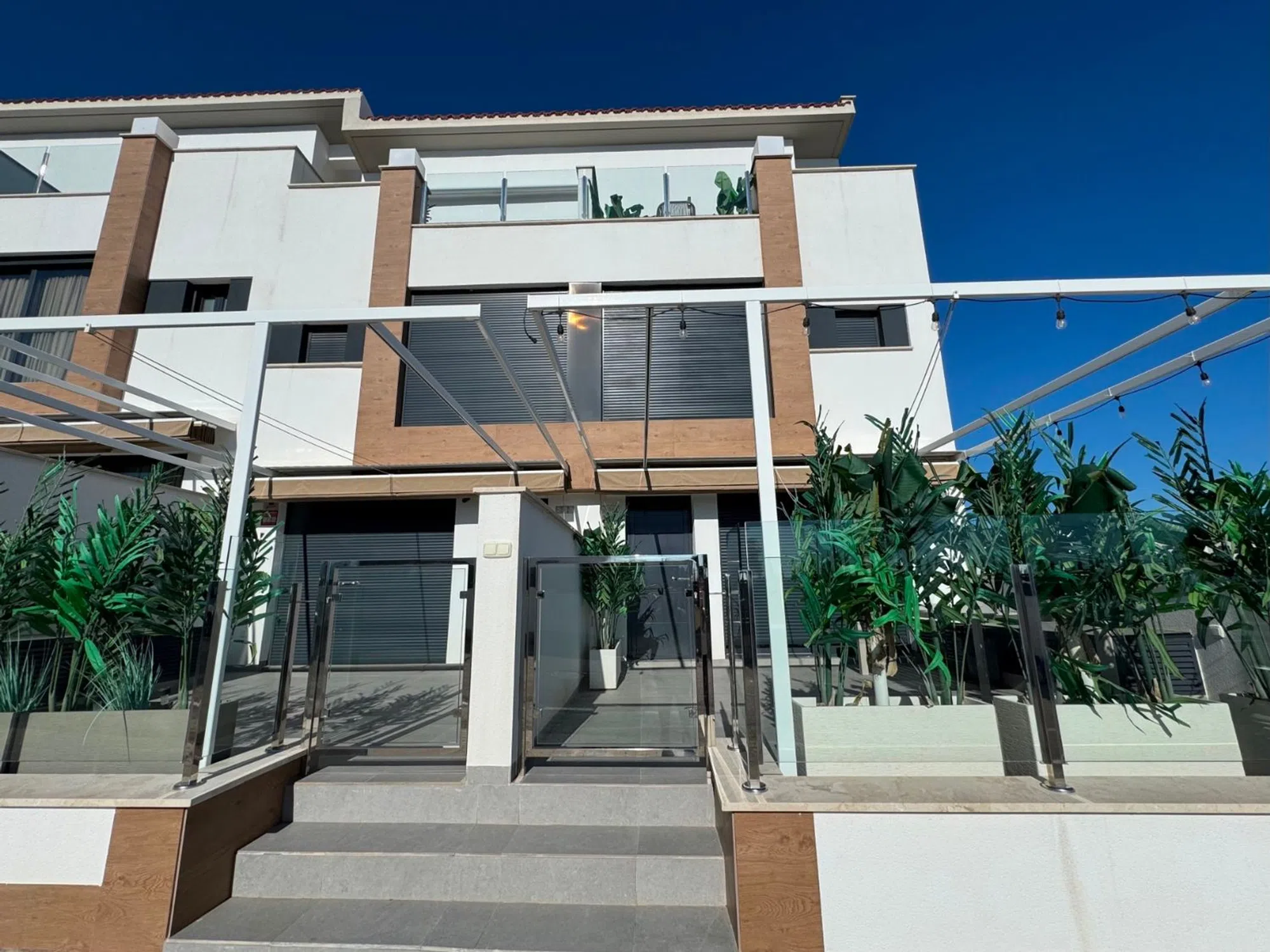 Tenemos el placer de presentar esta encantadora vivienda semiadosada de esquina en Guardamar del Segura, que ofrece unas vistas espectaculares al mar. La casa se encuentra en perfecto estado, prácticamente como nueva. Al llegar, un pequeño jardín soleado te da la bienvenida, ideal para disfrutar de la tranquilidad y del sol. Al entrar en la vivienda, encontrarás un luminoso salón-comedor con cocina abierta, un aseo y un patio exterior, perfecto para momentos al aire libre. En la segunda planta se sitúan un dormitorio individual, un dormitorio principal y un baño completo. La tercera planta alberga otro dormitorio principal con baño propio, así como una terraza con impresionantes vistas, que da acceso al solárium. La vivienda cuenta además con una planta adicional que puede destinarse a un apartamento independiente o al uso que desees, ofreciendo una espaciosa habitación y un garaje privado. Esta propiedad combina elegancia, confort y vistas inigualables, convirtiéndose en una oportunidad única para quienes buscan calidad de vida junto al mar.