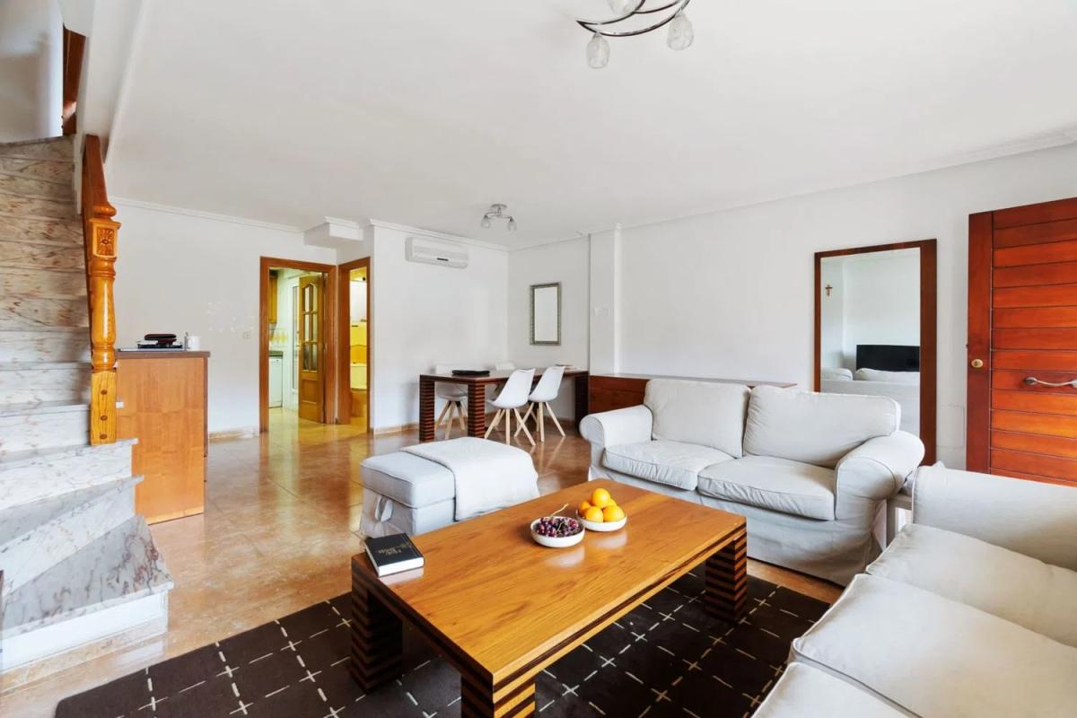 Bienvenido a esta fantástica casa adosada en el corazón del encantador Guardamar de Segura. Esta propiedad ofrece una combinación inmejorable de espacio, comodidad y proximidad tanto al mar como a las comodidades de la ciudad. La cercanía a la playa de arena dorada de Guardamar de Segura permite disfrutar de largos paseos junto al mar, darse un baño matutino o relajarse en uno de los acogedores restaurantes de playa. La tranquila zona residencial cuenta con todo lo necesario: supermercados, restaurantes, colegios, centro de salud y buenas comunicaciones. El Parque Reina Sofía, con sus amplias zonas verdes y áreas de juegos infantiles, se encuentra muy cerca, convirtiéndolo en un lugar ideal para familias con niños. En la planta de entrada nos recibe una bonita terraza con espacio para sentarse. Al ingresar, encontramos un generoso salón con suficiente espacio tanto para un sofá como para muebles de comedor. La cocina, grande y en ángulo, ofrece amplios espacios de almacenamiento y superficie de trabajo, perfecta para los amantes de la cocina. Junto a la cocina hay una práctica estancia con lavadero y un baño con ducha en esta planta. En la planta superior se encuentran tres luminosos dormitorios, uno de ellos con acceso a un amplio balcón orientado al oeste. Desde aquí se puede disfrutar del sol de la tarde y de una hermosa vista del Parque Reina Sofía. En esta planta también se encuentra un baño moderno con ducha y un WC independiente. En la planta más alta nos espera un oasis privado: un amplio dormitorio principal con baño en suite con bañera y acceso directo a una encantadora terraza en la azotea. Aquí podrá relajarse bajo el sol o disfrutar de cálidas noches con vistas al mar y al entorno. En el piso inferior a la entrada hay dos dormitorios adicionales, una sala de estar y un baño con bañera, ideal para invitados o adolescentes. En la planta más baja de la casa se encuentra un amplio garaje de 43 m² con puerta automática, lo que garantiza un estacionamiento seguro y cómodo. Además, la casa cuenta con un sistema de filtrado de agua para toda la propiedad y toldos eléctricos. Esta casa adosada con construcción de edificios de alta calidades, es perfecta para una familia numerosa que busca espacio y privacidad, o para aquellos que desean tener espacio adicional para invitados. Dispone de excelentes opciones de almacenamiento en todos los niveles, con numerosos armarios empotrados. Con múltiples plantas, amplios espacios y fantásticas terrazas, esta casa adosada ofrece un estilo de vida inmejorable en una de las zonas más cotizadas de la Costa Blanca. Contáctenos en Bjurfors si desea obtener más información o reservar una visita.