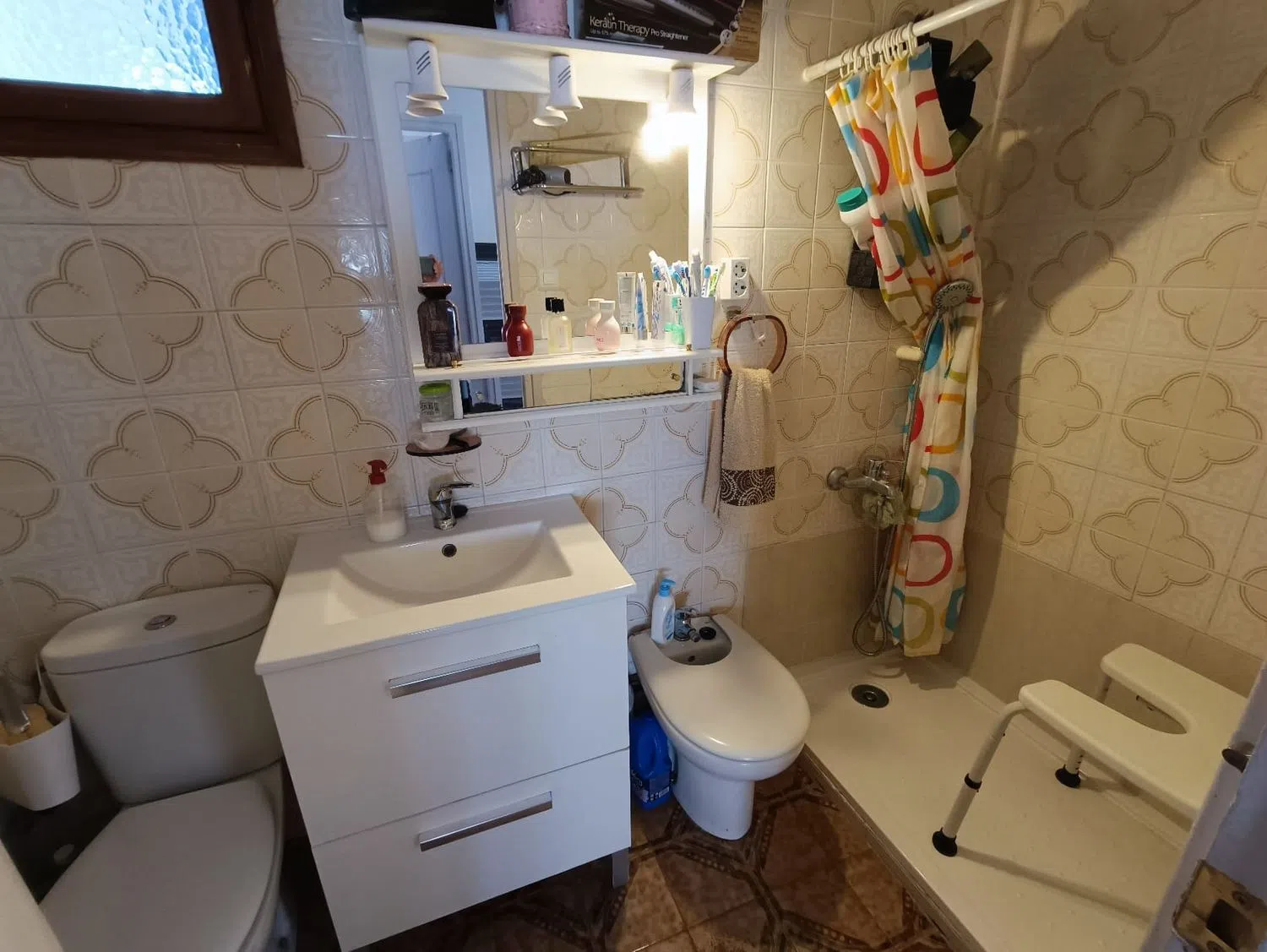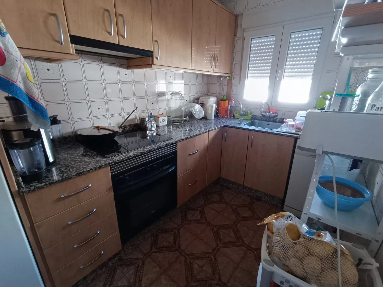 Die Immobilie befindet sich in einem hervorragenden Zustand und verteilt sich auf zwei Ebenen. Im ersten Stock finden Sie vier Schlafzimmer, von denen eines Zugang zu einem großzügigen Balkon hat. Die Küche ist geräumig und auch das Wohnzimmer bietet viel Platz. Im Erdgeschoss gibt es zusätzlich zwei weitere Schlafzimmer, eines davon ohne Fenster, das sich hervorragend als Werkstatt oder Büro nutzen lässt, wenn es nicht als Schlafzimmer dient. Besonders auffällig ist die Helligkeit der Wohnung, da alle Räume bis auf eines im Erdgeschoss Fenster zum Außenbereich haben. Sie verfügt über ein komplettes Badezimmer und zusätzlich über ein Gäste-WC.