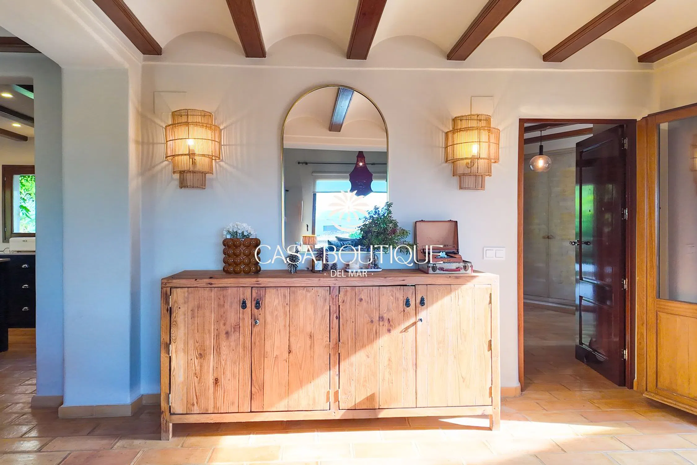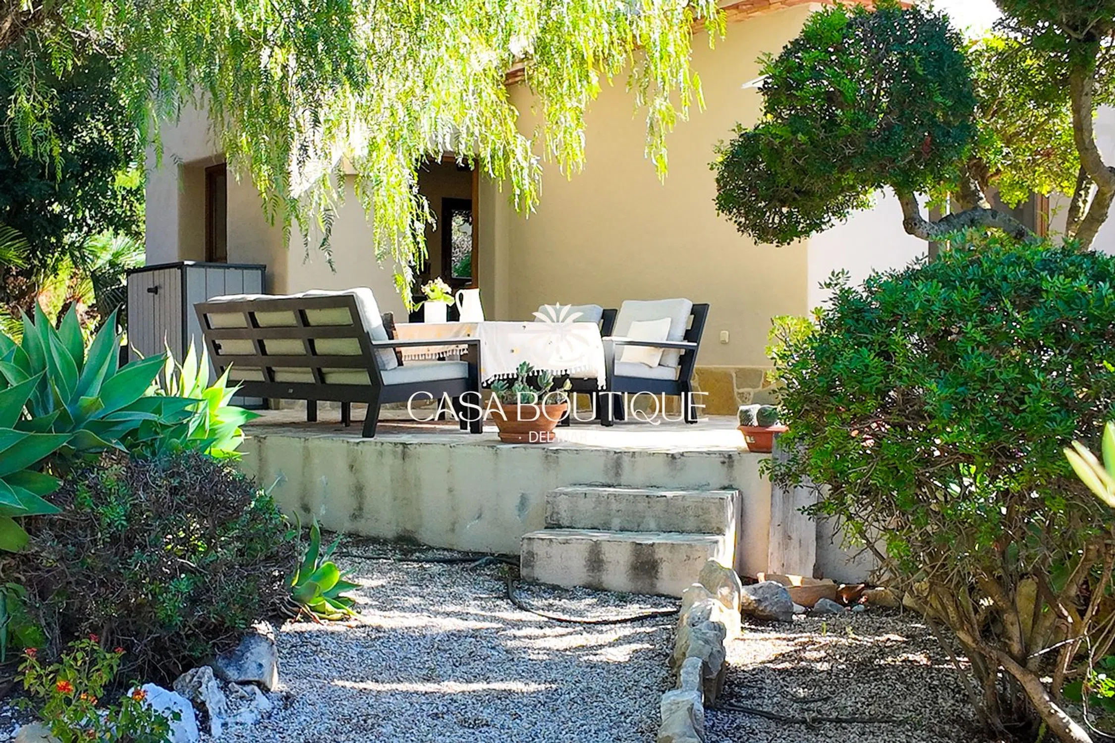 Les presentamos Casa Estrella, una magnífica villa de inspiración mediterránea, idealmente situada al pie del Montgó en la codiciada zona de Montgó‑Ermita. Renovada con sensibilidad, la propiedad combina el encanto de las fincas tradicionales de la Costa Blanca con prestaciones contemporáneas para ofrecer confort, intimidad y vistas extraordinarias. Ubicación y entorno Situada en un sector residencial tranquilo y muy cotizado, Casa Estrella disfruta de un entorno natural privilegiado a pocos minutos del centro histórico de Jávea, del puerto y de las playas. La proximidad a los municipios de Jesús Pobre y El Poble Nou de Benitatxell aporta encanto local, buena oferta gastronómica y servicios de calidad. El microclima excepcional de la región permite disfrutar de los espacios exteriores durante todo el año. Arquitectura y rehabilitación La villa, construida en 1978 y recientemente renovada, respeta la arquitectura local: suelos de terracota, vigas de madera vista, grandes ventanales y estancias muy luminosas. Las reformas se han realizado respetando los volúmenes originales e integrando equipamientos modernos para un confort óptimo. Planta baja Amplio vestíbulo que conduce a un salón‑comedor luminoso, en conexión directa con un patio interior y la tradicional naya. Cocina abierta, completamente equipada, diseñada para combinar estética y funcionalidad. Dormitorio en suite en planta baja, aseo de cortesía y lavadero. Dormitorio adicional con acceso independiente y baño privado (ideal para invitados o personal). Planta superior Suite principal con baño privado, vestidor, estancia adicional que puede usarse como despacho y terraza con bonitas vistas abiertas. Dormitorio adicional con acceso privado y baño en suite, que refuerza la versatilidad de la vivienda. Nivel piscina / exteriores Dormitorio con baño en suite que se abre directamente a los espacios exteriores y a la piscina — ideal para el estilo de vida mediterráneo. Piscina privada de 10 x 5 m integrada en un jardín consolidado. Espacios exteriores El jardín, cuidadosamente ajardinado, es un auténtico oasis mediterráneo: terrazas orientadas al sur para un óptimo soleamiento, zonas sombreadas para el descanso, setos de cipreses que garantizan privacidad, riego automático y una dependencia independiente que completa la oferta exterior. Equipamientos y confort Calefacción central moderna (radiadores de condensación) para confort y eficiencia energética. Suelo radiante eléctrico en cuatro cuartos de baño. Aire acondicionado reversible para el confort estival. Depósito de agua de 1.000 litros. Carport cubierto para dos vehículos y espacio de aparcamiento adicional. Se ofrece sin amueblar, aunque esto puede negociarse. Puntos fuertes Ubicación privilegiada al pie del Montgó con vistas despejadas. Excelente fusión entre carácter tradicional y prestaciones contemporáneas. Distribución adaptada a familias y a la recepción de invitados (con opciones de acceso independiente). Amplios exteriores, piscina y precioso jardín mantenido con riego automático. Oportunidad poco frecuente como vivienda principal de alto standing o como segunda residencia exclusiva en la Costa Blanca. Casa Estrella representa la expresión refinada del estilo de vida mediterráneo: autenticidad, confort y situación de excepción. Es una propiedad diseñada para seducir a compradores exigentes que buscan una casa cálida, funcional e idealmente situada al pie del Montgó. Casa Boutique del Mar — Jávea está a su disposición para visitas profesionales y para facilitar el dossier completo.