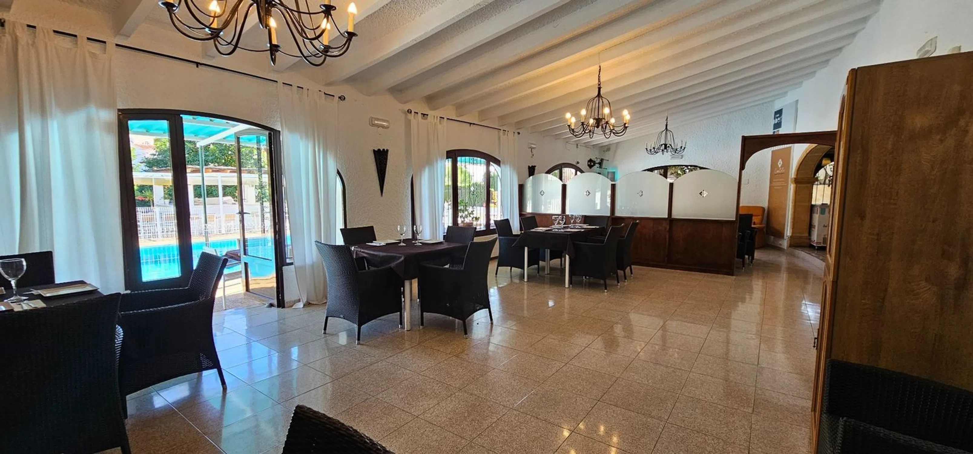 TRASPASO Restaurante regentado por el mismo propietario desde hace 28 años. Está muy bien gestionado y cuenta con todo el equipamiento necesario, tanto en la cocina como en la barra, así como en el comedor y en la terraza. UNA Herramienta de trabajo muy fina. Una gran chimenea crea un ambiente acogedor en el amplio comedor con vistas a la piscina y al jardín. Tiene una capacidad aproximada de 300 cubiertos entre el interior y el exterior. Amplia terraza con piscina y jardín mediterráneo decorado con magníficas palmeras y buganvillas de color rojo vivo. Los jueves hay música en directo y, en temporada, los sábados hasta la medianoche. El acceso es muy fácil en una zona residencial popular y muy frecuentada. [IW].