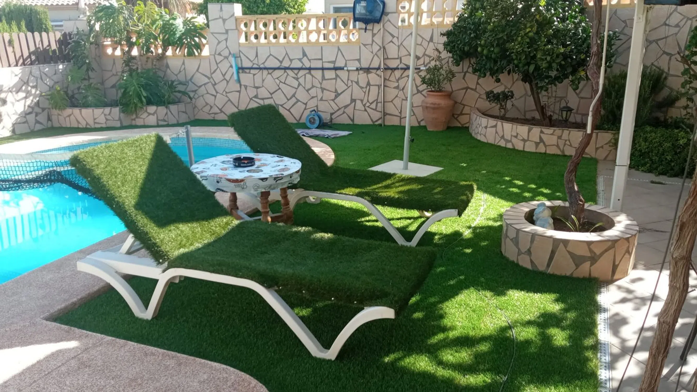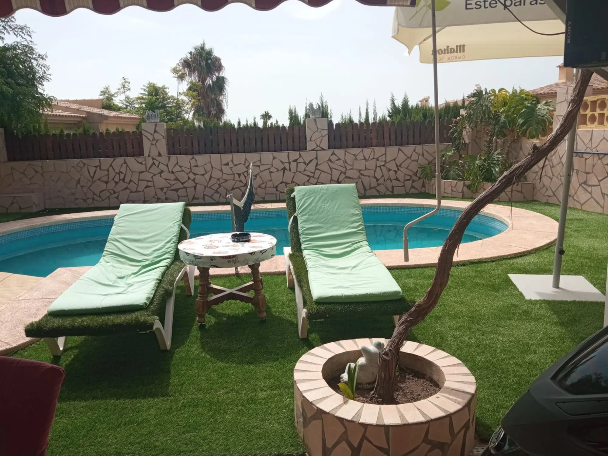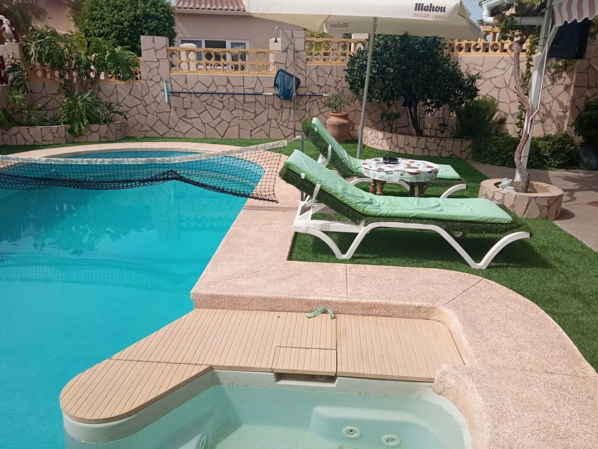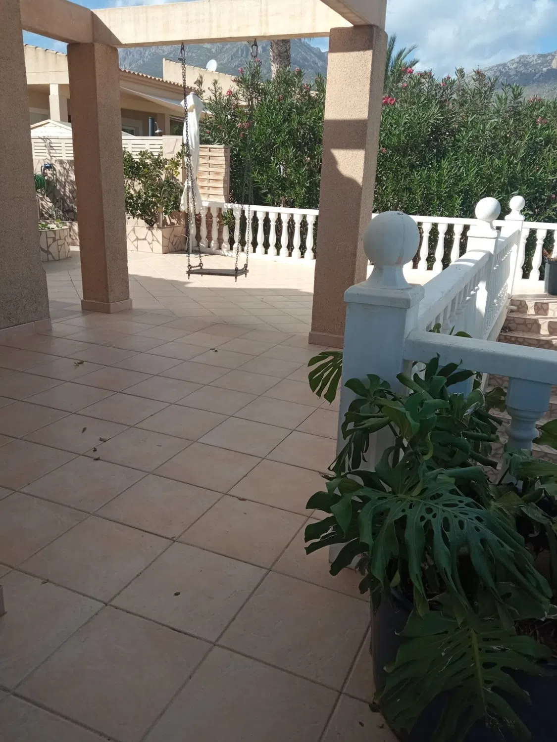Se vende espectacular chalet independiente en la Nucia, a 5 kilómetros de Benidorm. El chalet tiene una vivienda con unos 186 metros útiles, construido en una parcela de 500 metros aproximadamente. Además de la vivienda tiene varias terrazas (una de ellas acristalada), piscina privada, pequeño huerto, varios árboles frutales, zona de barbacoa, garaje para dos coches, gimnasio, trastero, taller, leñero. La vivienda (en una sola planta) tiene un gran salón de unos 40 metros, una cocina grande para comer de unos 22 metros, dos baños (uno de ellos dentro del dormitorio principal), un dormitorio principal muy grande, de unos 30 metros y otros dos dormitorios dobles. Suelos de mármol en salón y zonas comunes y de gres en cocina y dormitorios, consolas de aire acondicionado (frío/calor) en salón y todos los dormitorios, armarios empotrados grandes en los tres dormitorios. Se vende totalmente amueblado, si así lo desean los compradores. Además de la piscina privada, como el chalet está dentro de una urbanización, también dispone de zonas comunes con otra piscina comunitaria. No lo dudes, si estás buscando una vivienda de estás características, y disfrutar del clima de benidorm durante todo el año, o por temporadas, llámanos y ven a verlo, te gustará.