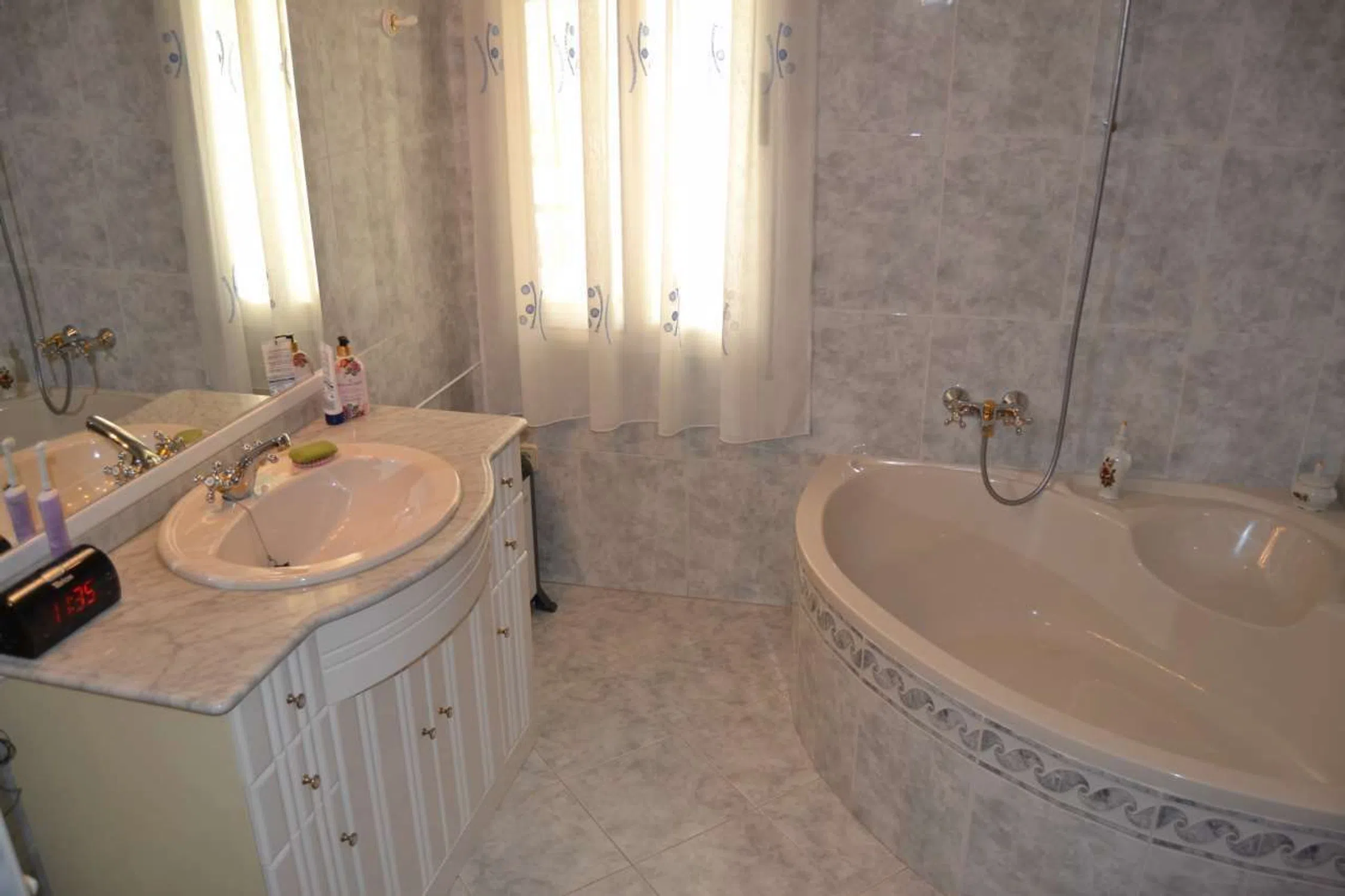 Esta gran villa se encuentra en una urbanización de clase alta de La Nucia, que se encuentra cerca de supermercados, restaurantes y la famosa escuela privada internacional Alians. Llegar a Benidorm, Alfaz del Pi, La Nucia, etc es muy fácil debido al hecho de la buena infraestructura. La Villa cuenta con jardines de fácil mantenimiento y tiene unas vistas espectaculares del skyline de Benidorm y la cordillera que rodea la Marina Baixa. Esta espaciosa casa tiene un montón de extras, como la gran sala en la planta baja que se utiliza como un gimnasio, pero fácilmente se puede convertir en un apartamento o en un cine, sala de juegos por separado, etc.