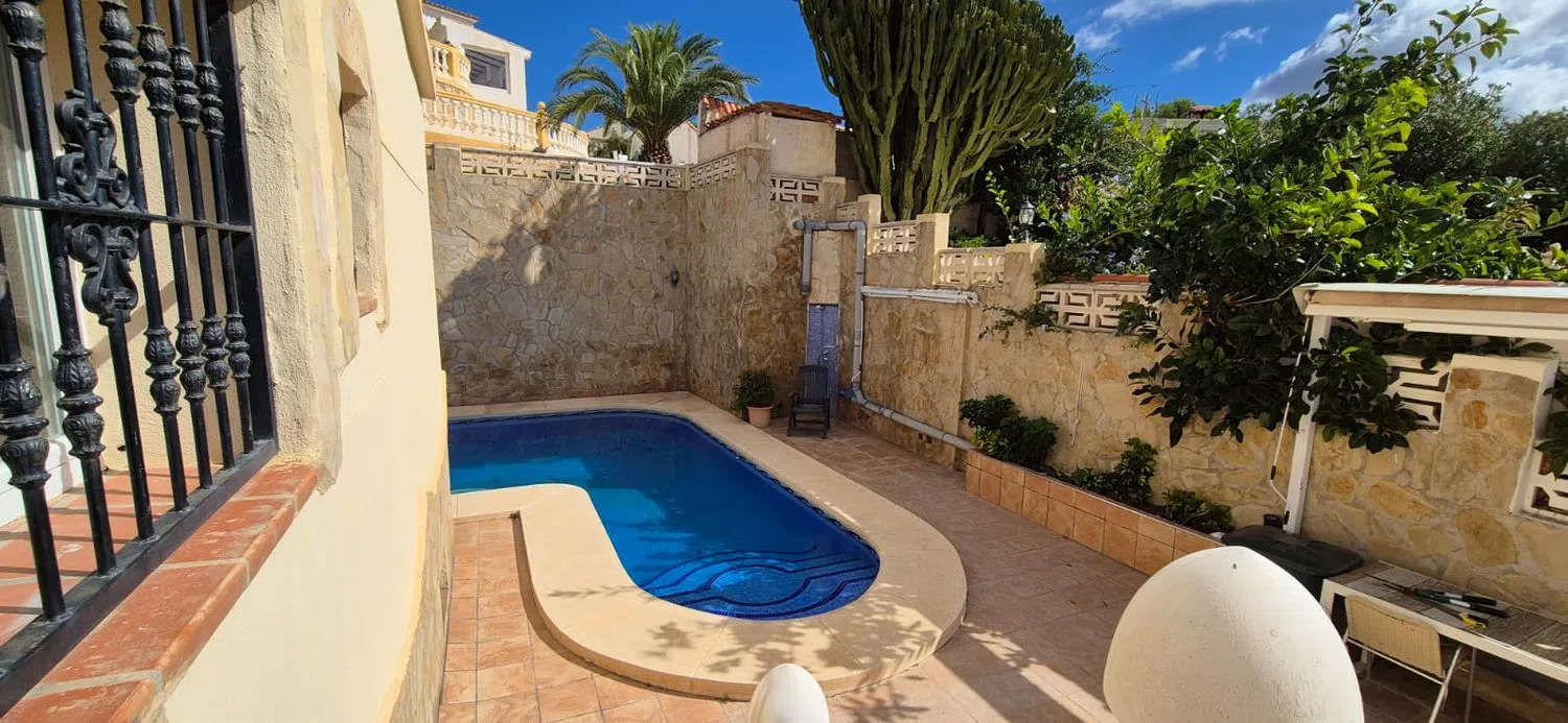 ***Posibilidad de alquiler con opción a compra. Contáctanos para más información. *** Este hermoso chalet independiente en venta en La Nucía ofrece una perfecta combinación de lujo y tranquilidad. Situado en una parcela de 350m², la propiedad cuenta con impresionantes vistas al mar y a la montaña, brindando paisajes espectaculares en cada rincón. El chalet cuenta con su propia piscina privada, ideal para disfrutar de los días soleados del Mediterráneo. También incluye una plaza de garaje, lo que garantiza comodidad y seguridad para tus vehículos. La propiedad se vende sin muebles, lo que te permite diseñar el interior de acuerdo con tu gusto personal. Su excelente ubicación ofrece un equilibrio perfecto entre la tranquilidad y la accesibilidad, siendo el hogar ideal para aquellos que buscan un refugio apacible sin estar lejos de las comodidades esenciales. Descripción de la zona: La Nucía La Nucía es un pintoresco pueblo situado entre el mar y las montañas en la provincia de Alicante, conocido por su ambiente tranquilo y su belleza escénica. La ubicación permite disfrutar de lo mejor de ambos mundos: las montañas de la Sierra Aitana por un lado y el Mar Mediterráneo por el otro. Además, en La Nucía puedes disfrutar de una gran variedad de actividades al aire libre, como senderismo y ciclismo en las rutas montañosas cercanas, o deportes acuáticos en las playas cercanas de Benidorm, que se encuentran a solo unos minutos en coche. La localidad también cuenta con centros deportivos modernos, campos de golf, y está bien conectada con los pueblos cercanos y ciudades como Alicante, a unos 45 minutos en coche. Gracias a su clima templado y soleado durante todo el año, La Nucía es un lugar perfecto tanto para residir de manera permanente como para disfrutar de una segunda vivienda.