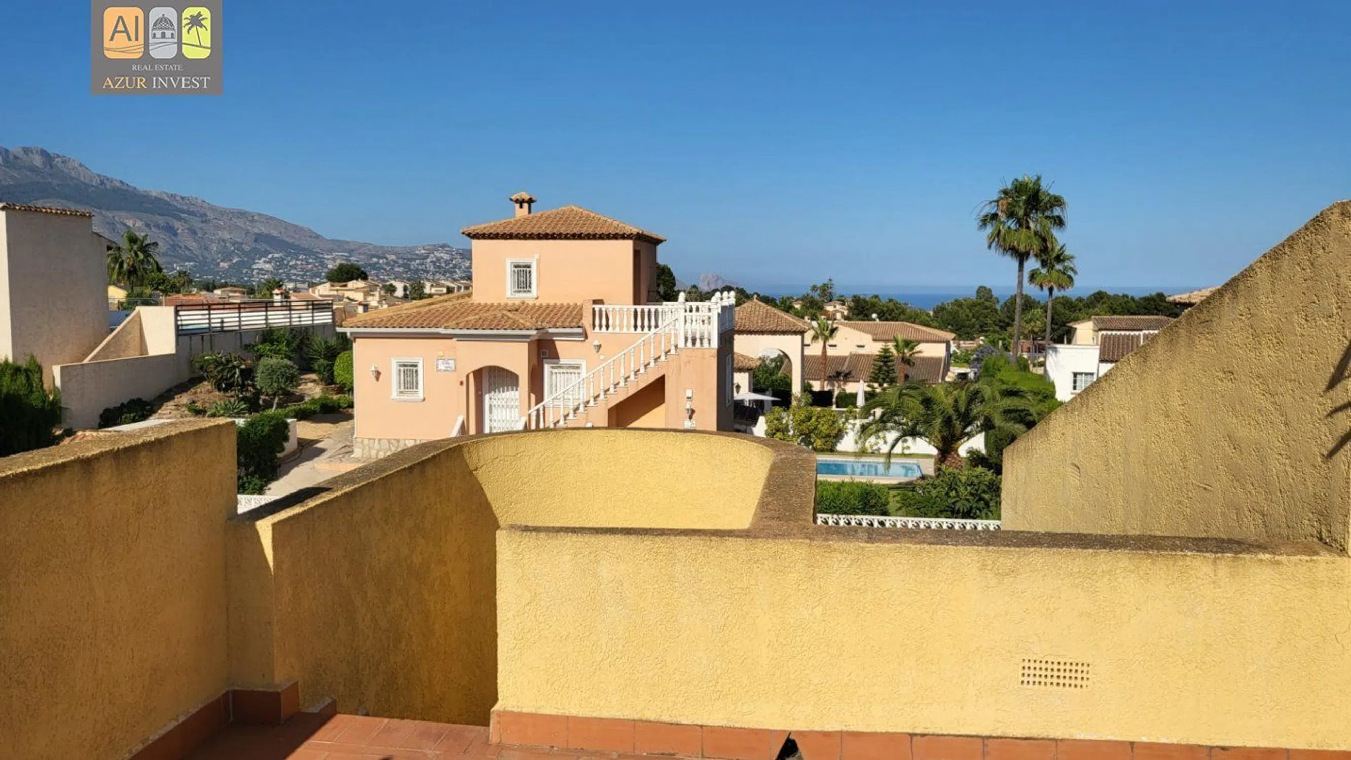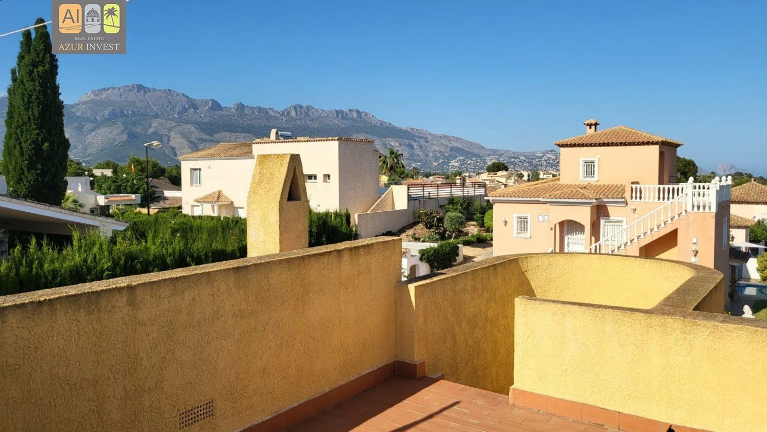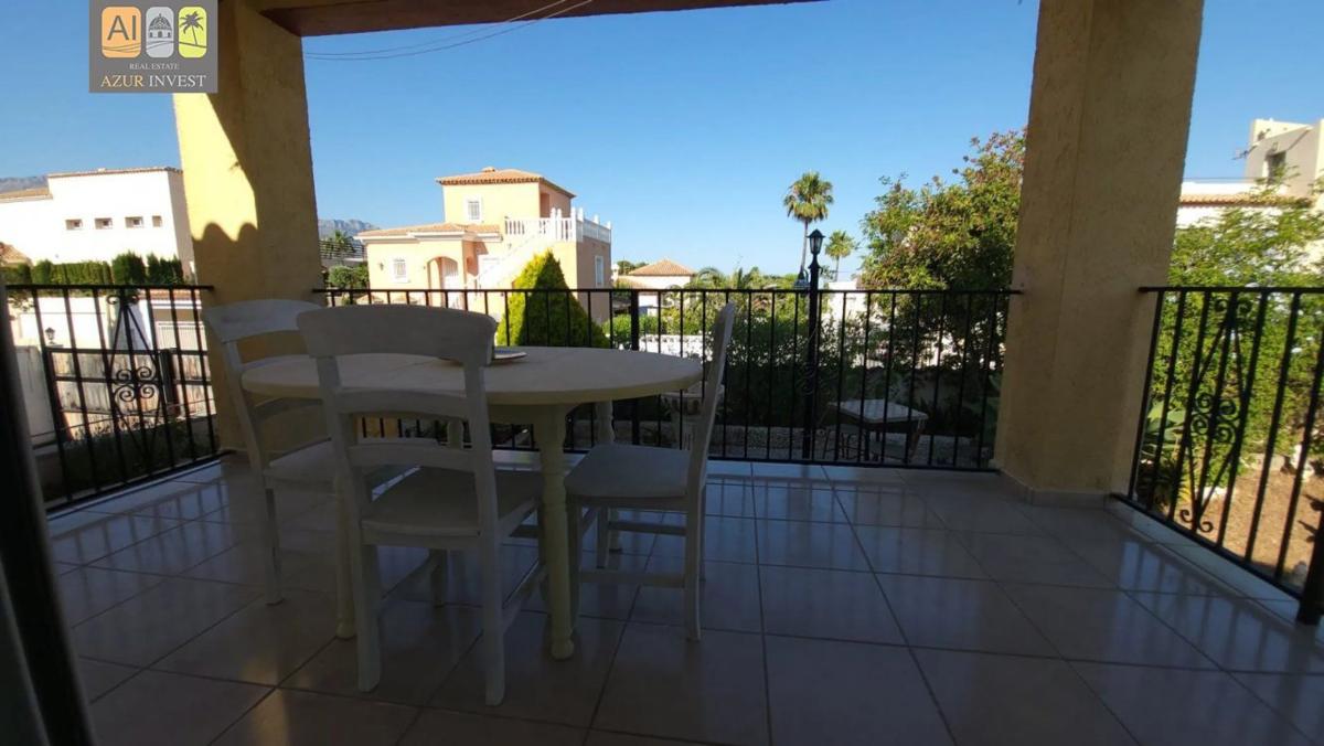 Chalet independiente, en urbanización cercana muy bien ubicada; cerca de Altea, Alfaz, La Nucia, en la urbanización Bello Horizonte. Tiene piscina y pistas de tenis comunitarias. Es una casa con muchas posibilidades. Tiene tres dormitorios, 2 baños, cocina con galería, salón comedor con salida a amplia terraza. Solarium, Varias terrazas. Tiene un pequeña parcela con árboles frutales. Además tiene zona de barbacoa con horno de leña.