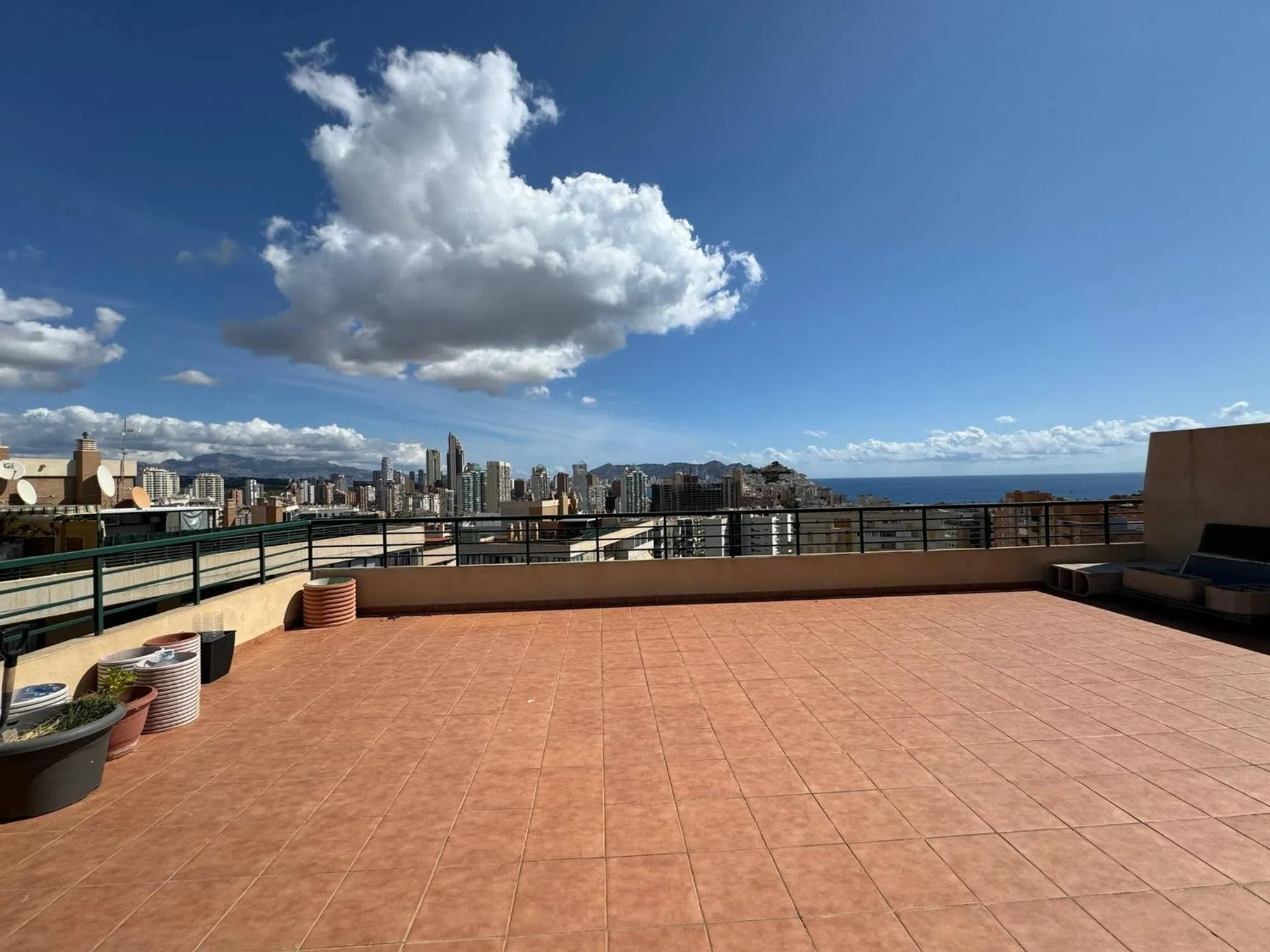 Se vende ático en la planta más alta con vistas panorámicas al mar y a las montañas. Tiene una superficie total de 200 m2 y una superficie habitable de 115 m2. El apartamento dispone de 2 dormitorios y 2 baños. Incluye plaza de aparcamiento para dos coches. Ubicado en Benidorm, zona La Cala, en una urbanización muy verde con piscina comunitaria. En el mismo edificio hay una pequeña cafetería, ideal para tomar un café cerca de casa. A solo 500 metros del mar y a pocos minutos a pie de toda la infraestructura: cafeterías, restaurantes, bares, tiendas, supermercados, mercado central y centro de salud. El apartamento ofrece vistas directas al mar. Es ideal tanto para vivir todo el año como para inversión. Posibilidad de obtener licencia turística y alquilar la vivienda. Una excelente oportunidad en el mercado inmobiliario.