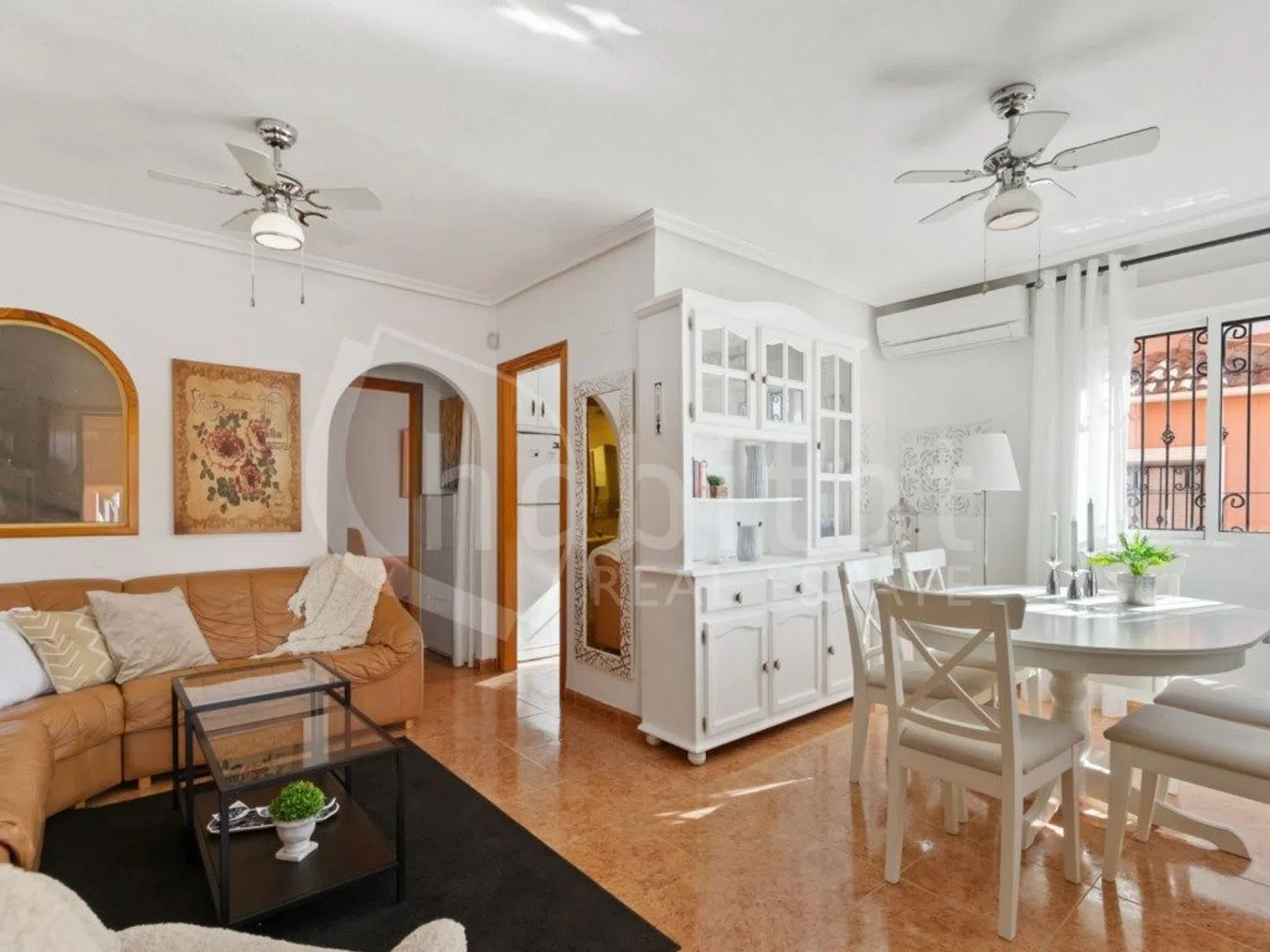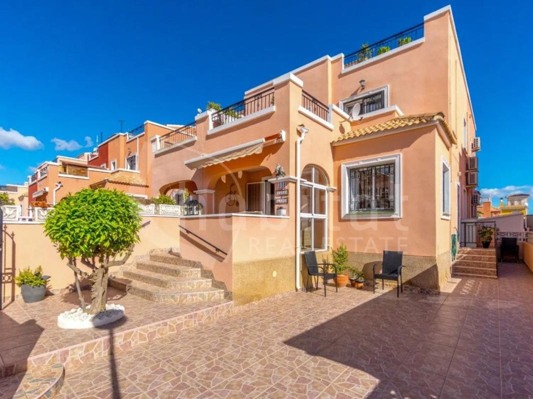Villa adosada tipo quad con jardín, solárium privado y piscina comunitaria a la venta en Urbanización La Herrada (Los Montesinos, Alicante). Esta vivienda consta de 89m2 construidos que se distribuyen en dos plantas: planta baja, con salón-comedor en forma de L, cocina independiente con acceso al patio, dormitorio doble y baño completo; primera planta, con dos dormitorios dobles, terraza y baño completo. En la azotea de la vivienda hay un amplio solárium con vistas al Parque Natural de Las Lagunas de La Mata y Torrevieja. La villa se encuentra en perfecto estado de conservación. Se ha mantenido meticulosamente y se vende completamente amueblada: cocina equipada con todos los electrodomésticos incluidos, armarios empotrados en los dormitorios para un generoso espacio de almacenamiento, baños modernos con suelo radiante, e instalación de aire acondicionado frío/calor en todas las estancias. Esta vivienda está orientada a Sur, por lo que disfruta de sol durante todo el día. El área de jardín está bien cuidada y es perfecta para disfrutar de momentos y encuentros con familiares y amigos al aire libre. La piscina comunitaria está a un paso, y también hay aparcamiento en la parcela y posibilidad de aparcar en la calle. Además, la casa cuenta con un trastero independiente para guardar herramientas de jardinería, tumbonas y demás muebles accesorios. La lavadora está convenientemente ubicada en su propio espacio exterior. Coche incluido en la compra: vehículo con cambio automático incluido con la propiedad (ITV homologada hasta marzo de 2026). Ubicación y área: La Herrada, Los Montesinos, es una zona tranquila y pintoresca con excelente acceso a la naturaleza y oportunidades para pasear y montar en bicicleta. La propiedad se encuentra a sólo 9 km de Torrevieja, y encontrará un gran supermercado y un acogedor bar/restaurante a solo 2-3 minutos a pie. El centro de Los Montesinos, con una variada selección de cafeterías, bares, restaurantes y tiendas, está a un corto paseo. Los aficionados al golf también apreciarán la proximidad de la zona a varios campos de golf populares, que ofrecen desafíos para jugadores de todos los niveles. Distancias: -3 minutos a pie de una tienda de comestibles y una cafetería/bar. -10 minutos en coche de varios campos de golf. -15 minutos en coche de las hermosas playas de arena de Guardamar del Segura. -35 minutos al aeropuerto de Alicante. -14 minutos del Centro Comercial Habaneras. -20 minutos de La Zenia Boulevard, uno de los centros comerciales al aire libre más grandes de Europa. -18 minutos del centro de Torrevieja. ref:QD-172196.