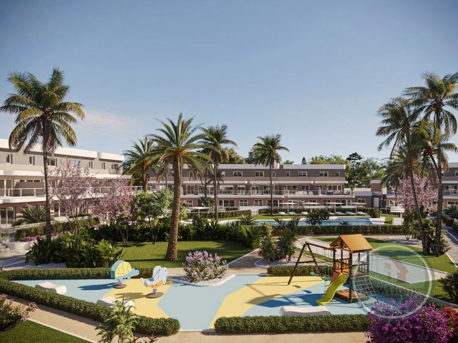 Die Wohnanlage umfasst private Gärten, ein gemeinschaftliches Schwimmbad für Erwachsene und Kinder sowie einen vielseitig nutzbaren Veranstaltungsraum. In der Nähe befindet sich ein Clubhaus mit einem Fitnessstudio, einer Bar und einem Restaurant sowie Padelplätzen. Darüber hinaus gibt es in der Anlage eine bilinguale Schule und einen Supermarkt, was die Serviceangebote dieser Lage erheblich verbessert, ergänzt durch die umfangreiche Infrastruktur der nahegelegenen Stadt, die nur wenige Minuten entfernt ist.