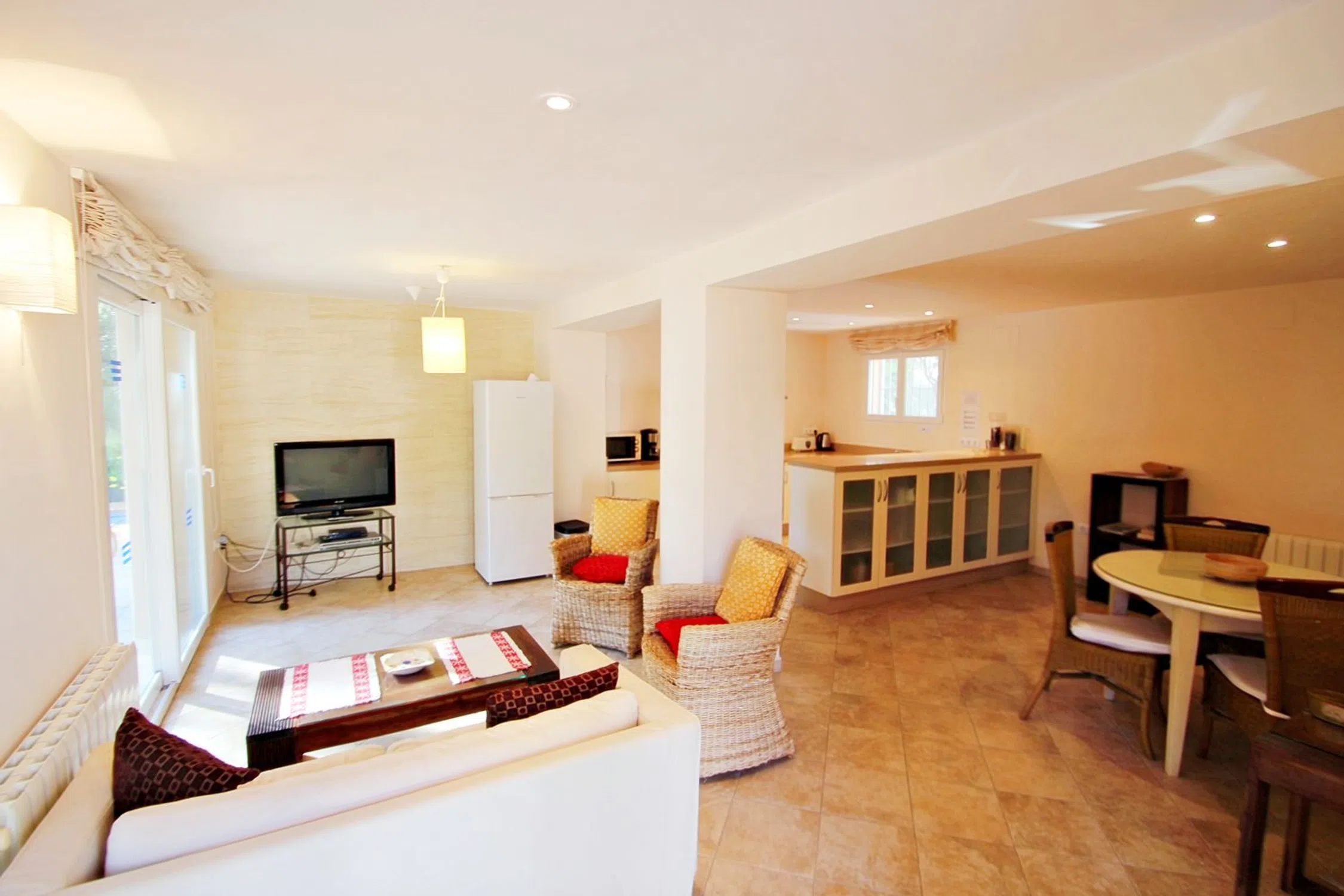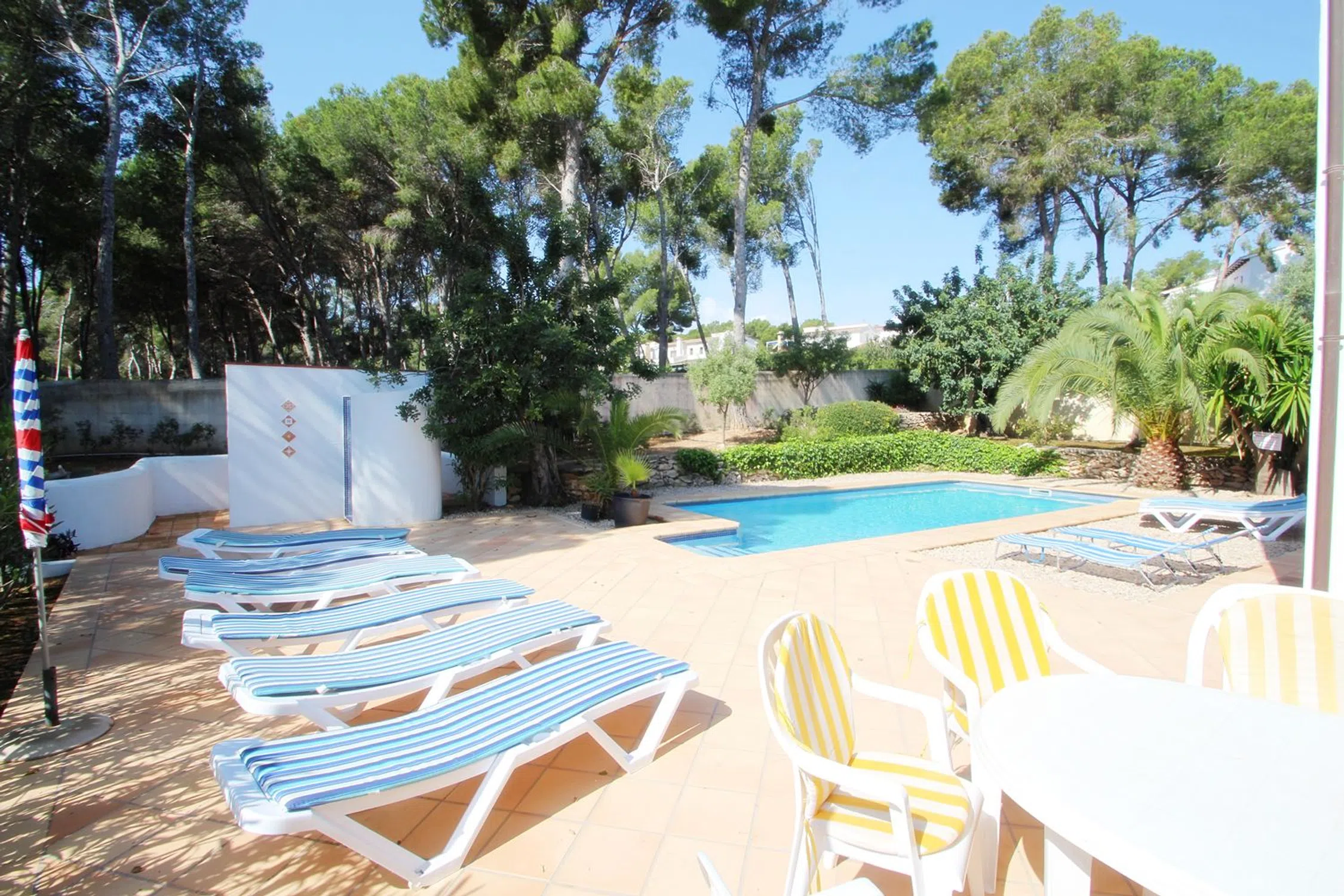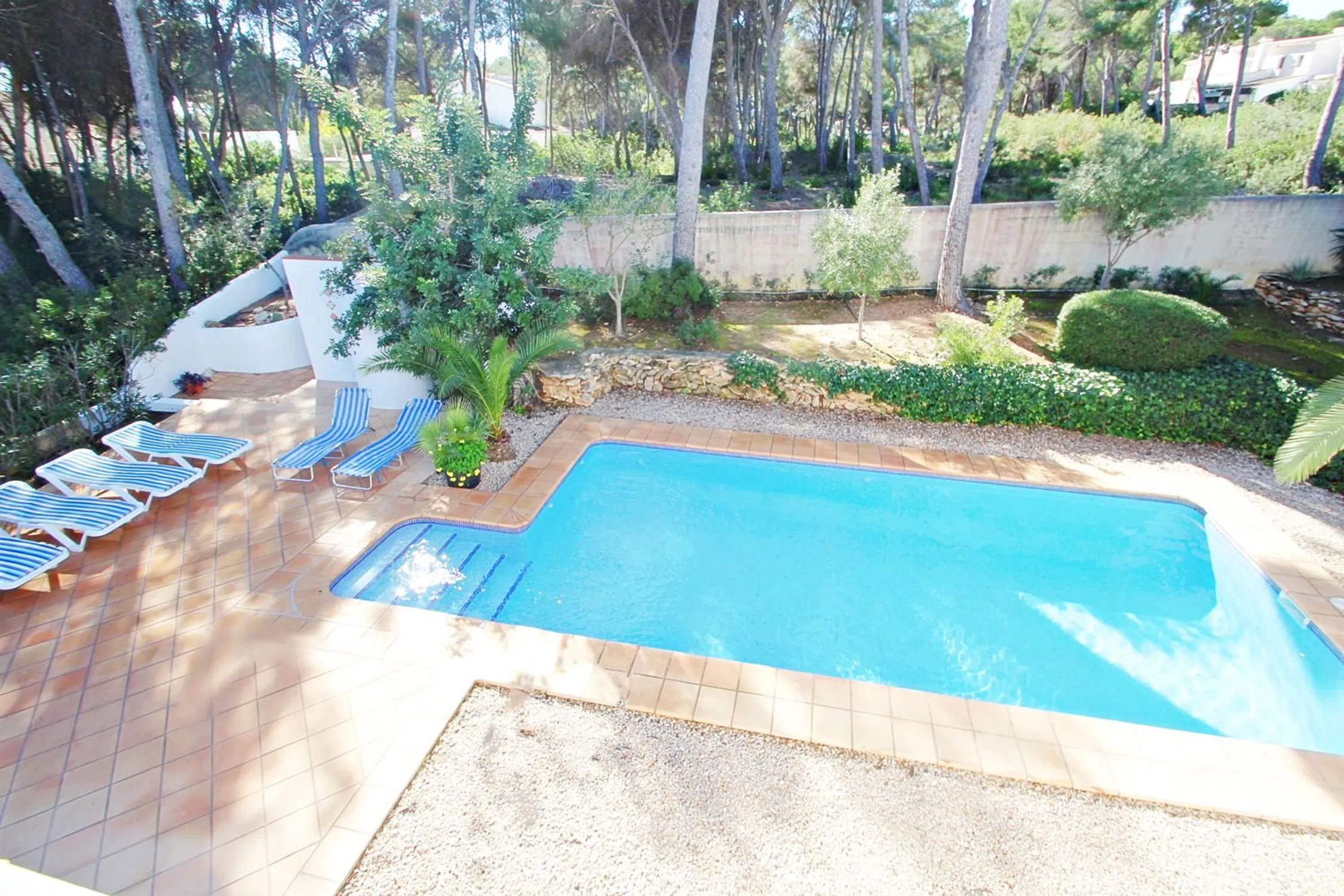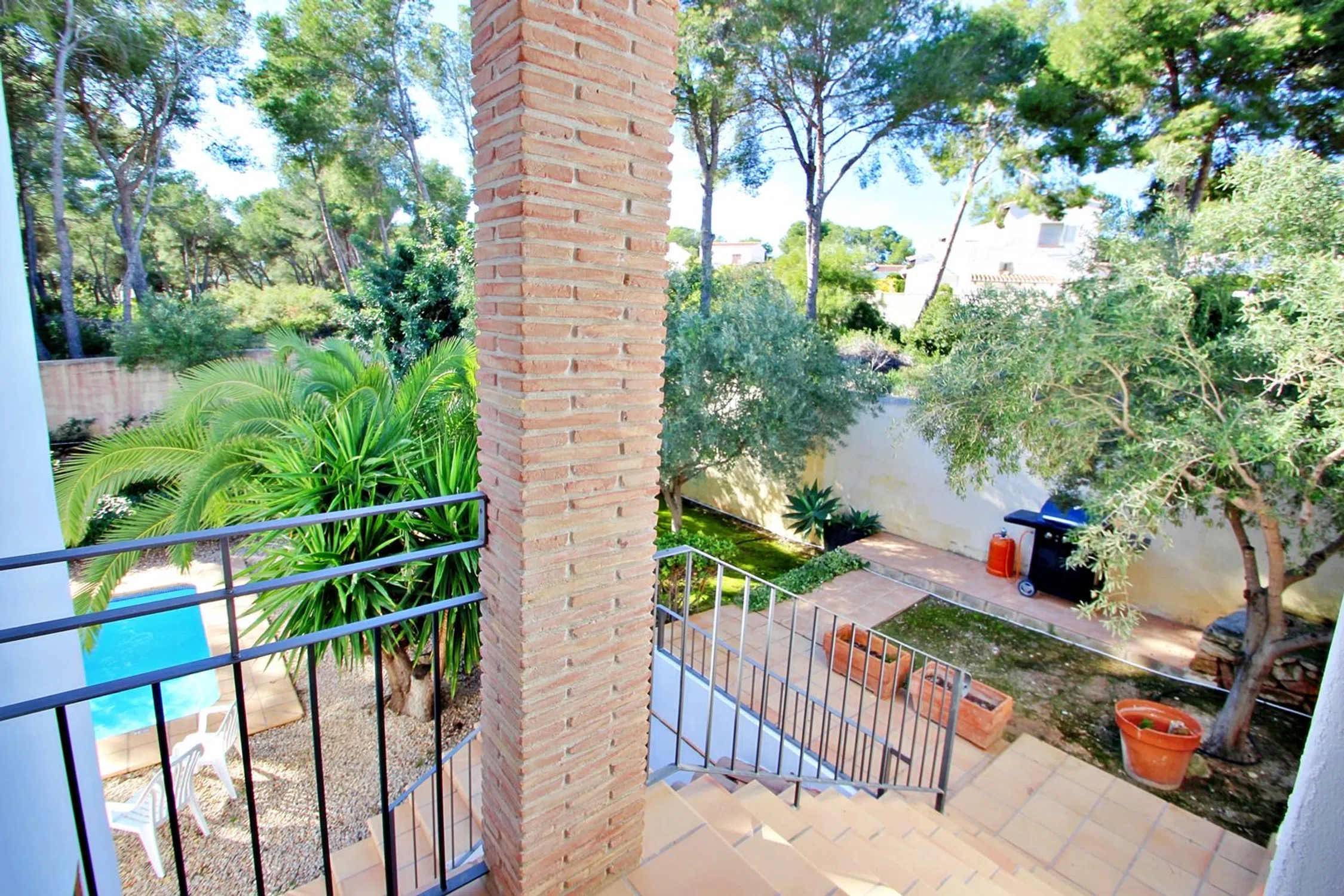 Esta villa se asienta sobre una parcela de 5.000 m² que, según el plan parcial, podrá dividirse en cuatro parcelas adicionales más la villa, sumando un total de cinco. Sin embargo, la propiedad se vende en conjunto, lo que la convierte en una oportunidad única para inversores. La propiedad es moderna e independiente y está ubicada en una calle tranquila de Moraira, a solo unos minutos a pie de supermercados, bares, restaurantes locales y de la playa “Les Platgetes”, con la animada Calpe a 15 minutos en coche. El espacio exterior es un paraíso privado, con patios soleados cerrados que rodean una refrescante piscina, ideal para cenar al aire libre con muebles, tumbonas y barbacoa portátil. La villa, en dos plantas, está diseñada como dos apartamentos independientes. En la planta baja, a nivel de la piscina, hay un salón-comedor acogedor, cocina americana equipada, dos dormitorios dobles con A/C y un baño. En la planta superior, a la que se accede por escaleras exteriores, se encuentra un salón-comedor luminoso con gran balcón y vistas al mar, cocina equipada, dos dormitorios dobles, un dormitorio con dos camas —todos con A/C—, un baño completo y un aseo con ducha. La calefacción central asegura confort en invierno.