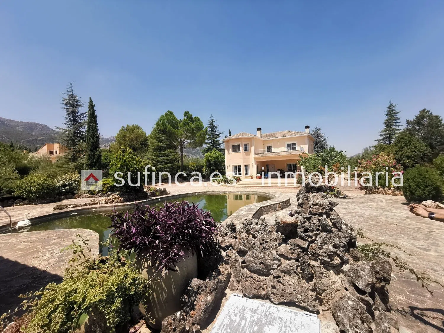 Die zweite Etage umfasst drei Schlafzimmer, ein Badezimmer und eine Terrasse mit herrlichem Blick. Der Außenbereich ist ideal für die Freizeitgestaltung und bietet einen Poolbereich mit Dusche und Umkleide, einen Springbrunnen, einen Teich, einen Garten mit verschiedenen Obstbäumen sowie einen kleinen Tierstall für Hühner und Gänse. Eine Grillstelle rundet das Angebot ab.