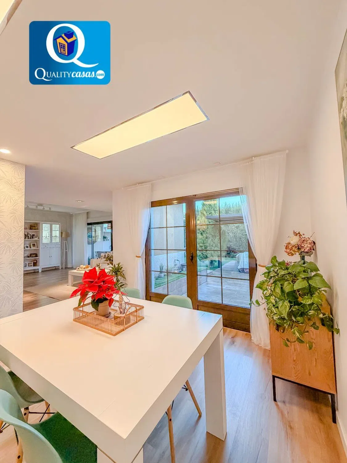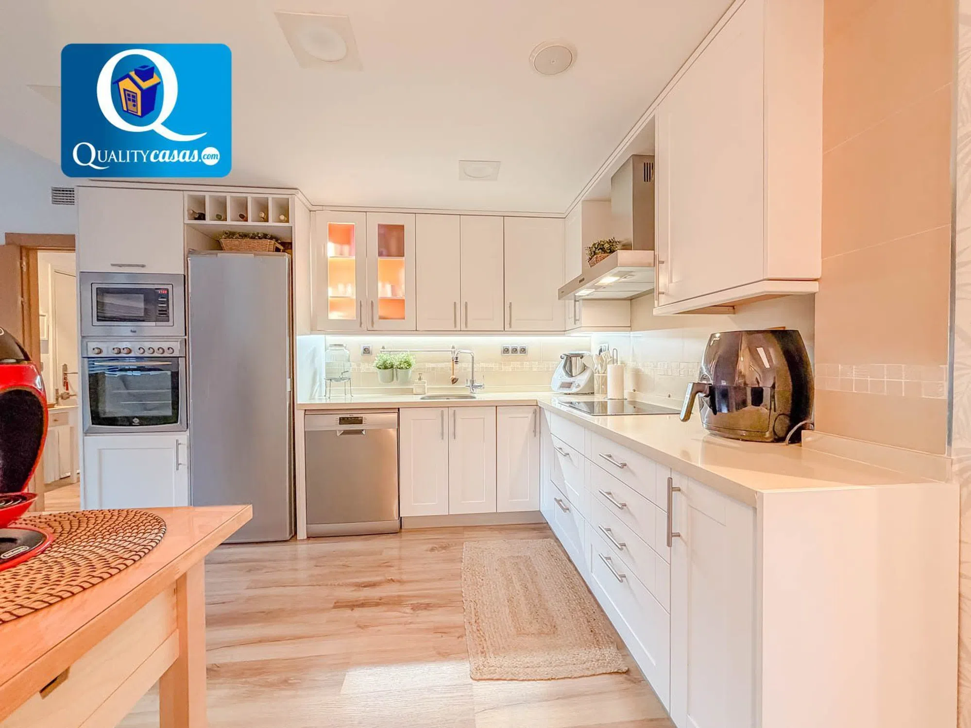 Referencia EK3276 No deje de ver esta magnífica vivienda en La Almajada Este excelente bungalow se encuentra en la mejor zona residencial de Mutxamel (La Almajada), muy bien localizado y con vistas a zonas ajardinadas. Dispone de completa urbanización privada con jardines comunitarios, piscinas para adultos y niños, zona infantil y zona deportiva. Se trata de una propiedad totalmente exterior, muy amplia y luminosa, con excelente distribución en sus tres plantas y amplias zonas de terraza en la entrada de la vivienda y en su parte posterior, que suponen más de 300 m2 de parcela ajardinada, perfectamente perimetrada y con total privacidad. Con una construcción sólida y de alta calidad, la vivienda se ofrece semiamueblada, se encuentra en inmejorable y dispone de primeras calidades, contando con AA.CC centralizado con bomba de calor, instalación de placas solares, domótica, preinstalación para gas natural, persianas motorizadas, mosquiteras, rejas, puerta blindada, toldos, suelos de tarima flotante, techos en cámara de pladur con iluminación integrada, carpintería de pino macizo y ventanas aluminio climalit, entre otras mejoras. El porche terraza de entrada a la vivienda da paso al amplio y luminoso salón, con dos orientaciones y tres ambientes (uno de los cuales puede habilitarse como cuarta habitación), con vistas al jardín de la vivienda. La moderna cocina office, completamente equipada y con electrodomésticos de alta gama, se integra en el salón, compartiendo su luminosidad. La vivienda cuenta con 3 habitaciones con armarios empotrados (6 en toda la propiedad), 2 baños completos y 1 aseo de cortesía en planta baja. El dormitorio principal dispone de terraza exterior y baño en suite. La exclusiva propiedad cuenta además con planta sótano acondicionada, garaje privado y trastero. El bungalow está rodeado de un entorno privilegiado y muy tranquilo. Hay que recordar su total privacidad y, al mismo tiempo, su proximidad a todos los servicios, su cercanía a tres núcleos urbanos y a varias zonas residenciales, así como sus excelentes comunicaciones. Una magnífica vivienda en la mejor zona residencial de Mutxamel, para quien sabe apreciar su exclusividad y todas las posibilidades que ofrece. Concierte ahora una visita y compruebe personalmente la oportunidad que supone la adquisición de esta propiedad. La presente publicación tiene carácter meramente informativo, orientativo y no vinculante, por lo que no supone información contractual alguna, siendo su uso estrictamente comercial. Este anuncio puede contener errores, se muestra a título informativo de la información recibida, sin ser responsable la inmobiliaria de dichos errores.