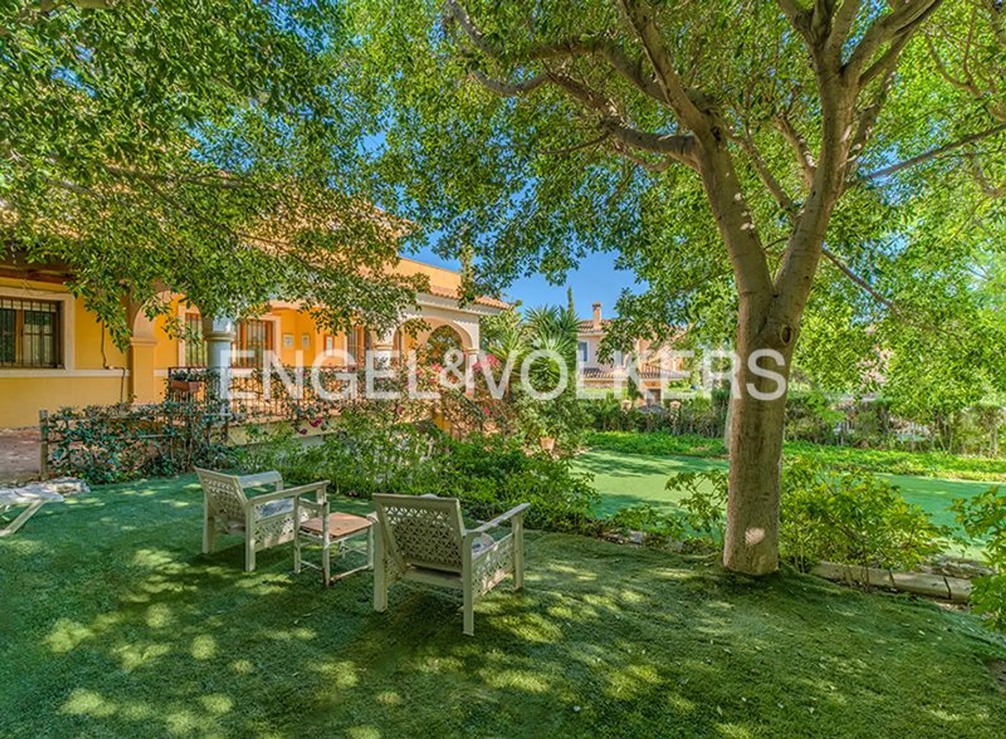 Exclusiva Villa en Campo de Golf – Elegancia y Confort en un Entorno Privilegiado Ubicada en una prestigiosa urbanización privada dentro de un campo de golf, esta elegante villa representa la esencia del estilo de vida mediterráneo más distinguido. Con un diseño contemporáneo y espacios amplios bañados por la luz natural, ofrece el equilibrio perfecto entre confort, privacidad y exclusividad. La propiedad cuenta con seis dormitorios y tres baños, uno de ellos en suite, distribuidos de forma funcional para garantizar la máxima comodidad a toda la familia. En la planta principal, un luminoso salón-comedor con acceso directo al jardín crea un ambiente acogedor y fluido, ideal para disfrutar de reuniones familiares o veladas con amigos. El sótano ofrece un espacio adicional versátil que puede destinarse a gimnasio, sala de juegos o zona de invitados. El exterior invita al descanso y al disfrute: un amplio jardín privado, perfecto para aprovechar el clima templado de la Costa Blanca durante todo el año. Además, la urbanización cuenta con piscina comunitaria y pista de tenis, ofreciendo un entorno seguro, tranquilo y lleno de opciones de ocio. Rodeada de naturaleza y del ambiente relajado del golf, esta villa combina el encanto del paisaje verde con la proximidad a las playas, servicios y centros urbanos de Alicante. Vivir aquí significa disfrutar de una residencia de alto nivel en uno de los enclaves más cotizados de la provincia. Le invitamos a descubrir esta propiedad única en el campo de golf, donde el lujo, la calidad y la serenidad se transforman en un auténtico estilo de vida. En caso de necesitar financiación, nuestro departamento Engel & Völkers Finance le acompañará para obtener la mejor solución para su proyecto inmobiliario.