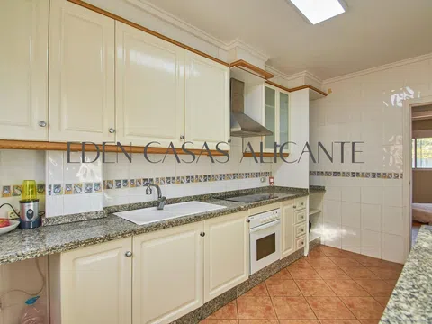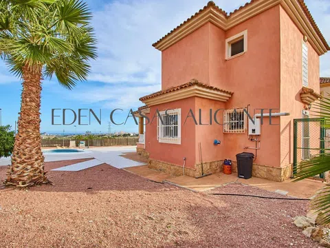 Eden Casas, le trae esta preciosa casa de esquina independiente en dos niveles, en el Club de Campo Dorado de Cotoveta Muxtamel. Situado en la parte delantera de la urbanización con vistas despejadas al mar y las montañas está en la ubicación perfecta, a sólo 5 minutos en coche de las playas de arena, Bonalba Golf Club, el tranvía, bares y restaurantes. Esta preciosa casa está construida en la parcela más grande de la urbanización con 898m2. Hay un camino de entrada que conduce a la entrada principal de la casa. En la planta baja tiene un habitación doble, cuarto de baño, cocina con encimera de piedra, sala de estar y acceso a la terraza. Arriba hay otros dos dormitorios y un baño, también hay acceso a una gran terraza con impresionantes vistas al mar. El gran jardín tiene un cobertizo de madera para el almacenamiento, muchos árboles frutales y limoneros maduros y una hermosa piscina grande. Póngase en contacto con nosotros hoy para organizar su visita para ver esta hermosa casa.